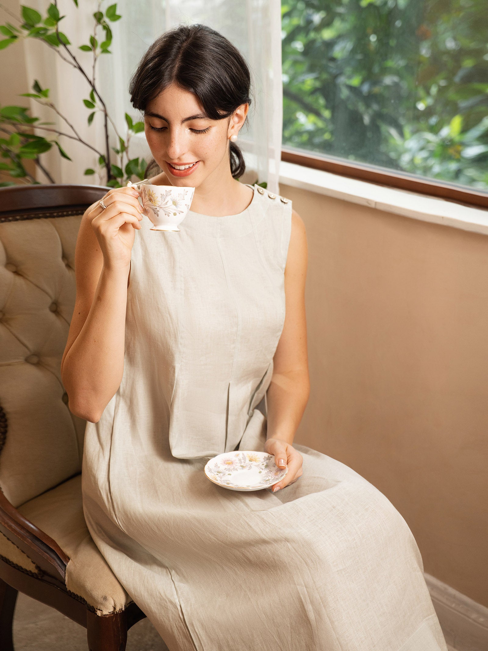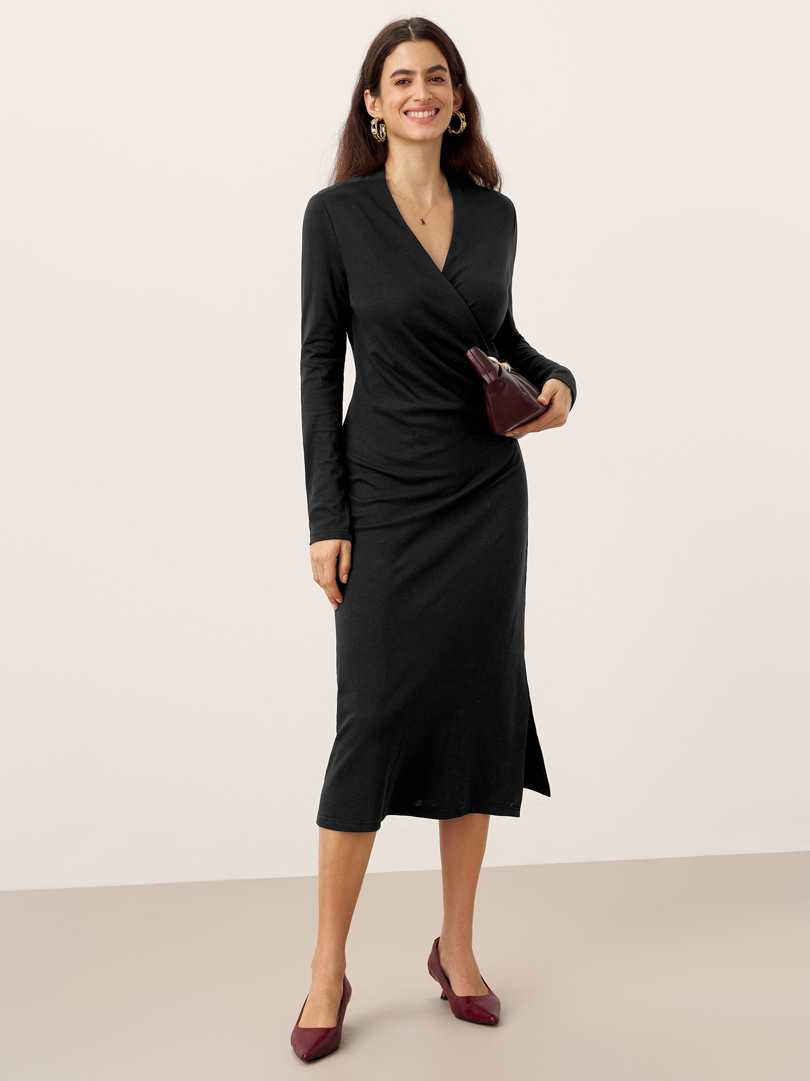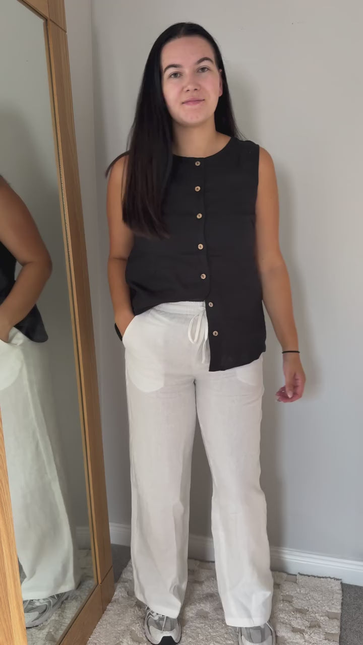 Le haut Briony asymétrique froncé sur le côté est tellement flatteur !Le tissu stretch et les fronces créent un joli effet taille marquée qui met vraiment la silhouette en valeur.Je porte une taille M et la coupe est parfaite.