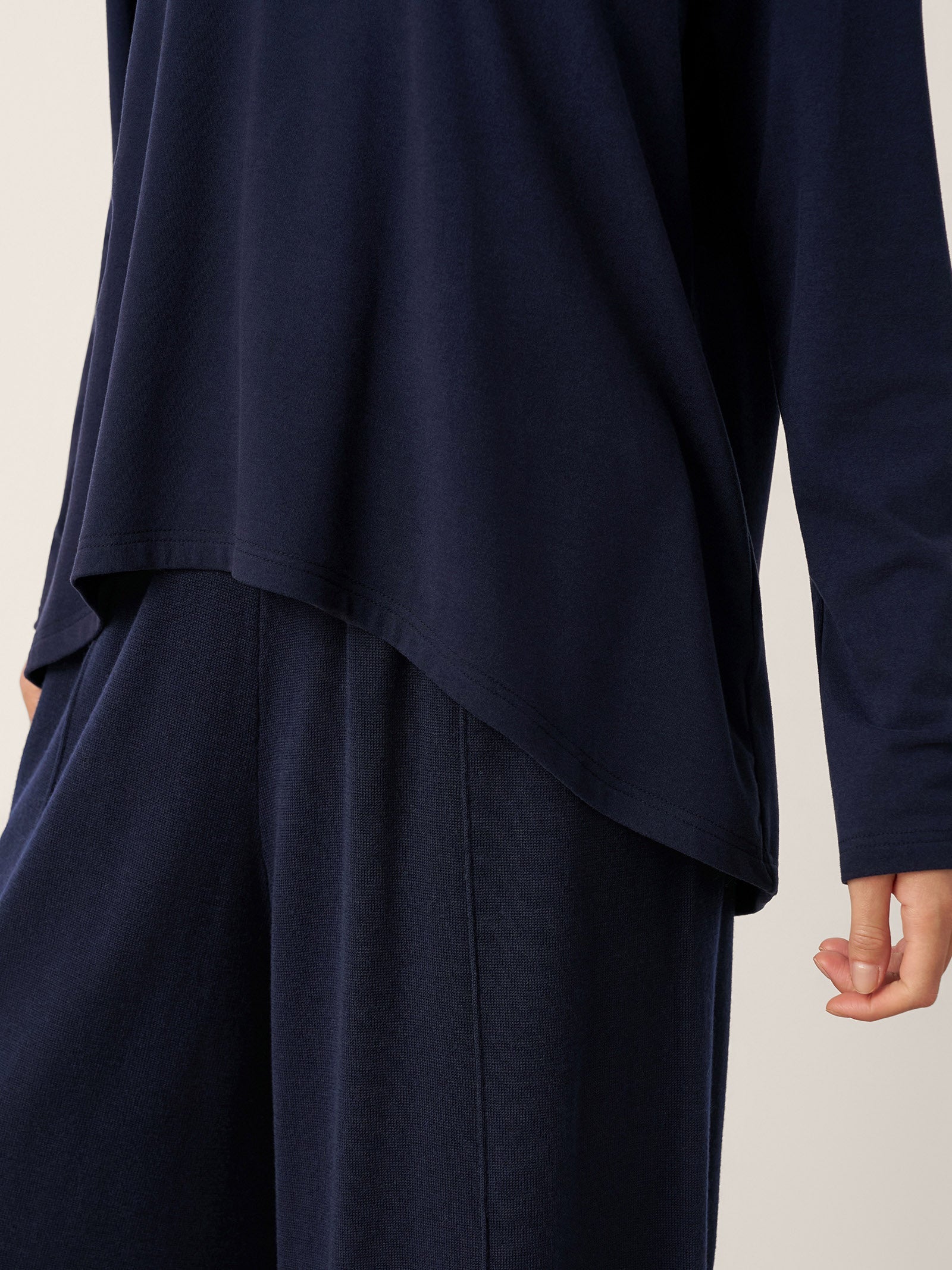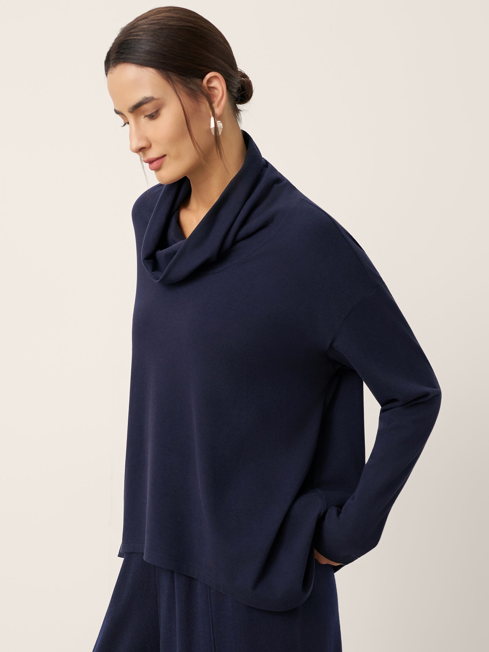 Haut à manches longues, coupe trapèze, col drapé en coton KAY