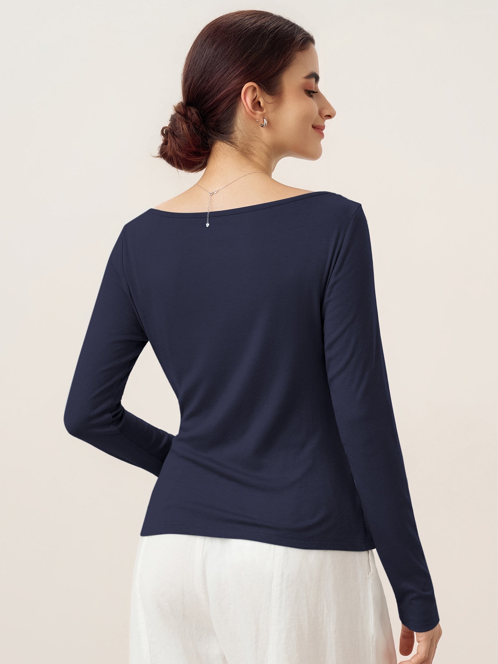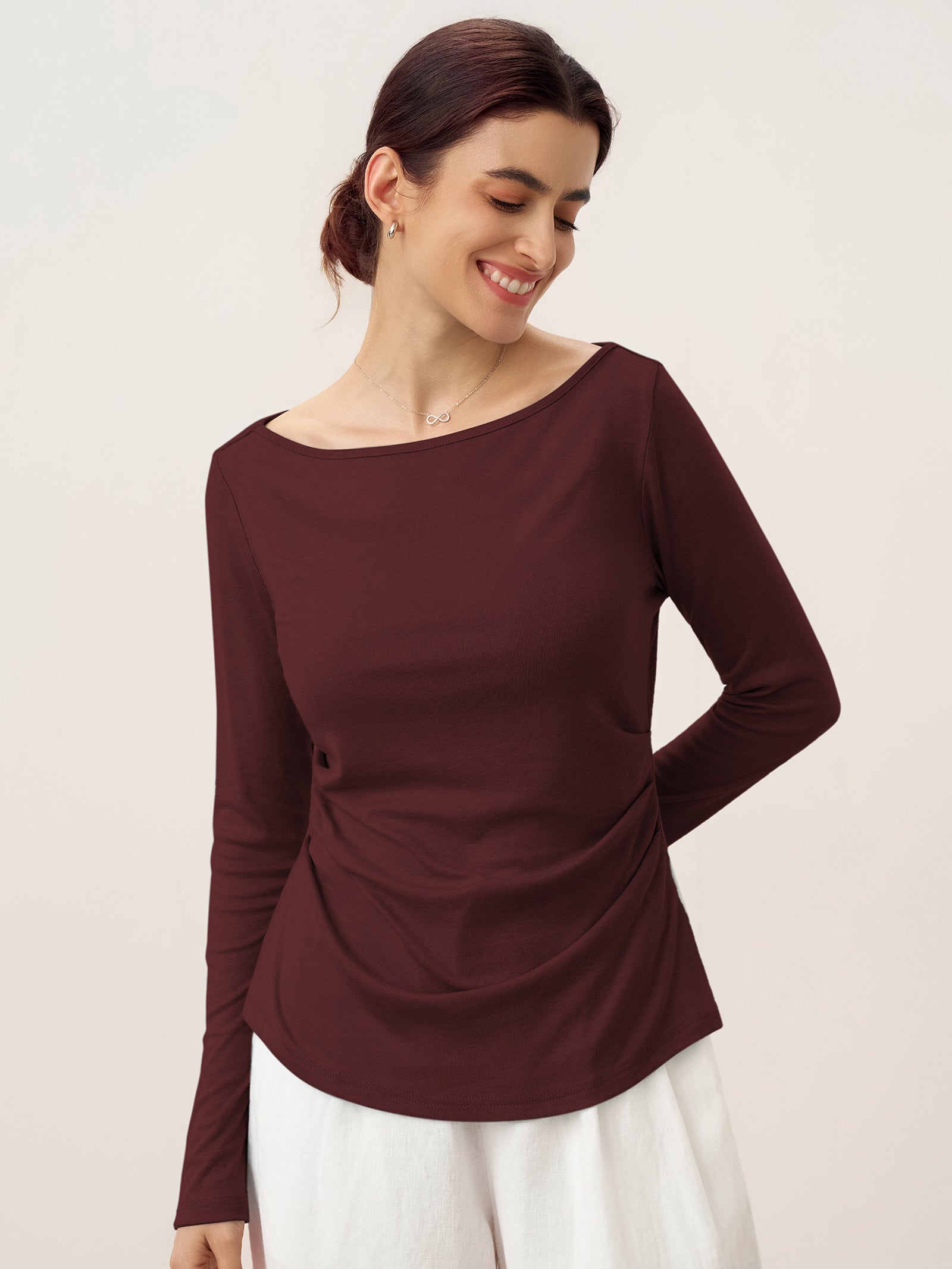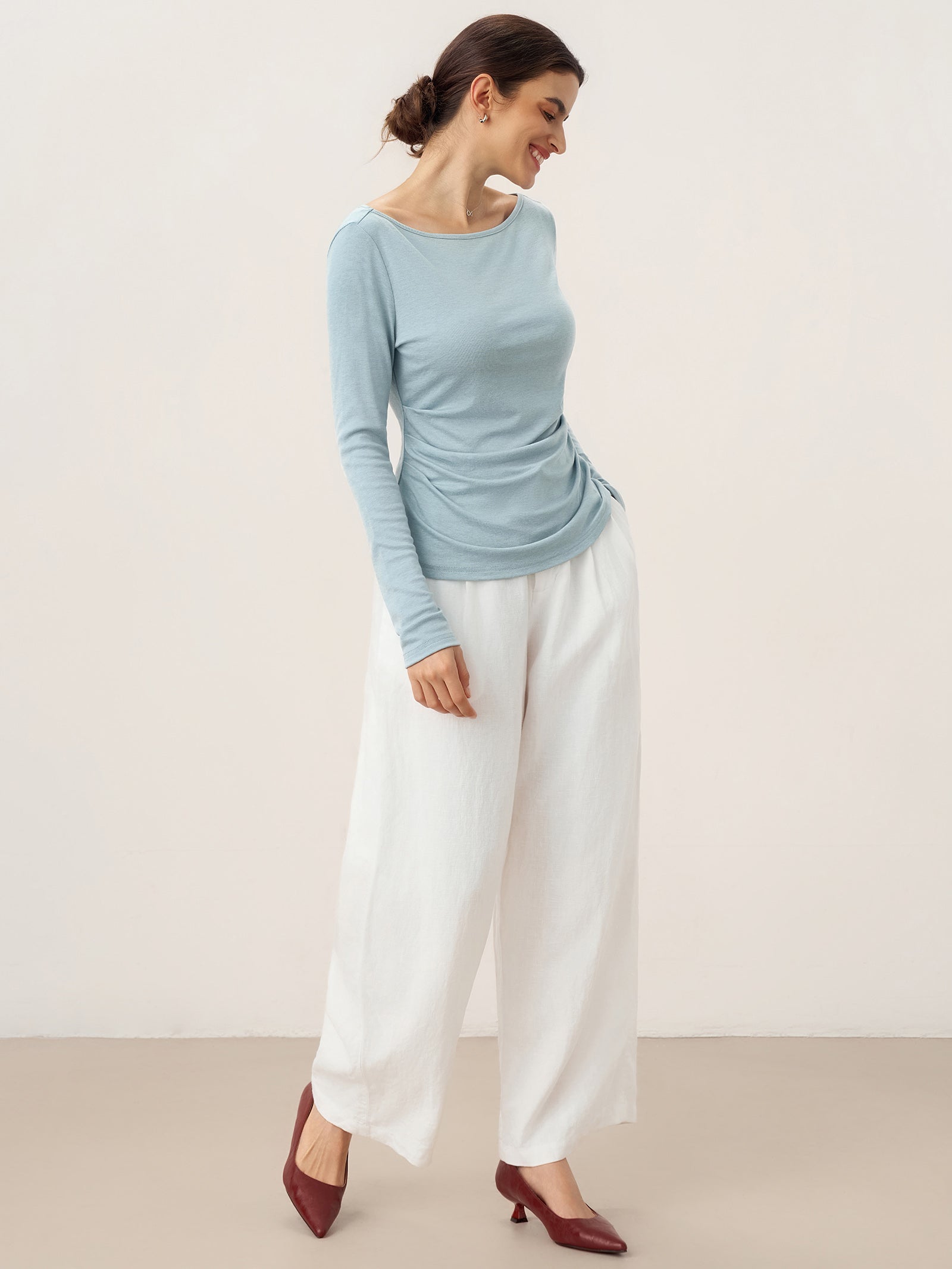 Haut extensible à encolure bateau et fronces latérales en laine VIVIEN