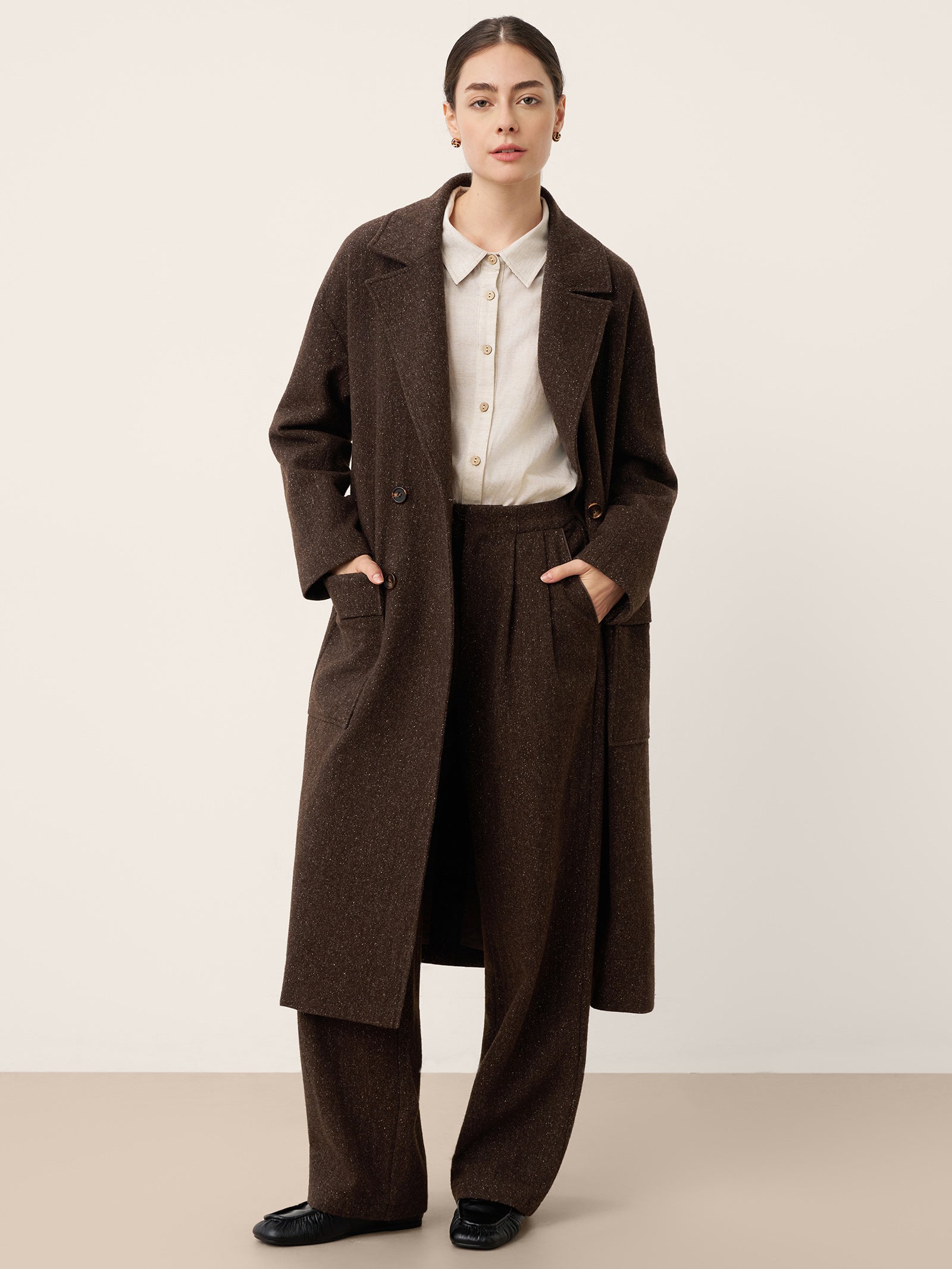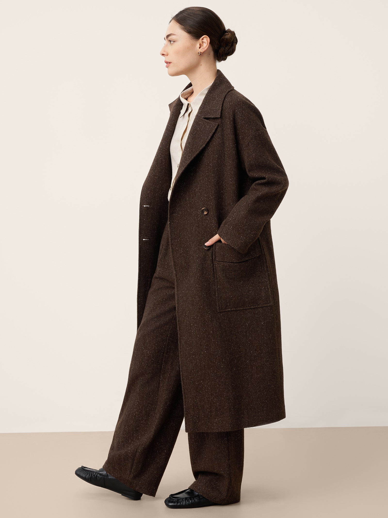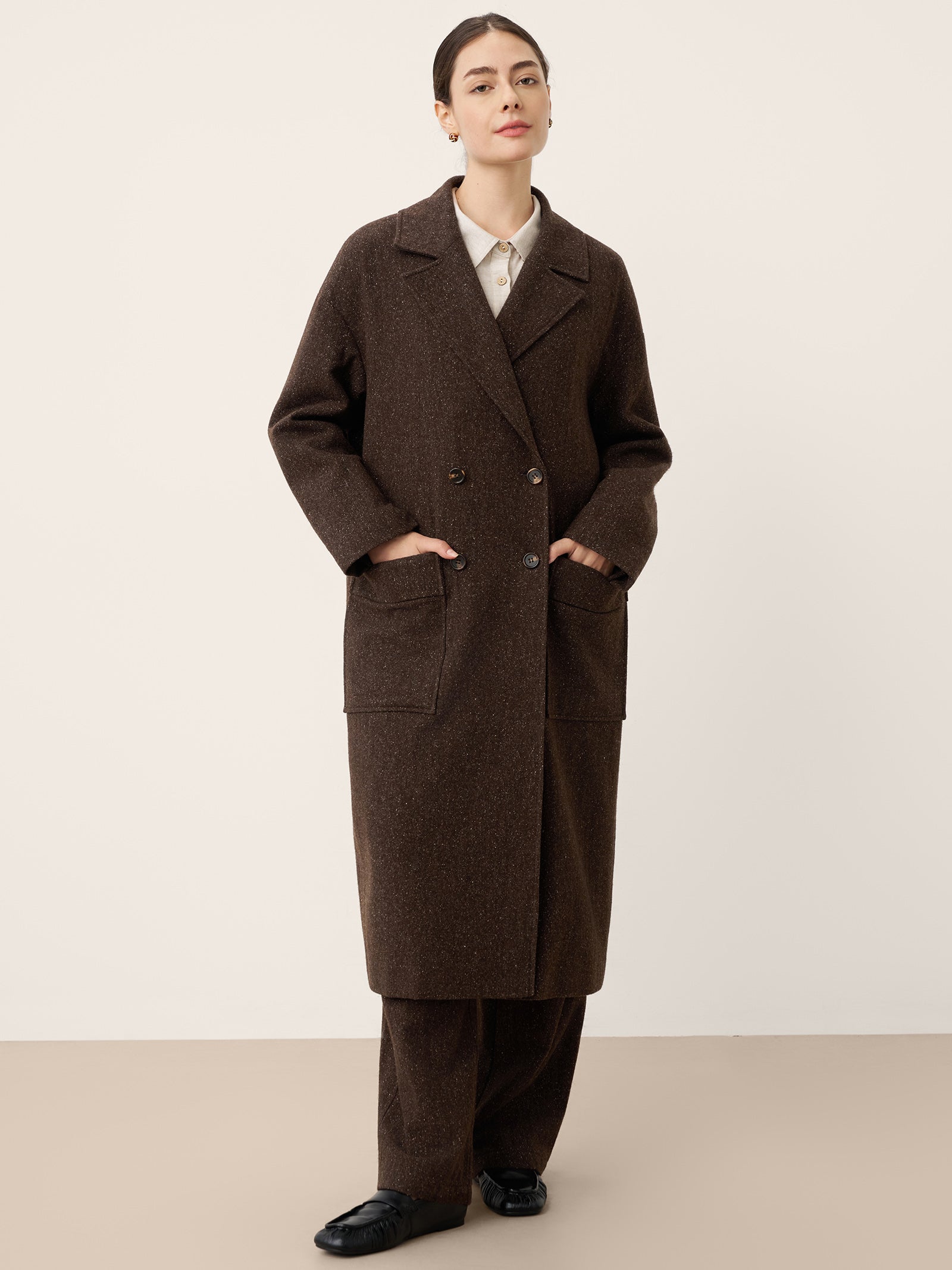 - Chaleur Moelleuse du Bouclé: Le mélange de laine et de soie densément tissé offre une isolation légère comme une plume, une durabilité toute saison et une douceur nuageuse.
