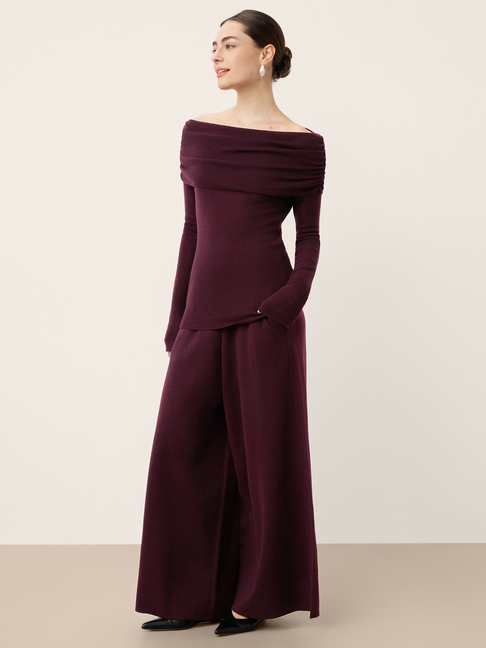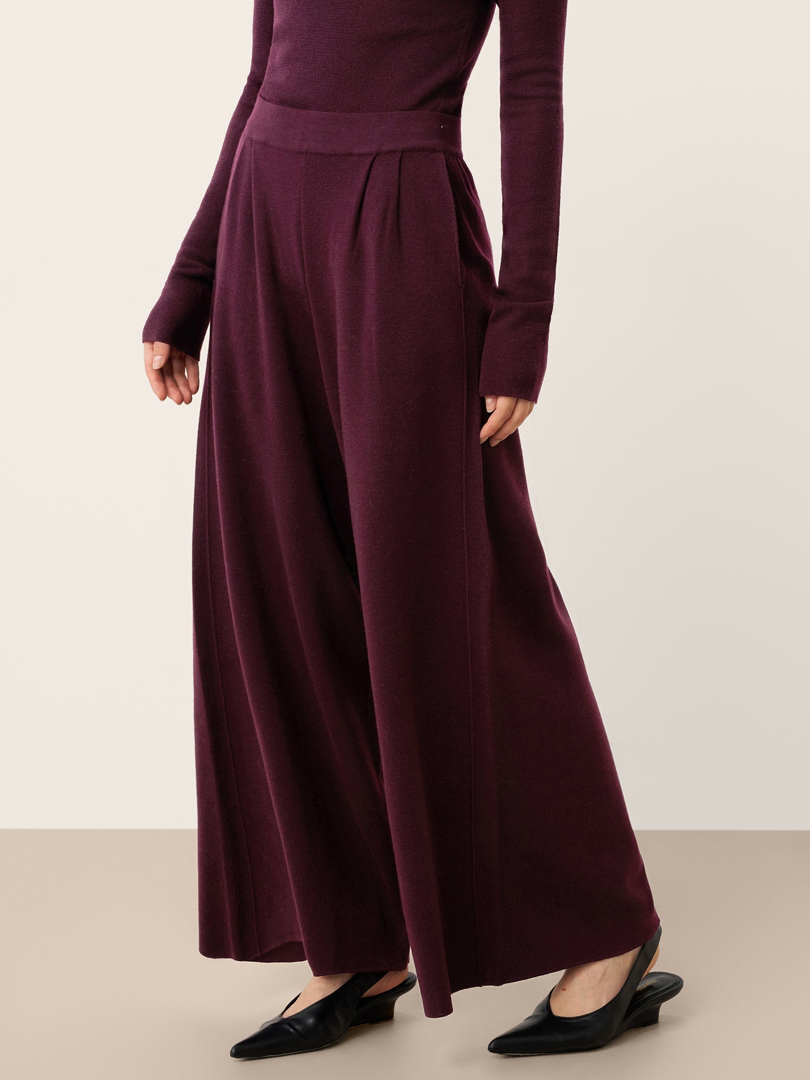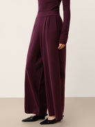 Pantalon YVETTE à jambe droite décontractée et taille élastique en laine mérinos