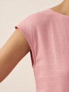 - Coupe décontractée ; les manches courtes mettent en valeur la ligne des bras.