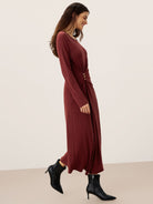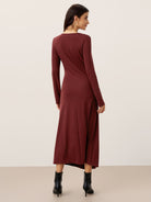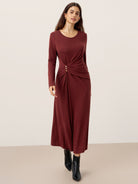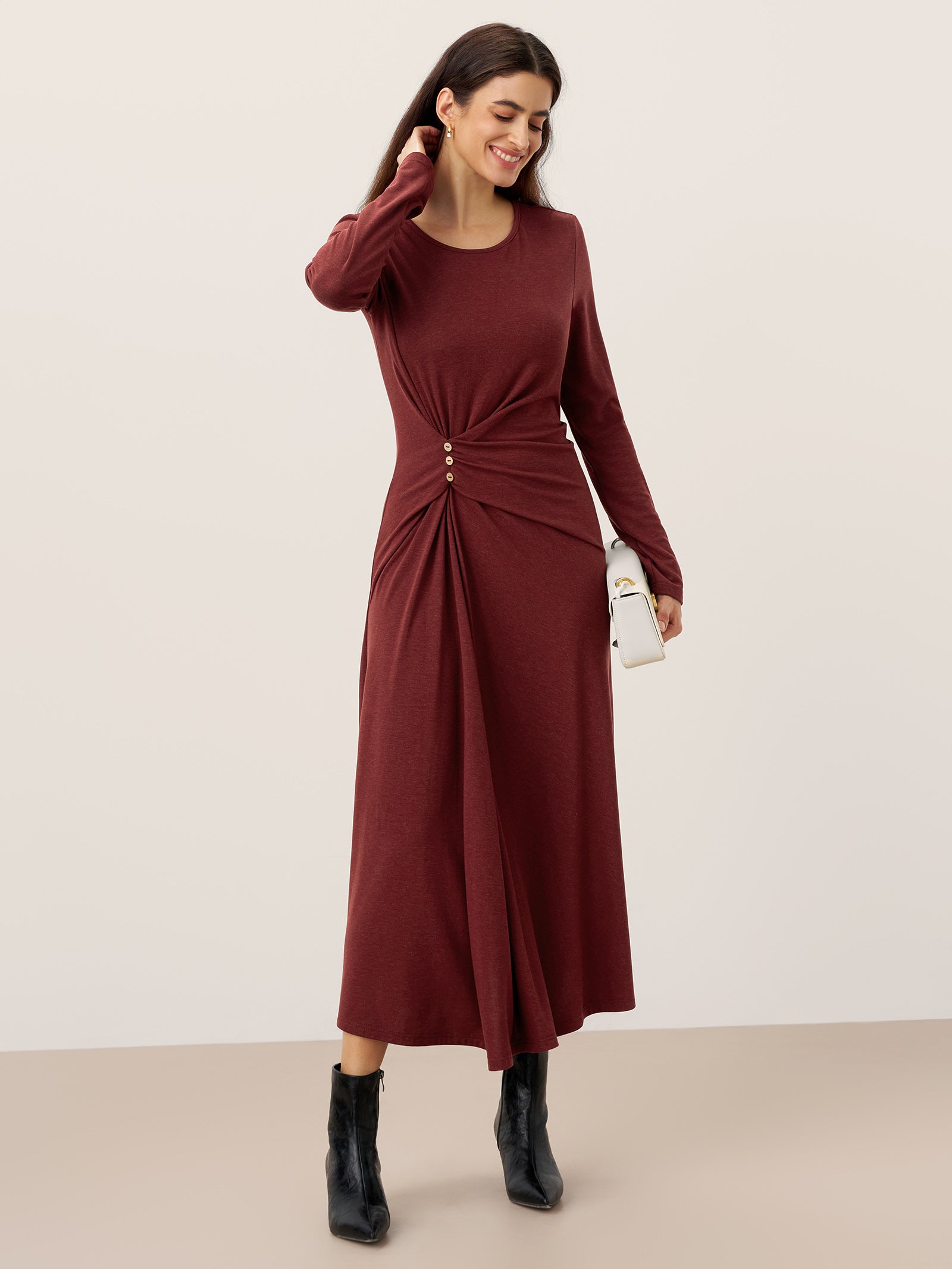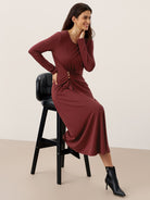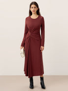 Robe longue froncée à la taille latérale en laine et lyocell ELSINORE