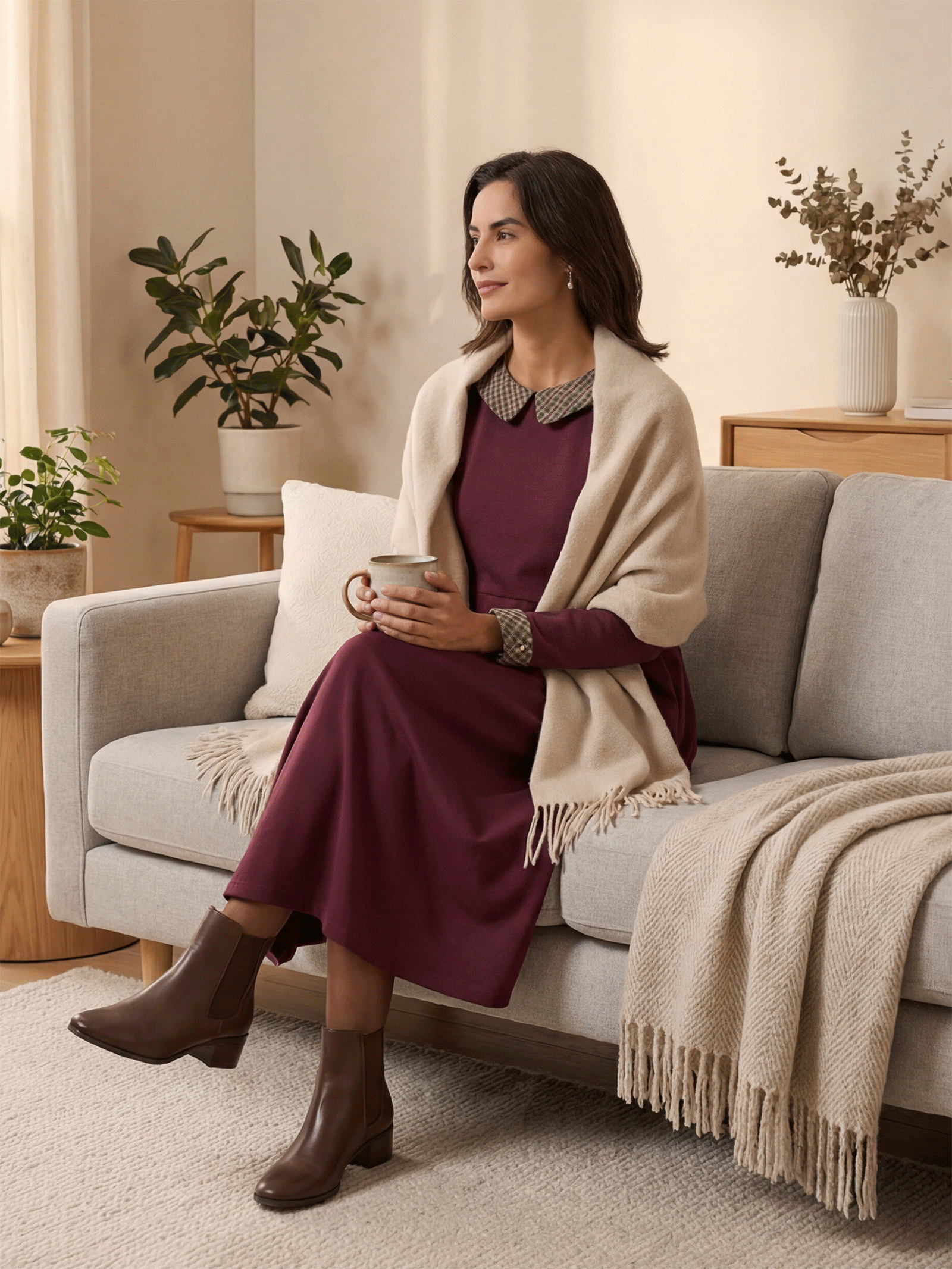 - Transition Saisonnière: Bottes montantes + chapeau en feutre + veste en peau lainée