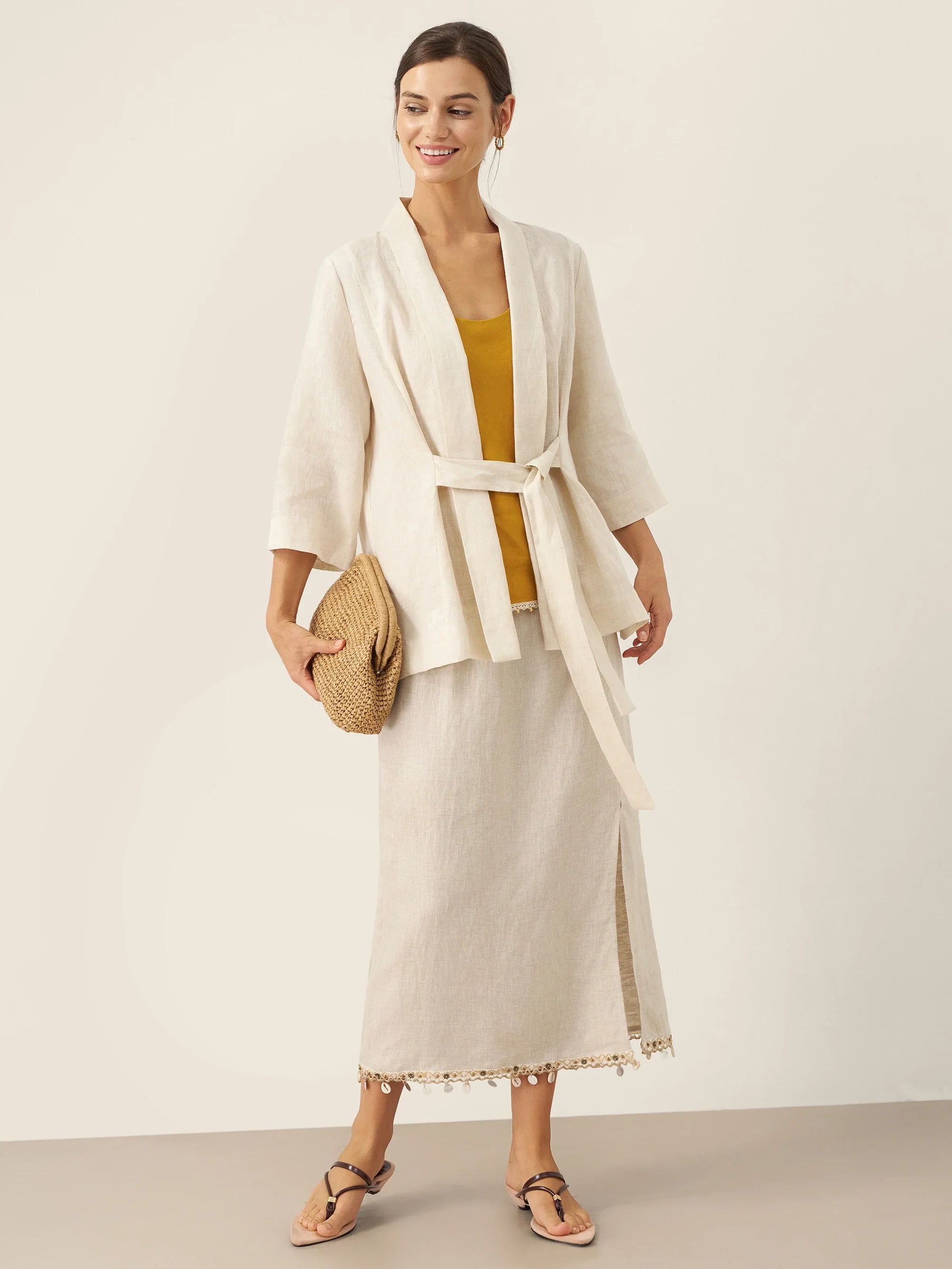 Blazer Ceinturé Style Kimono 100% Lin BRIA