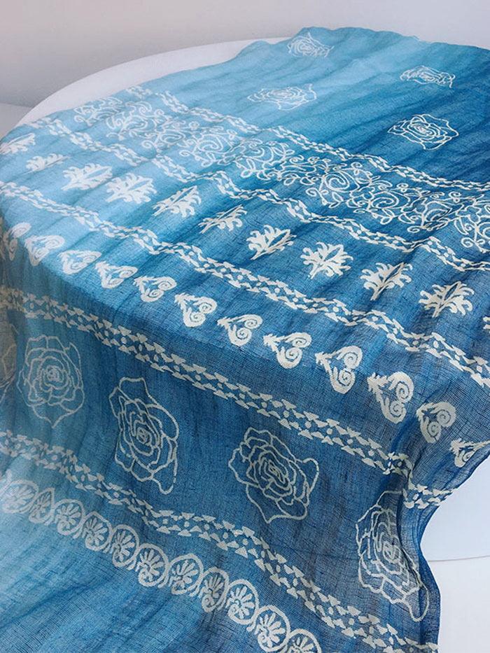 Adoptez la sérénité de la nature avec notre foulard en lin indigo fait main, une danse délicate d'élégance et de tranquillité.
