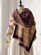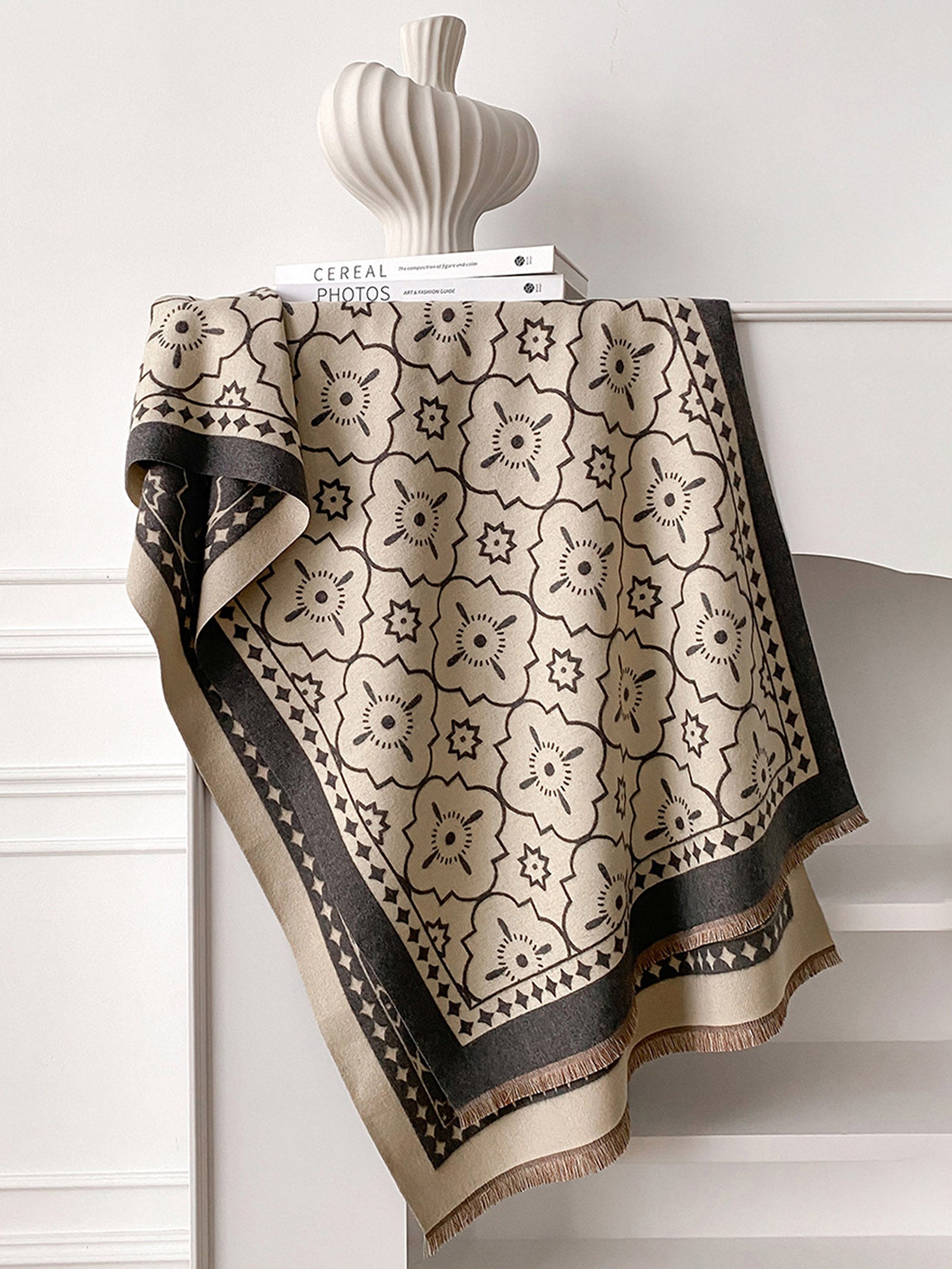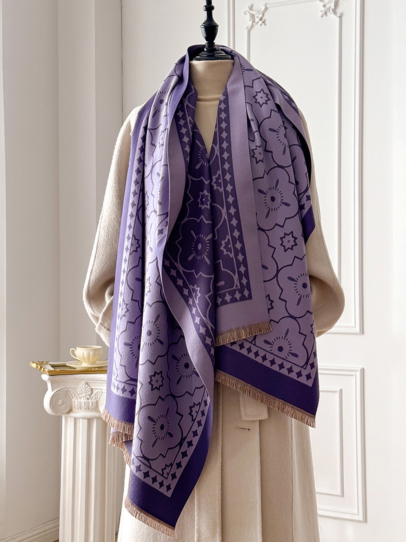 Conçu avec un jacquard à motif floral double face, ce foulard offre une texture élégante sous tous les angles. Il procure une sensation moelleuse et douillette ainsi qu'une chaleur efficace, le tout rehaussé de bords à franges pour un aspect doux et fluide. Mesurant 185x65cm, il allie style et praticité pour les saisons fraîches.