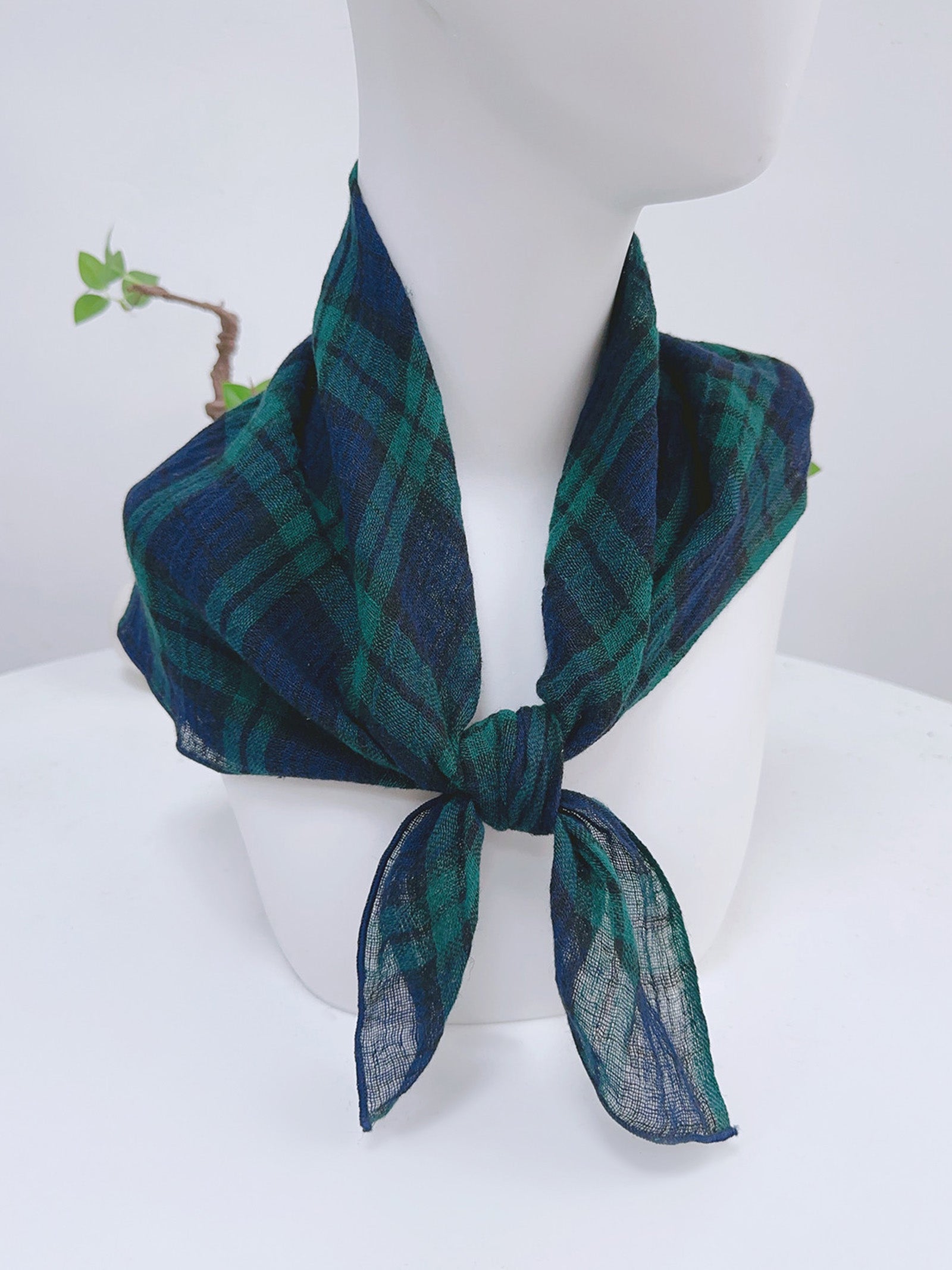 Mélangé avec du coton et du lin, ce foulard carré présente un motif patchwork à carreaux rétro qui respire la mode littéraire. Il s'assortit facilement à divers looks, et sa taille de 65×67cm assure un tombé juste pour une élégance décontractée.
