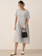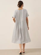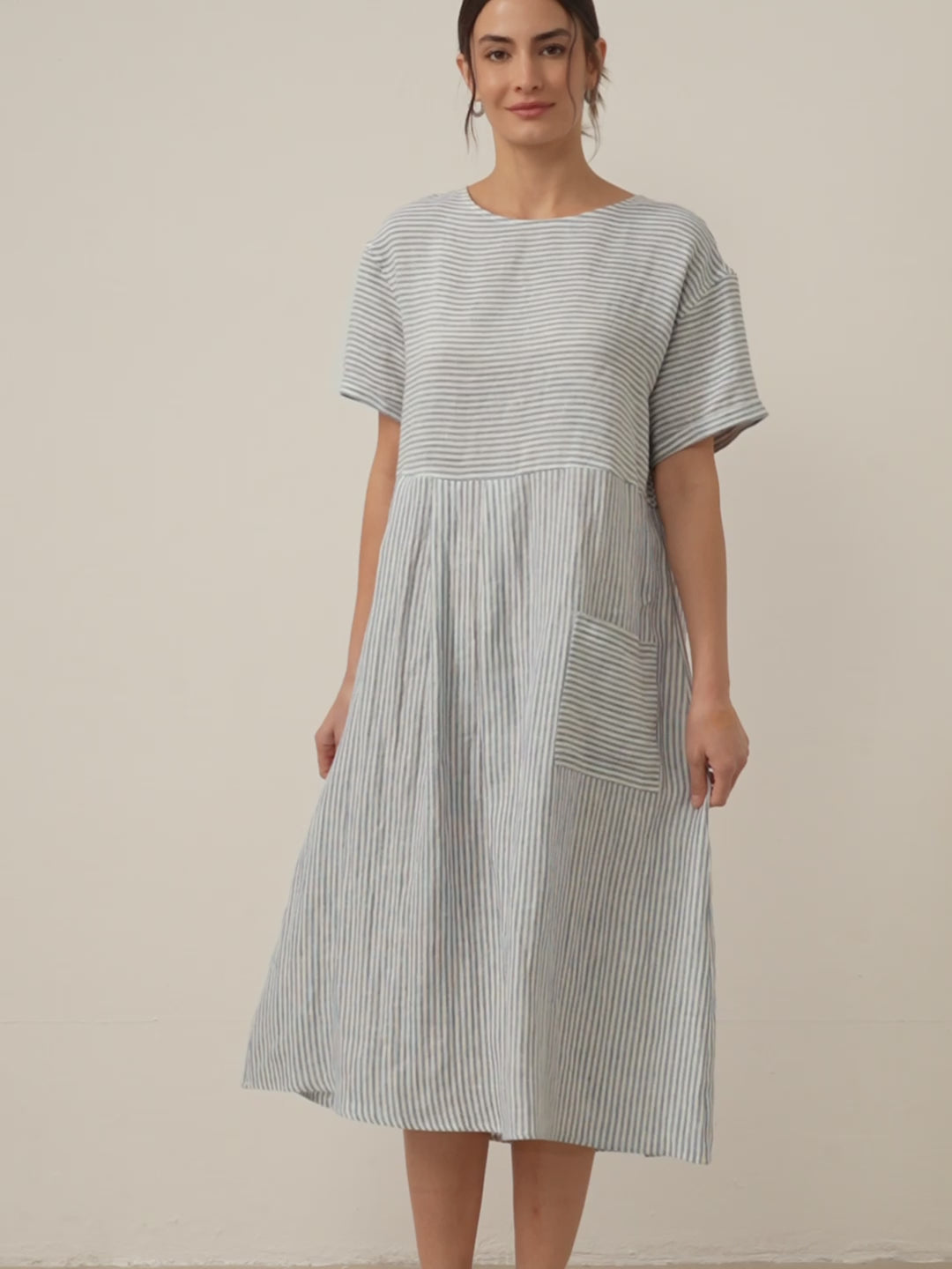 Robe à manches courtes en 100 % lin à panneaux et fines rayures MORGAN