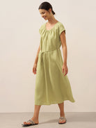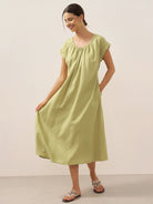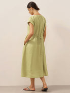 Une polyvalence sans effort rencontre des détails artisanaux dans cette robe en lin magnifiquement confectionnée.