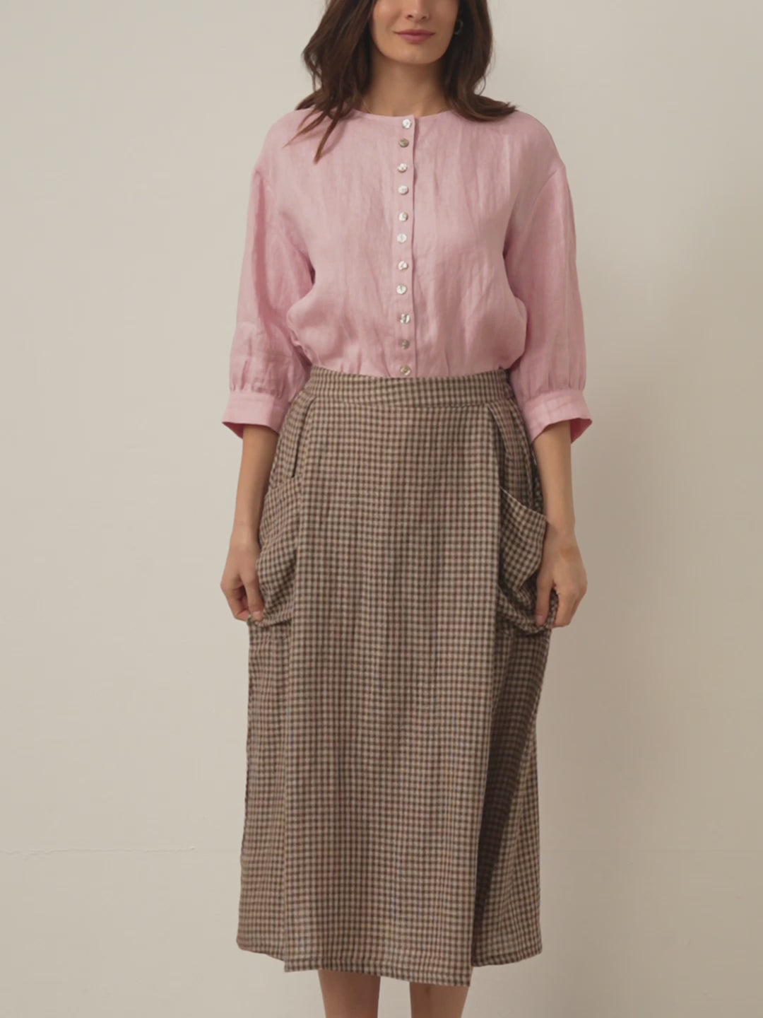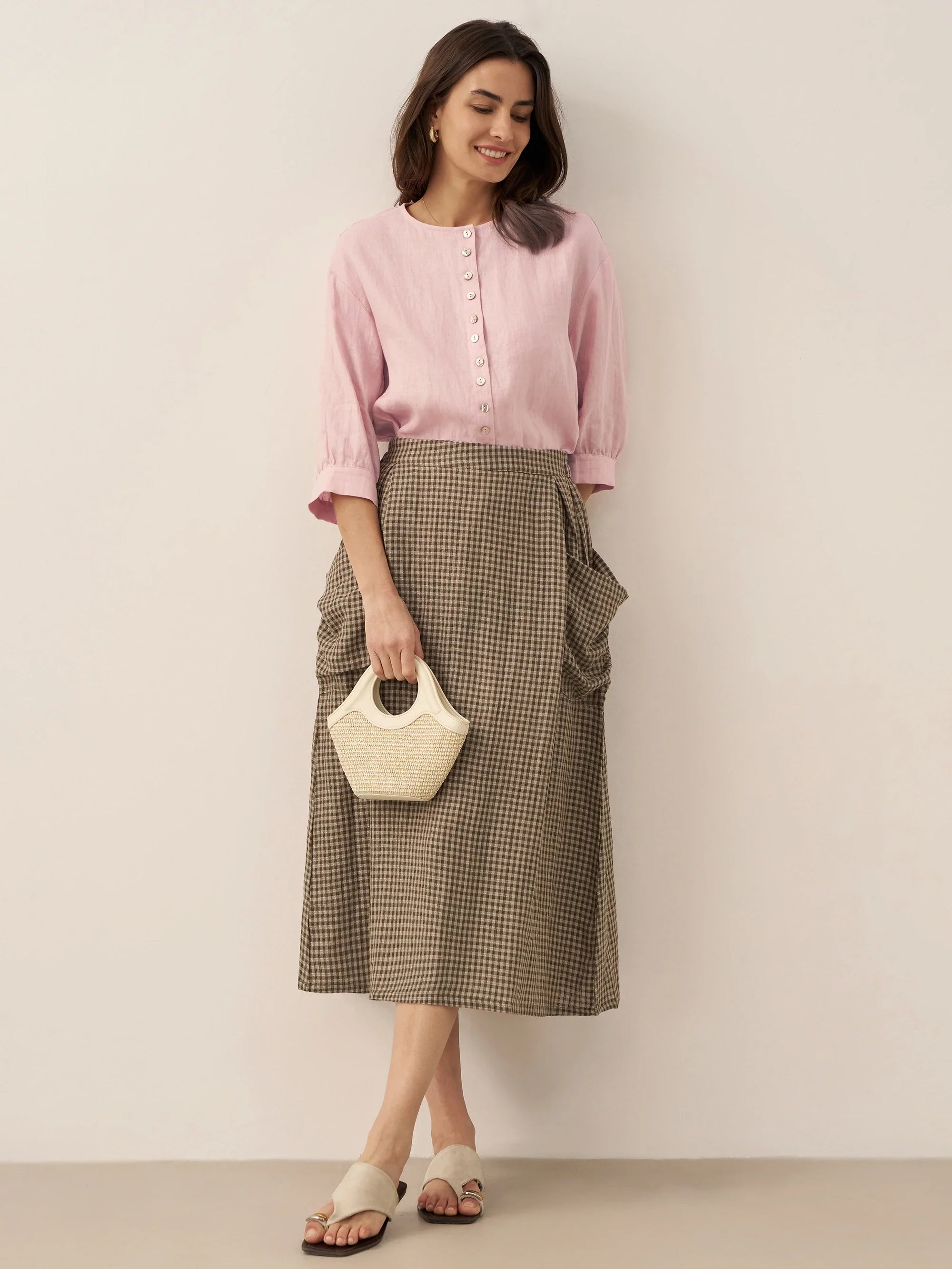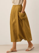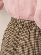 Jupe à Taille Élastique à Carreaux en Lin ONYX