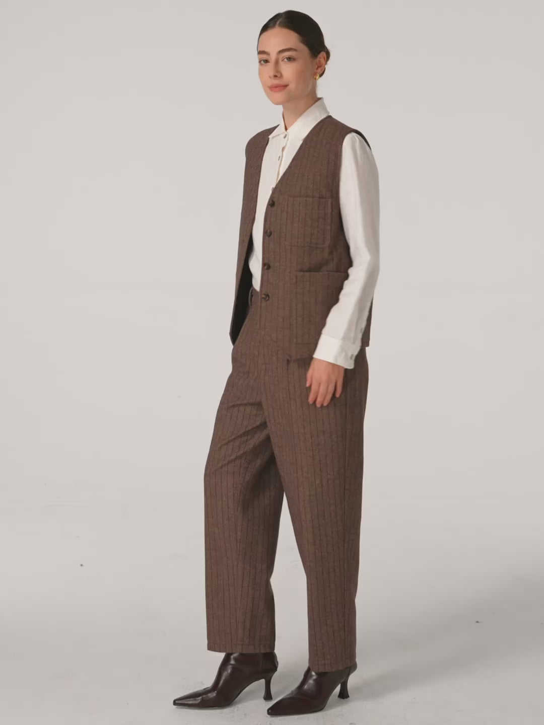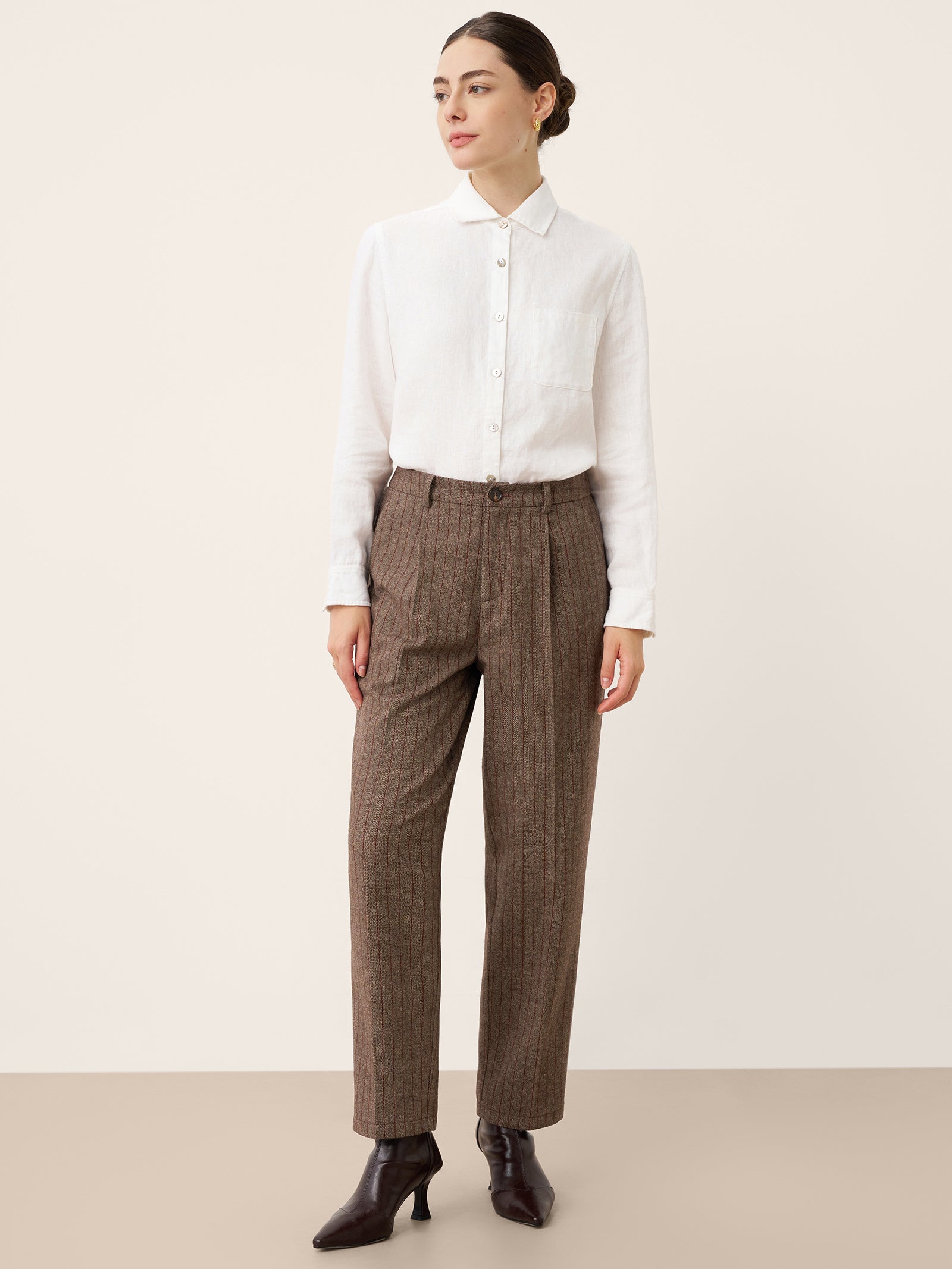 Un tissage dense garantit la durabilité et la résistance aux plis, tandis que les fibres mélangées préservent la tenue du vêtement. Des coutures méticuleuses et des finitions raffinées maintiennent une silhouette nette — une élégance qui résiste au temps et à l’usage.