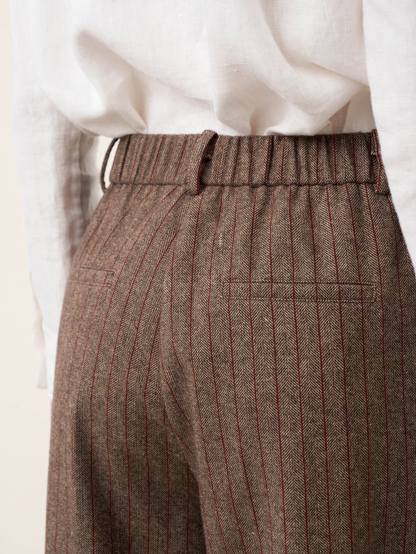 Pantalon ajusté fuselé rayé en laine CASSIOPEIA
