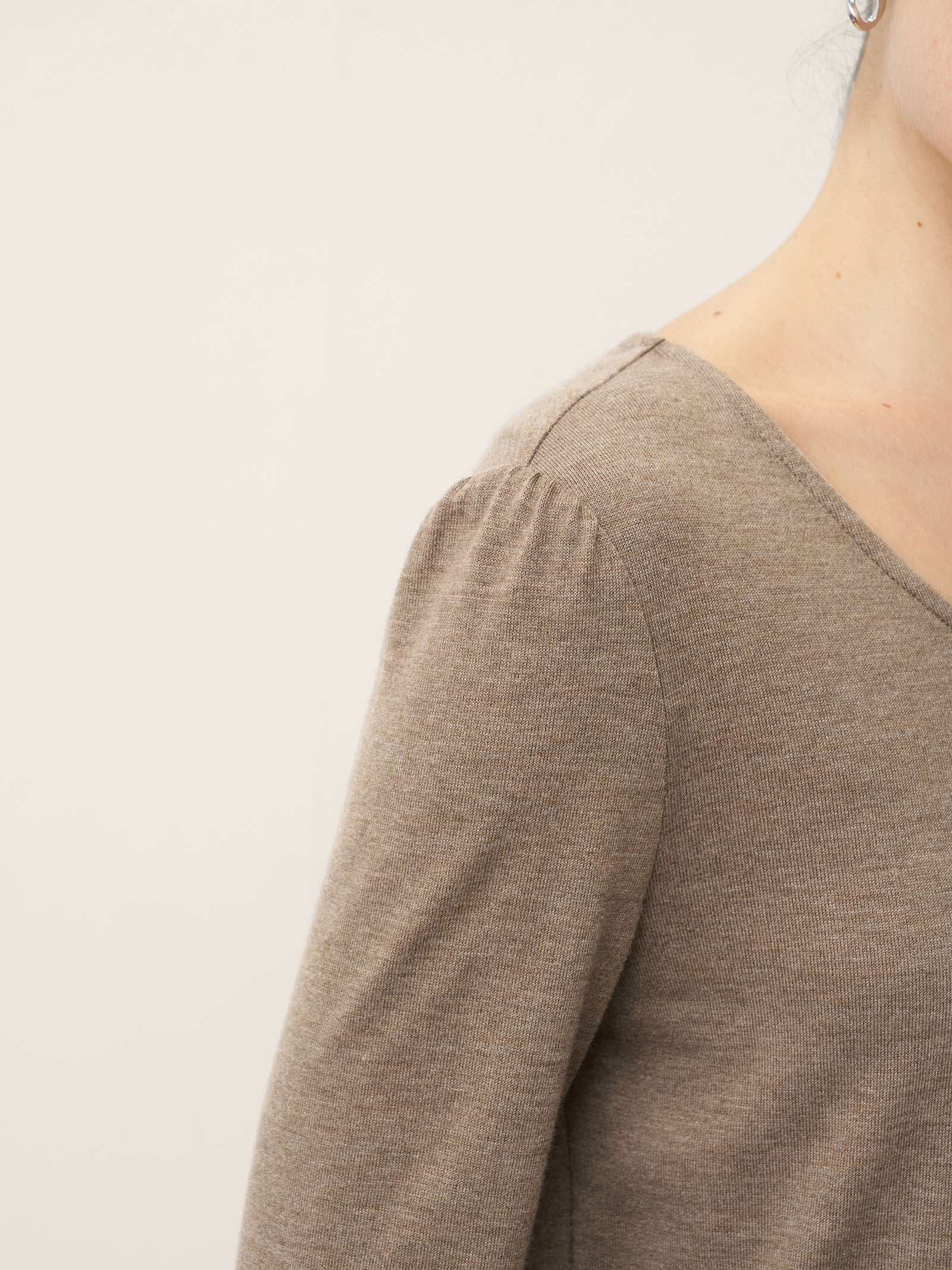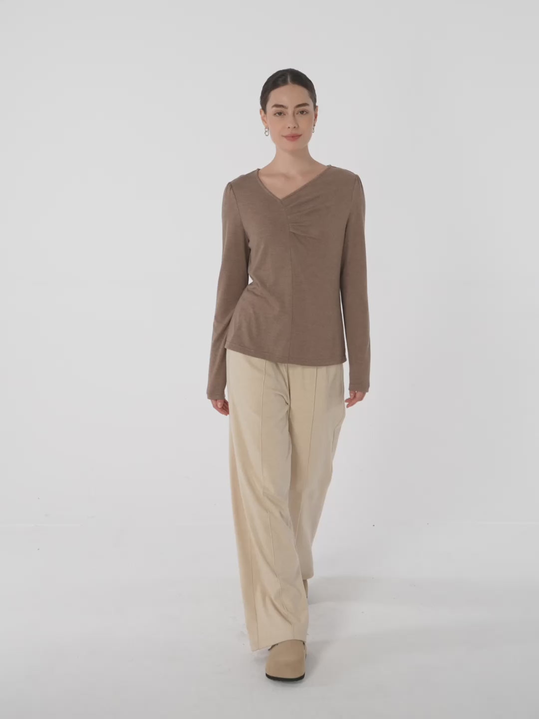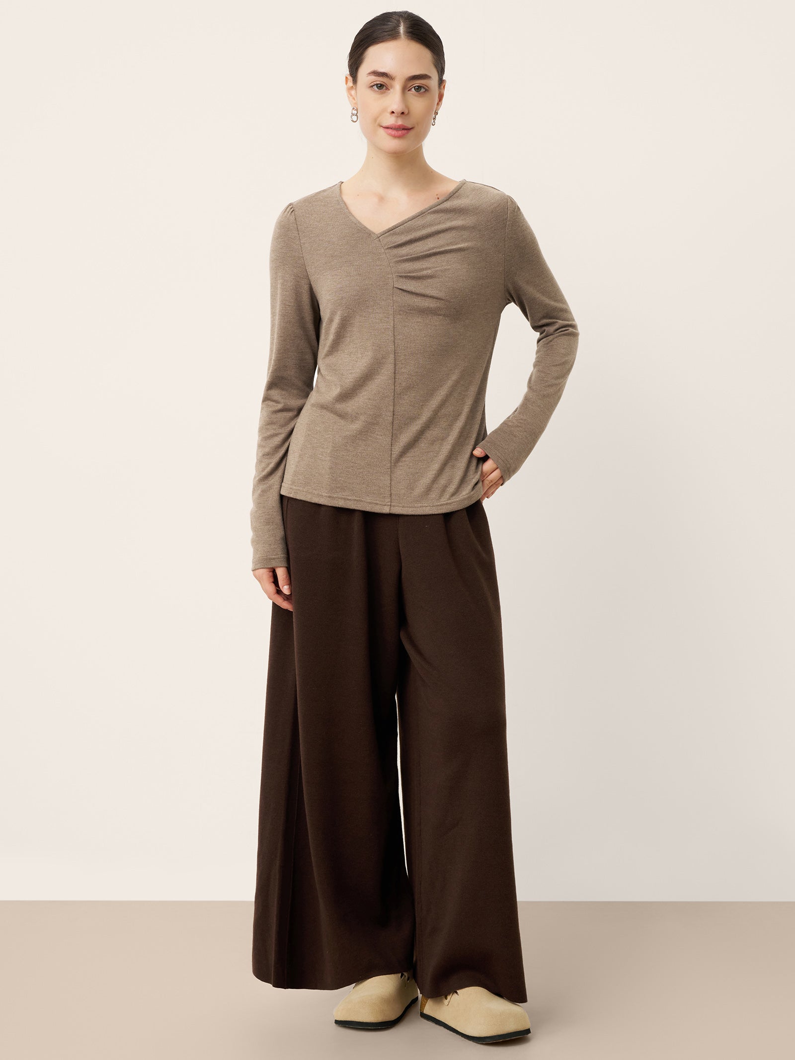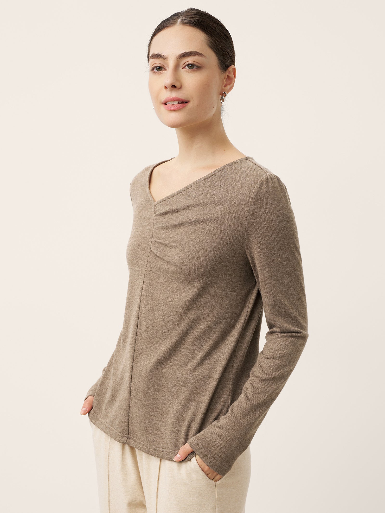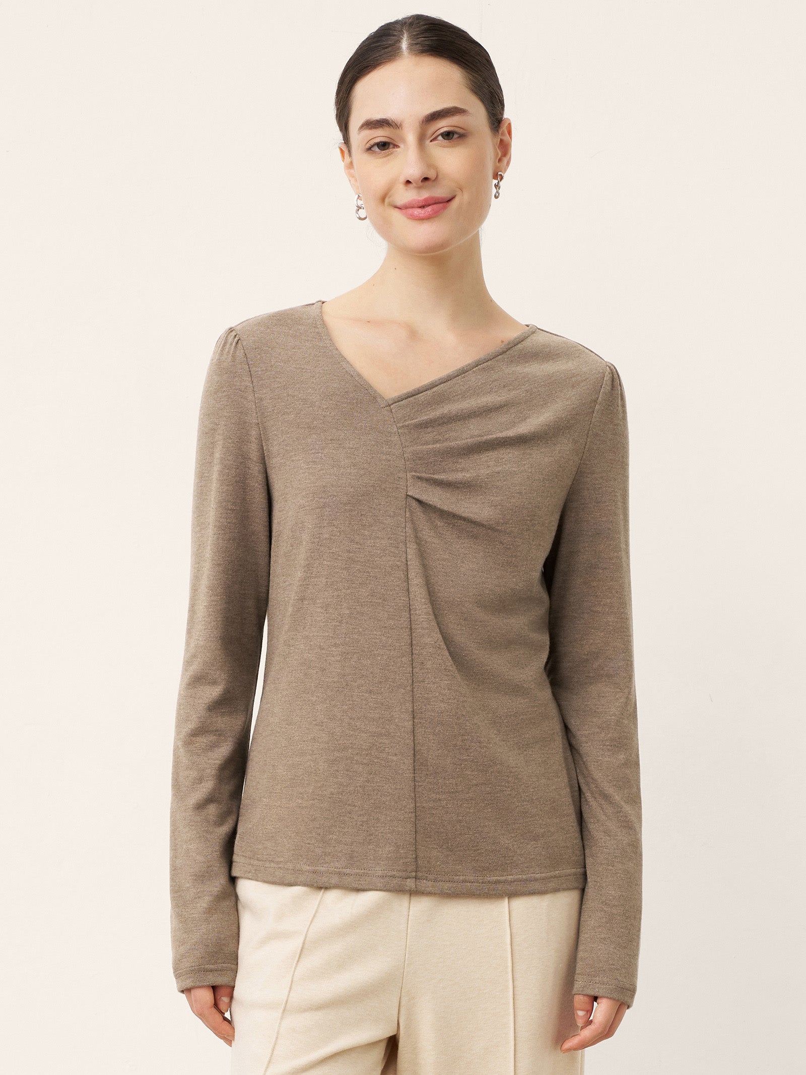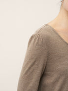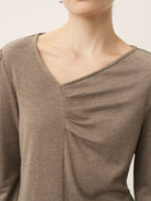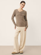 Haut extensible froncé à col V asymétrique en cachemire ANASTASIA