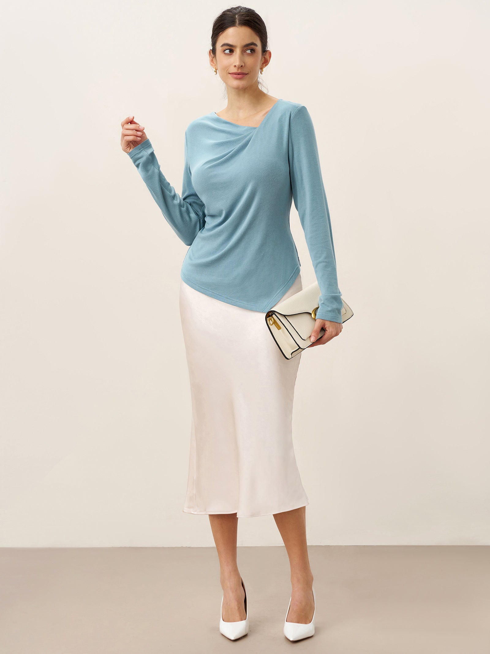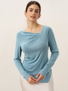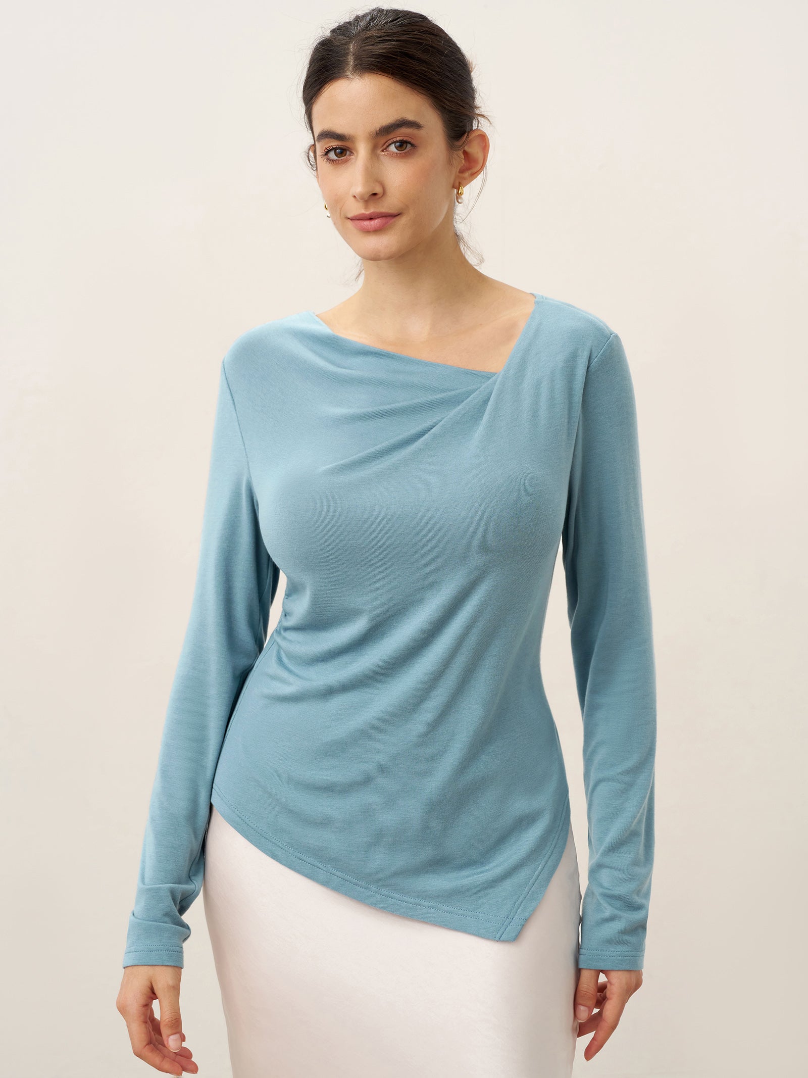 Haut torsadé à col en V et froncé en laine et lyocell NATALIE