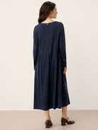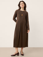 Robe longue CALISTA à plis sculptés et empiècements arqués en laine