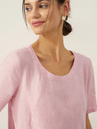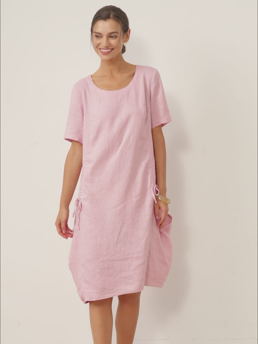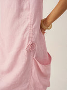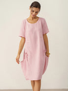 Robe mi-longue 100% lin à col rond et poche plaquée XENA