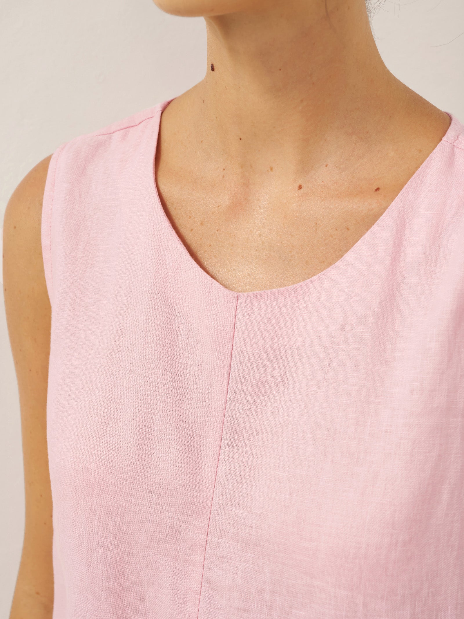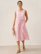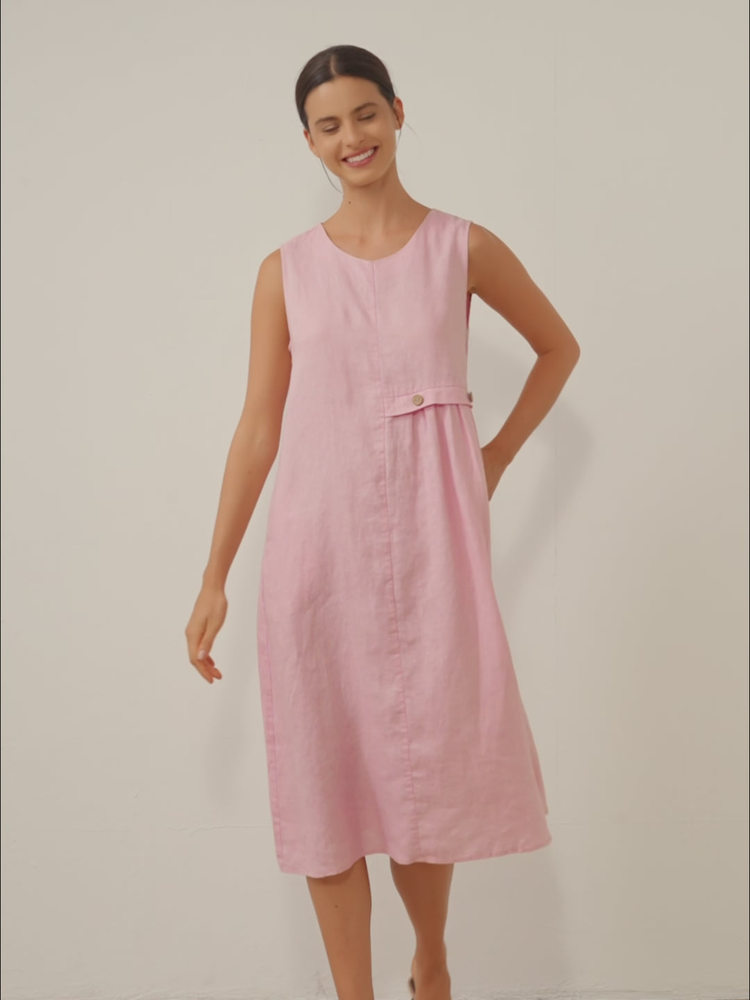 Robe midi plissée accordéon sans manches 100% lin TINA