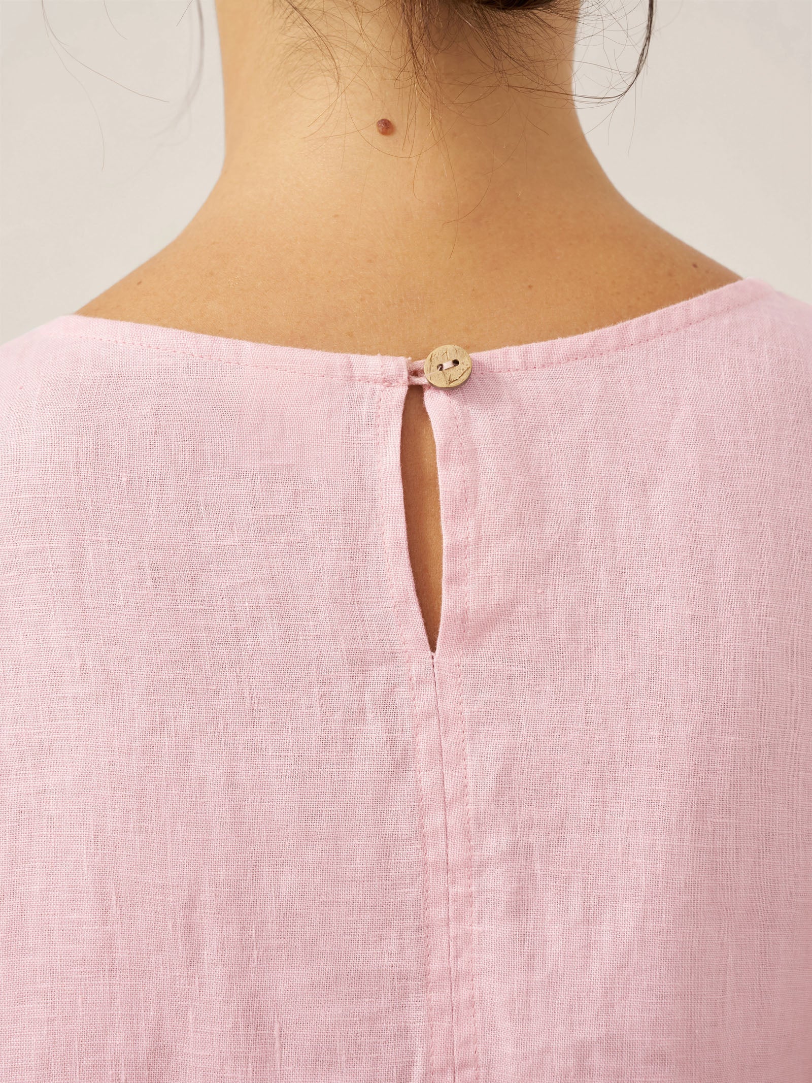 L'élégance sans effort rencontre le charme artisanal dans cette robe en lin magnifiquement détaillée.
