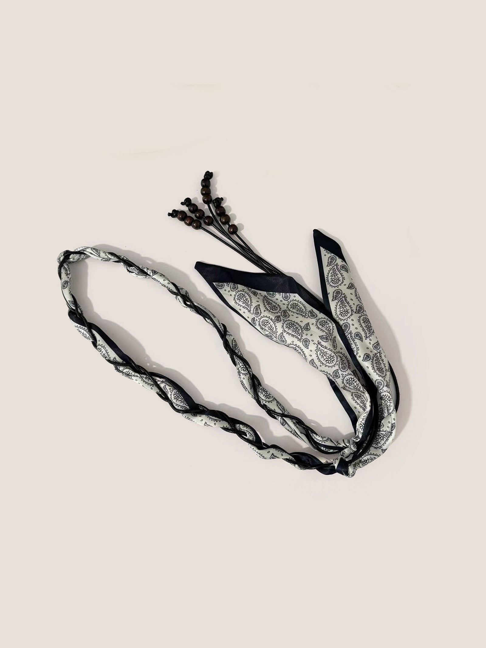 Cette pièce multifonctionnelle passe sans effort de l'écharpe à la ceinture, présentant des imprimés ethniques bohèmes vibrants et des détails tissés à la main ornés de perles en bois. Son design polyvalent ajoute une touche de couleur et de texture aux tenues, qu'elle soit drapée comme une écharpe ou nouée comme une ceinture. Mesurant 145cm de long, elle allie praticité et allure bohème, devenant un élément polyvalent dans toute garde-robe.