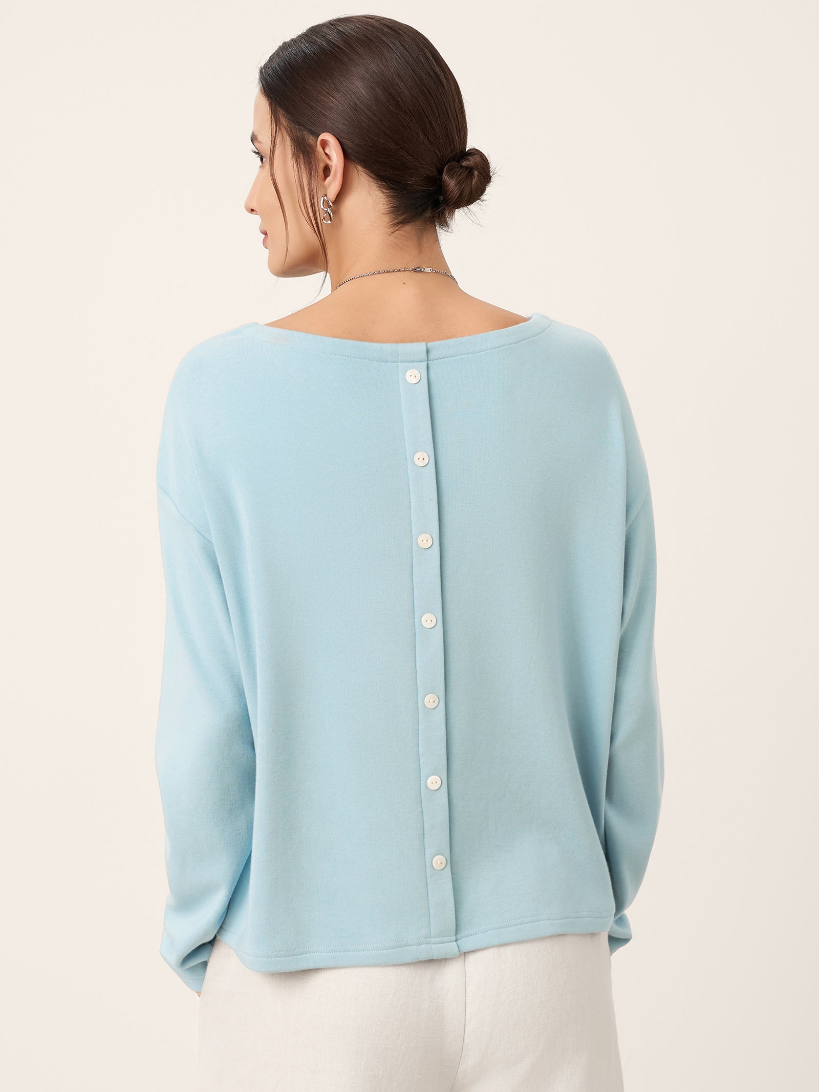 Haut à manches longues, encolure bateau et boutonnage au dos AIRA