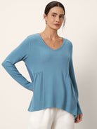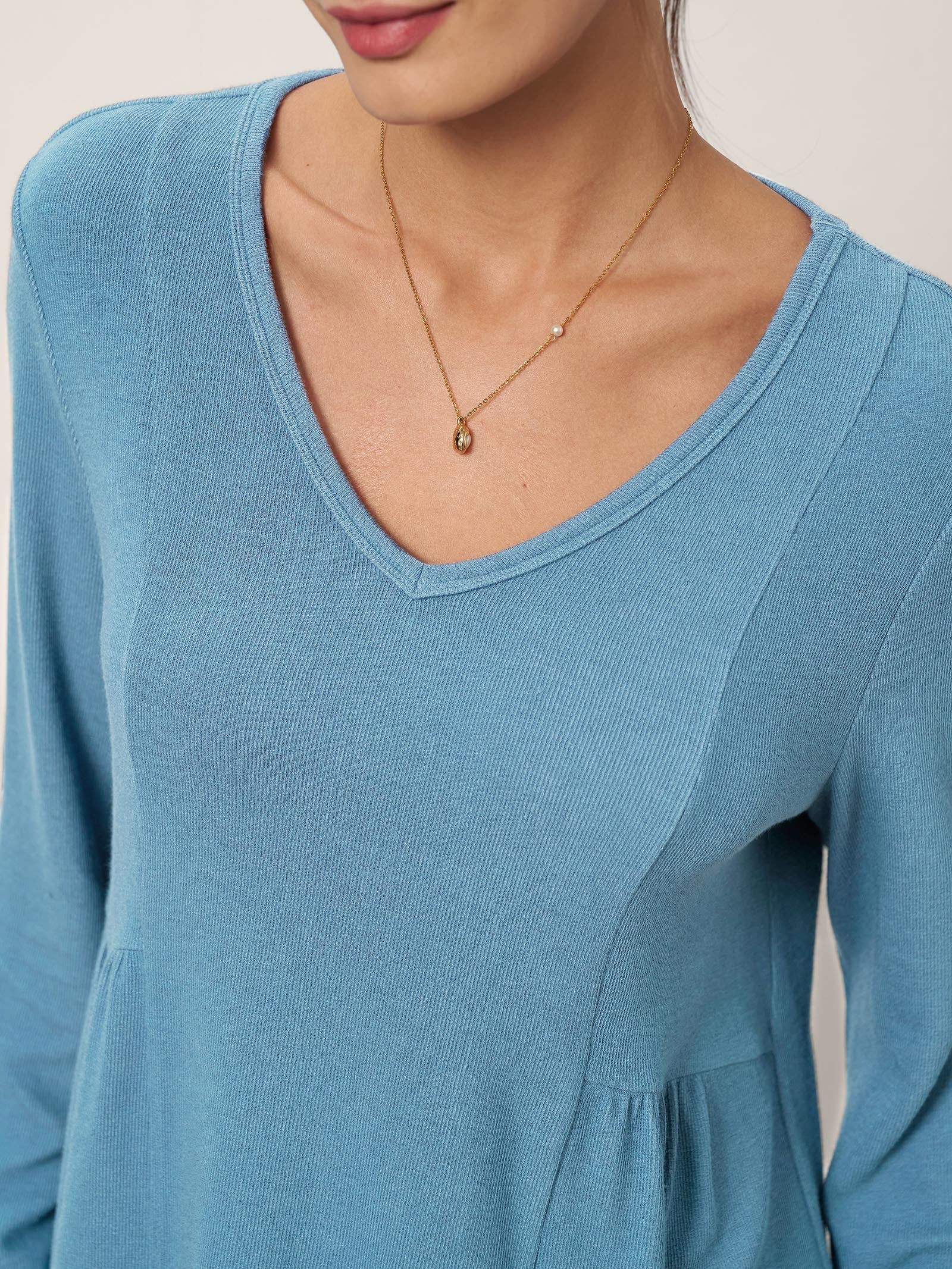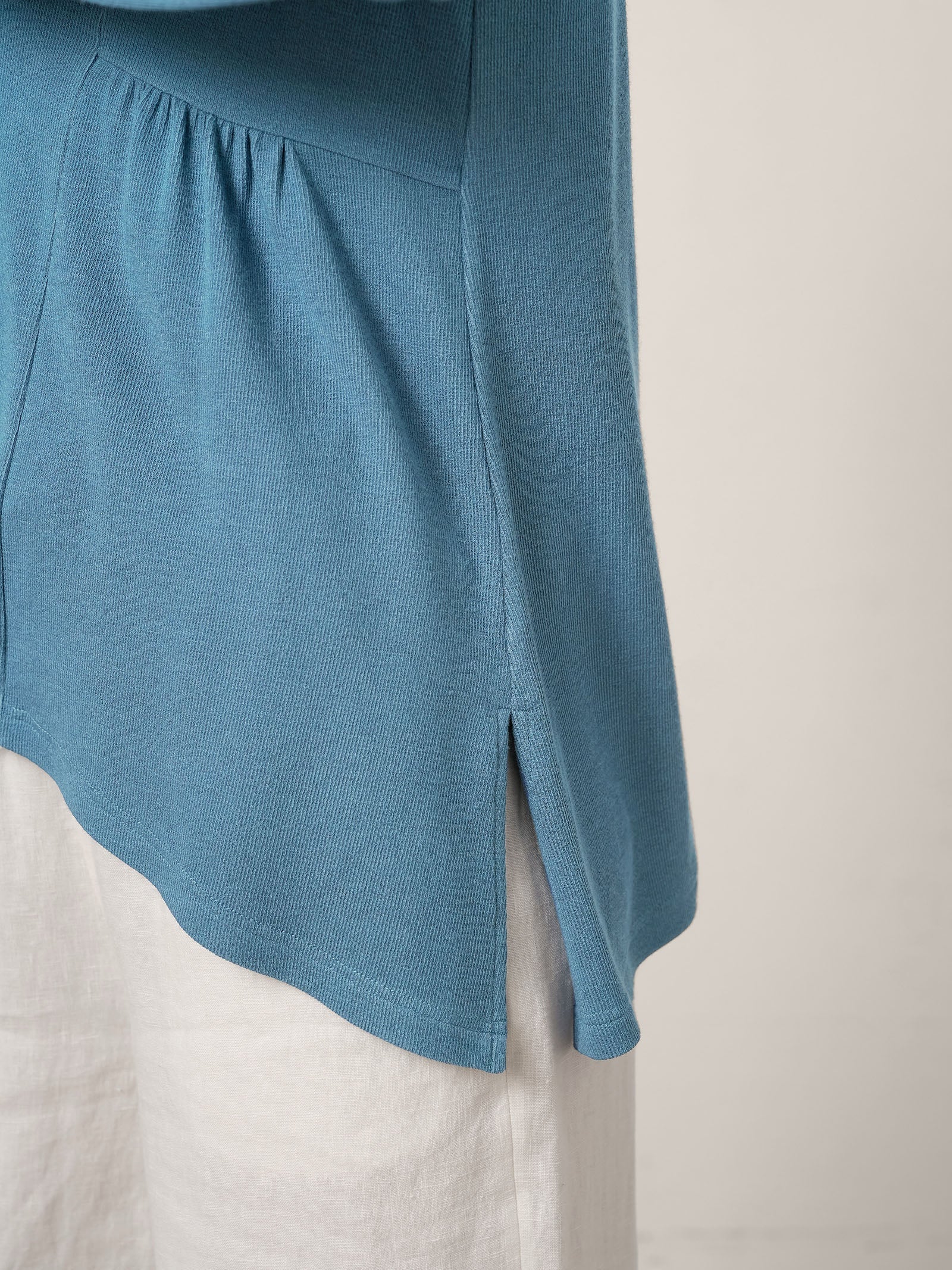 Haut à manches longues plissé cœur en laine et coton AMBRE