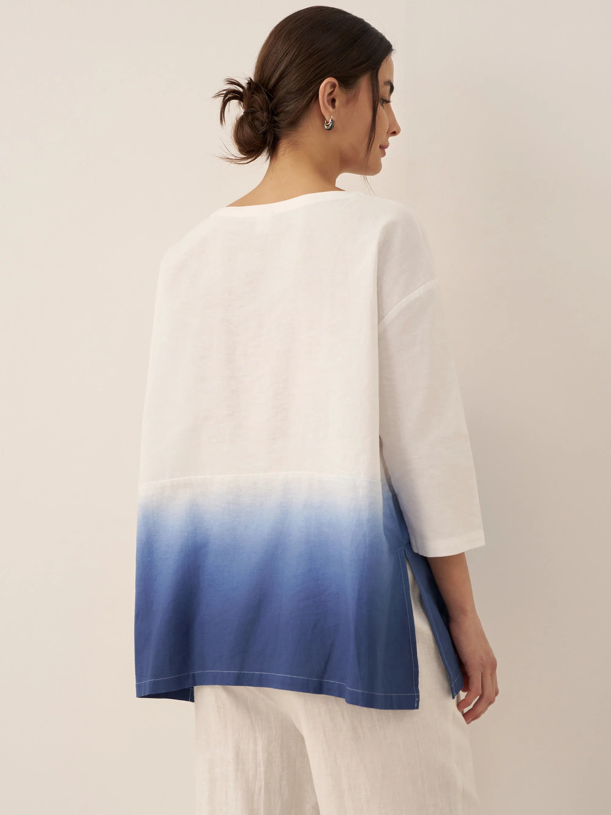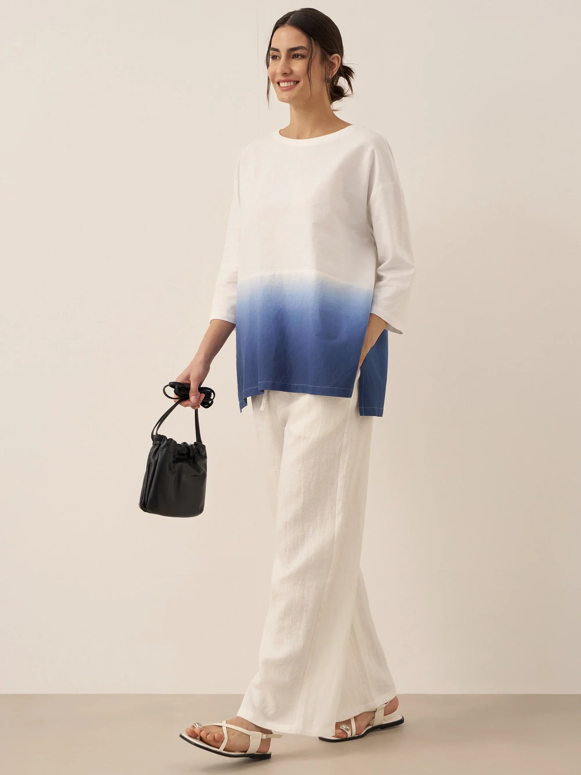 Tissu en 55% lin européen et 45% coton, poids lourd (>160g/m²), offrant une texture robuste qui crée une silhouette parfaitement structurée. Les fils de lin de haute qualité répondent aux exigences de la technique de teinture pièce, garantissant une excellente solidité des couleurs et une résistance au délavage. Naturellement écologique, antibactérien et respirant, il procure un confort et une élégance inégalés.