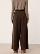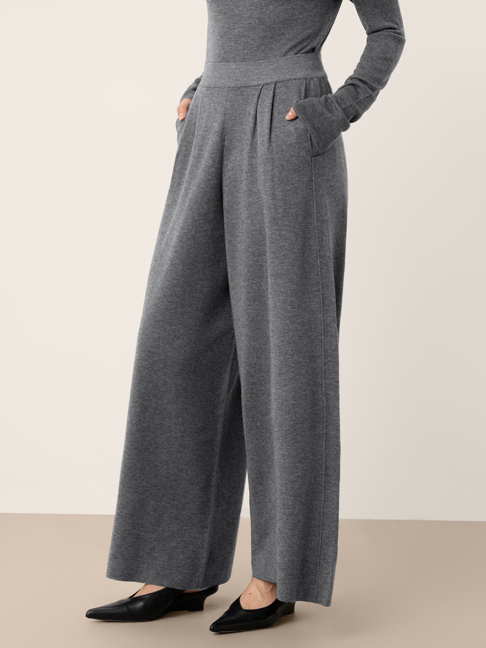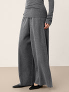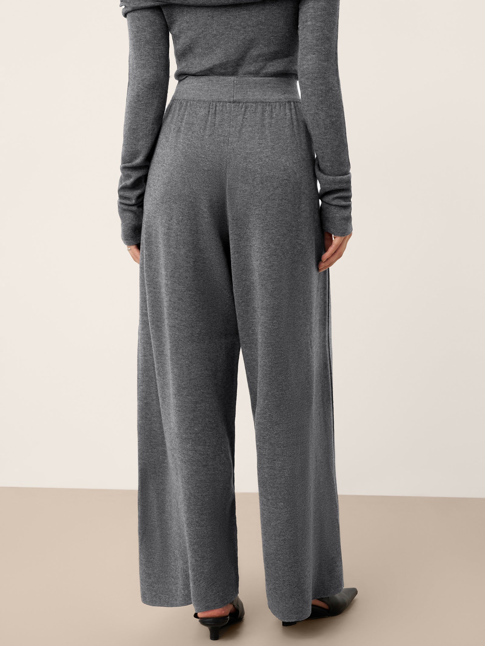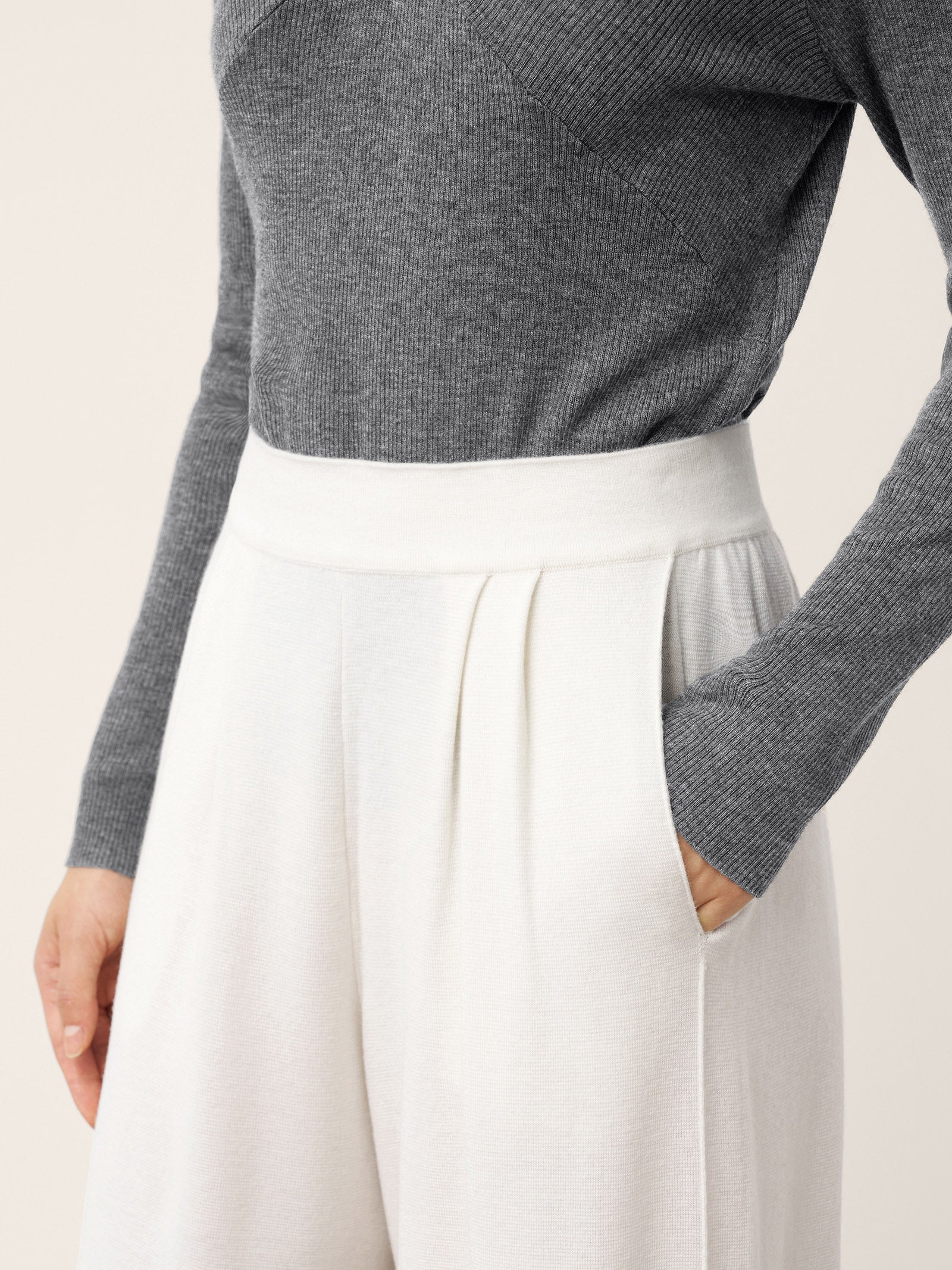 Pantalon à jambe droite décontractée avec taille élastique en laine mérinos YVETTE