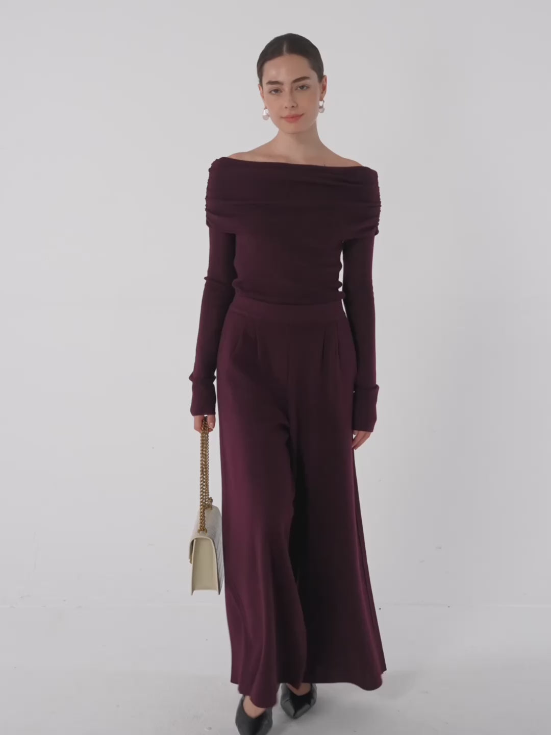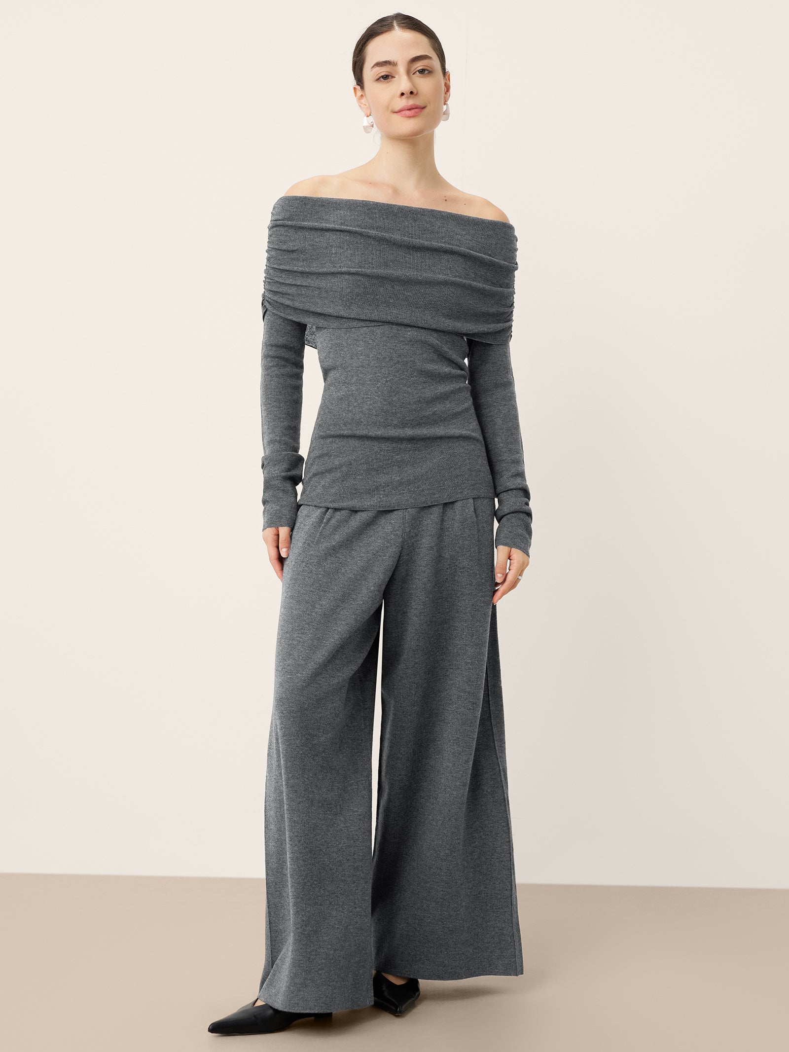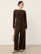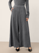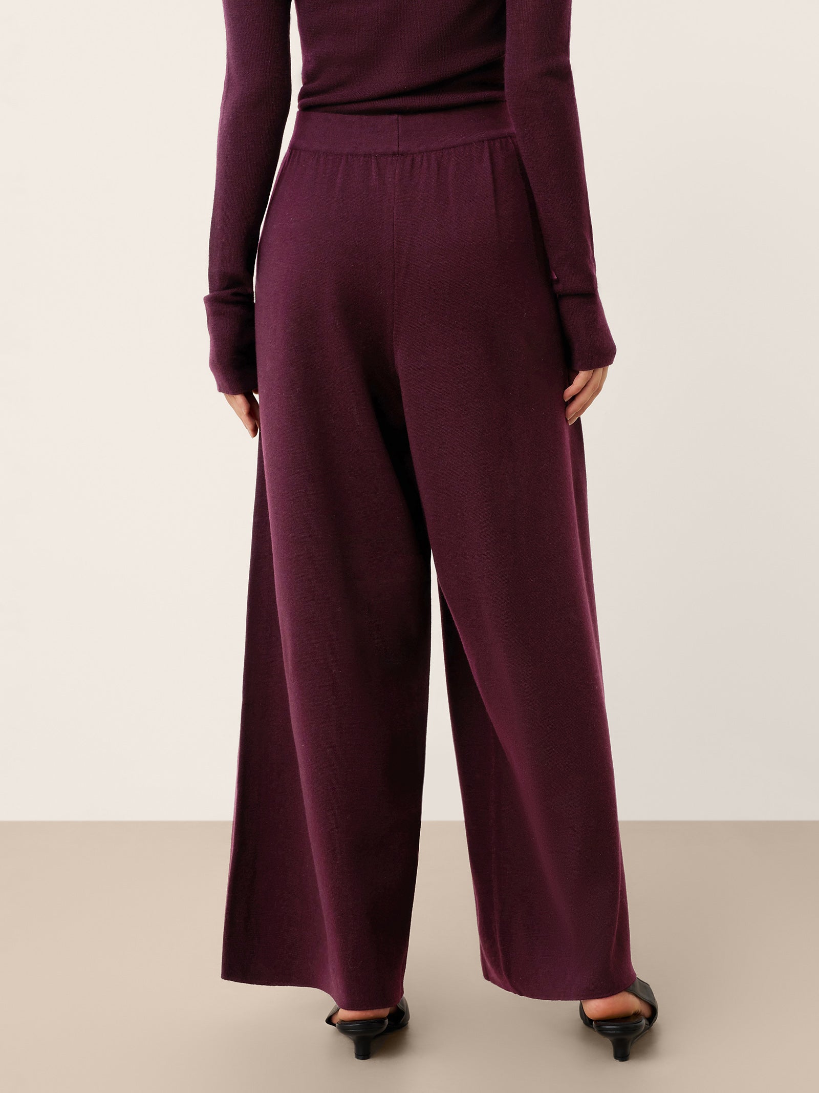 Pantalon à jambe droite décontractée avec taille élastique en laine mérinos YVETTE