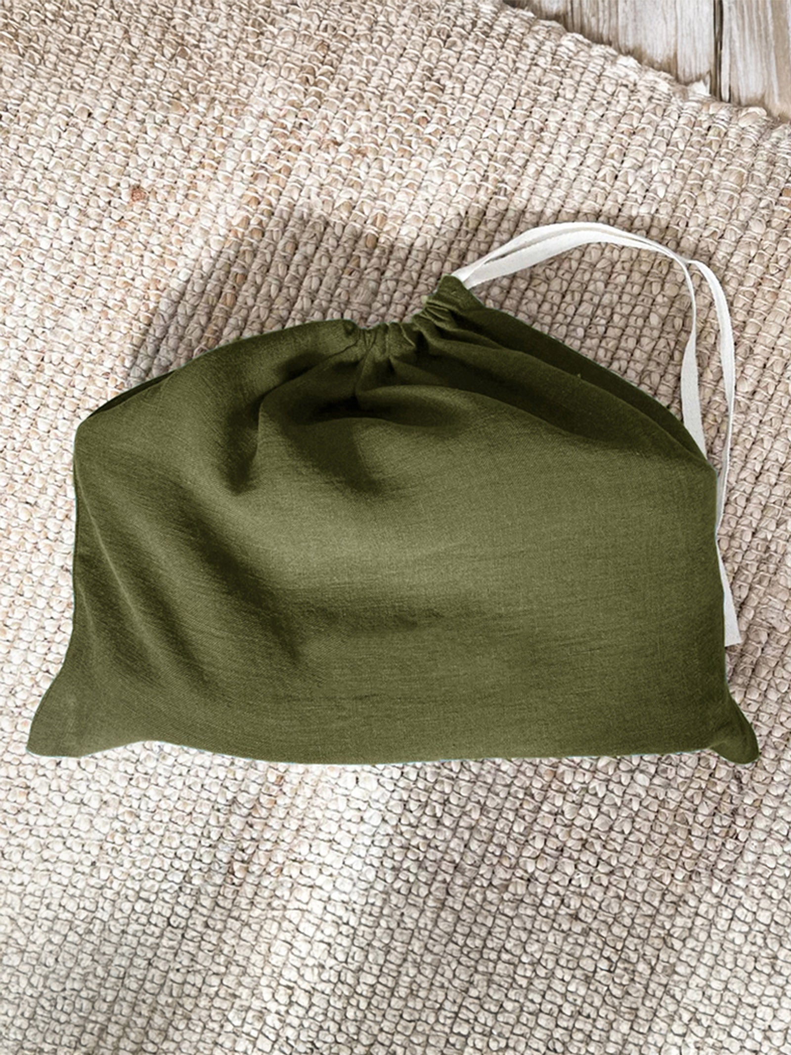 Confectionné en lin 100% pur, ce sac de rangement incarne le charme artisanal naturel avec sa fermeture à cordon facile à utiliser. Il offre un rangement flexible pour de multiples articles, alliant fonctionnalité et luxe discret. Mesurant 35×30cm, c'est un ajout polyvalent à l'organisation quotidienne.