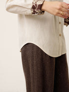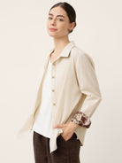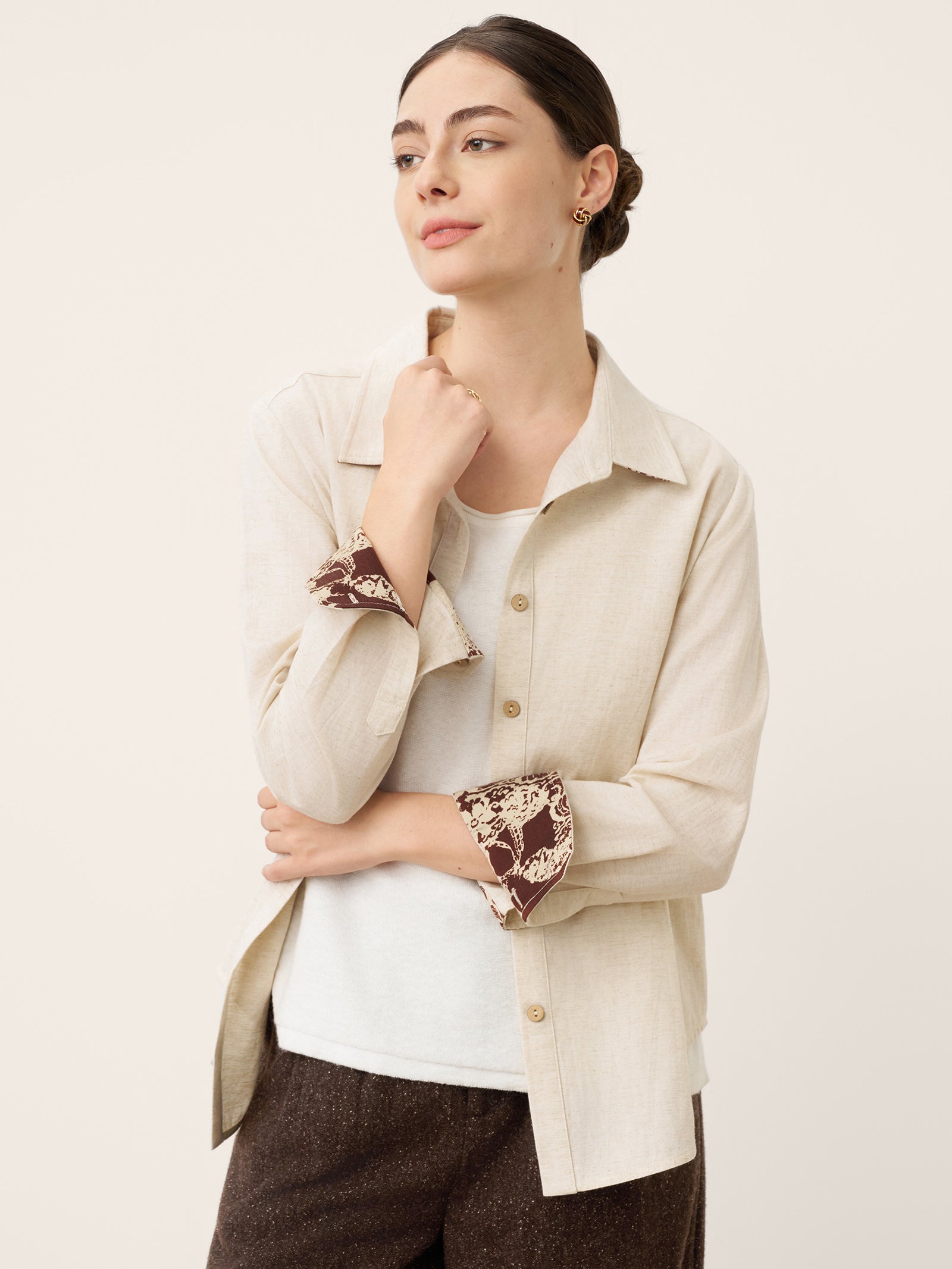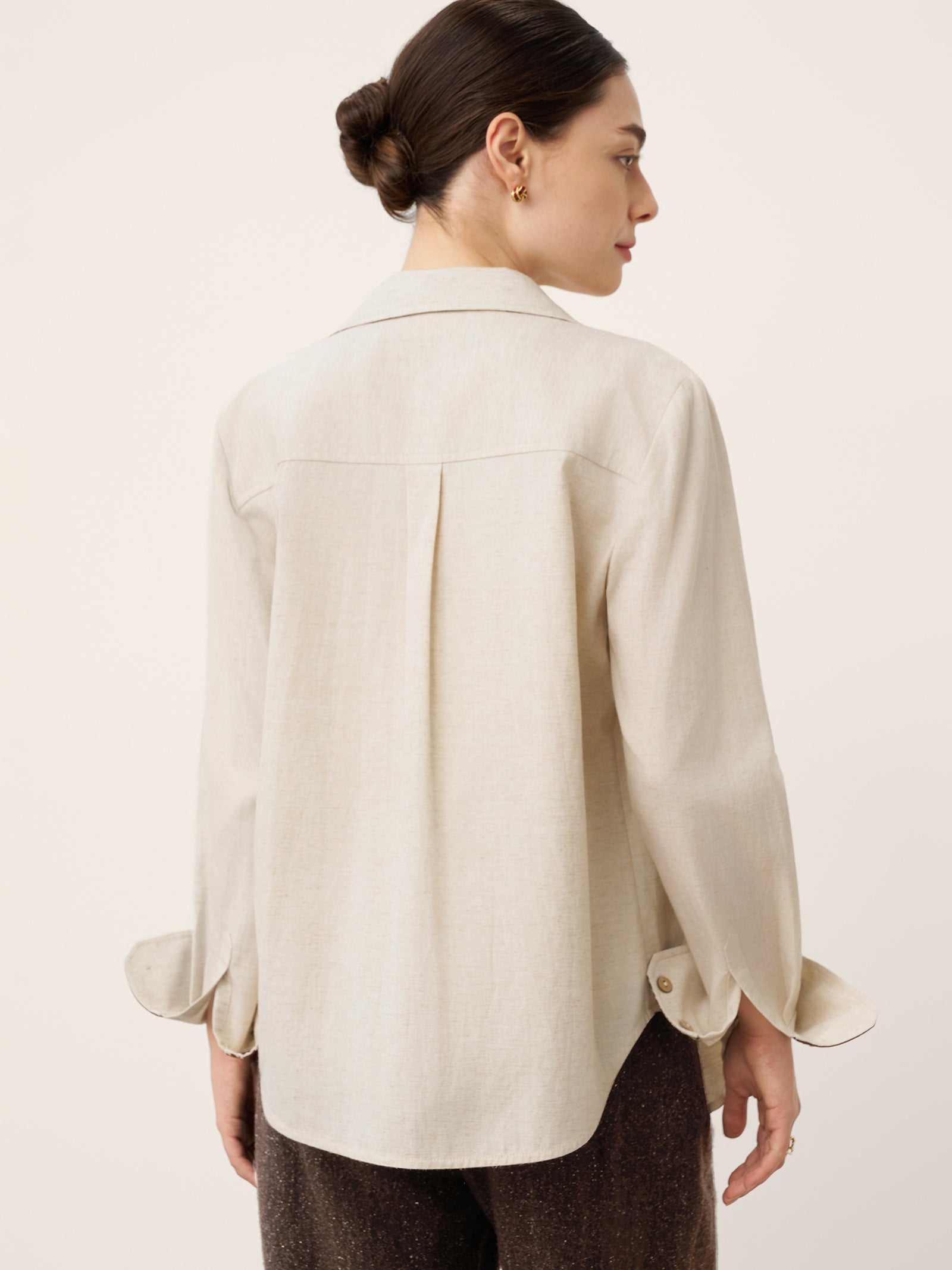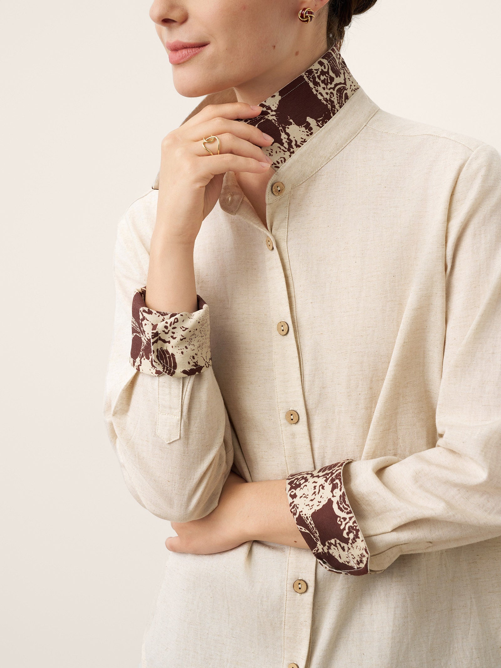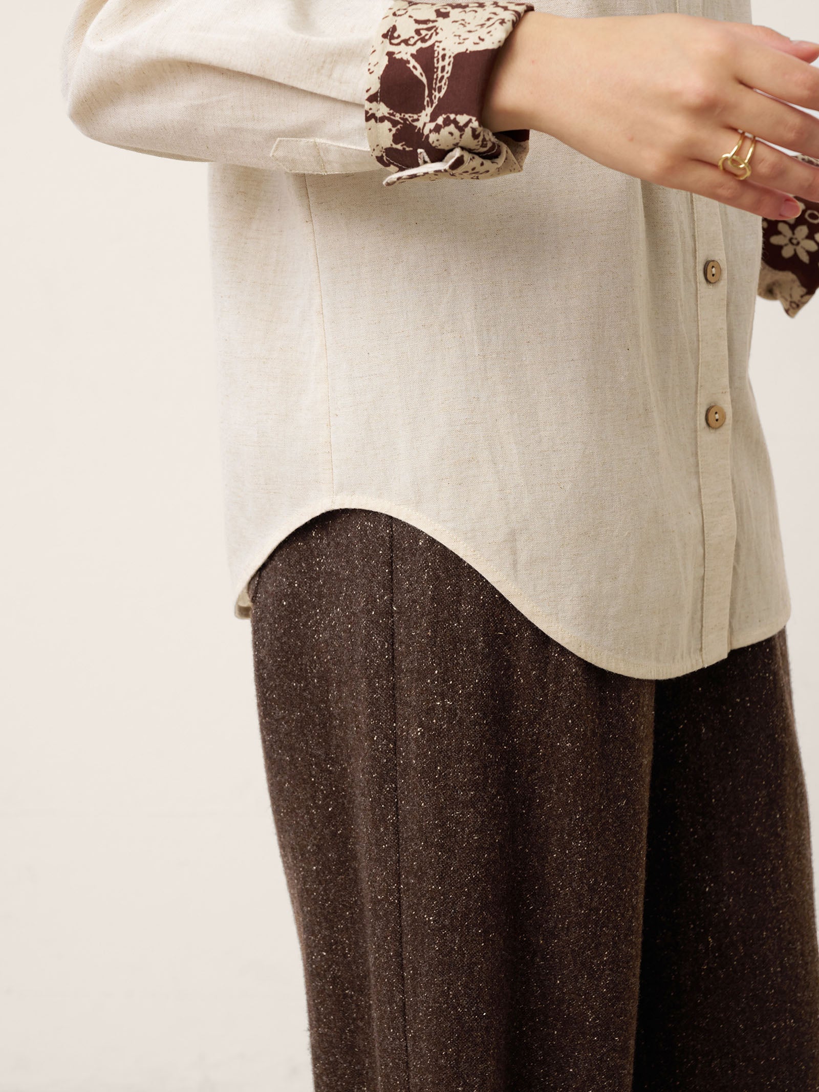 - Harmonie texturale organique: Boutons bruts + tissu respirant mélangé à du lin pour un luxe tactile amplifié