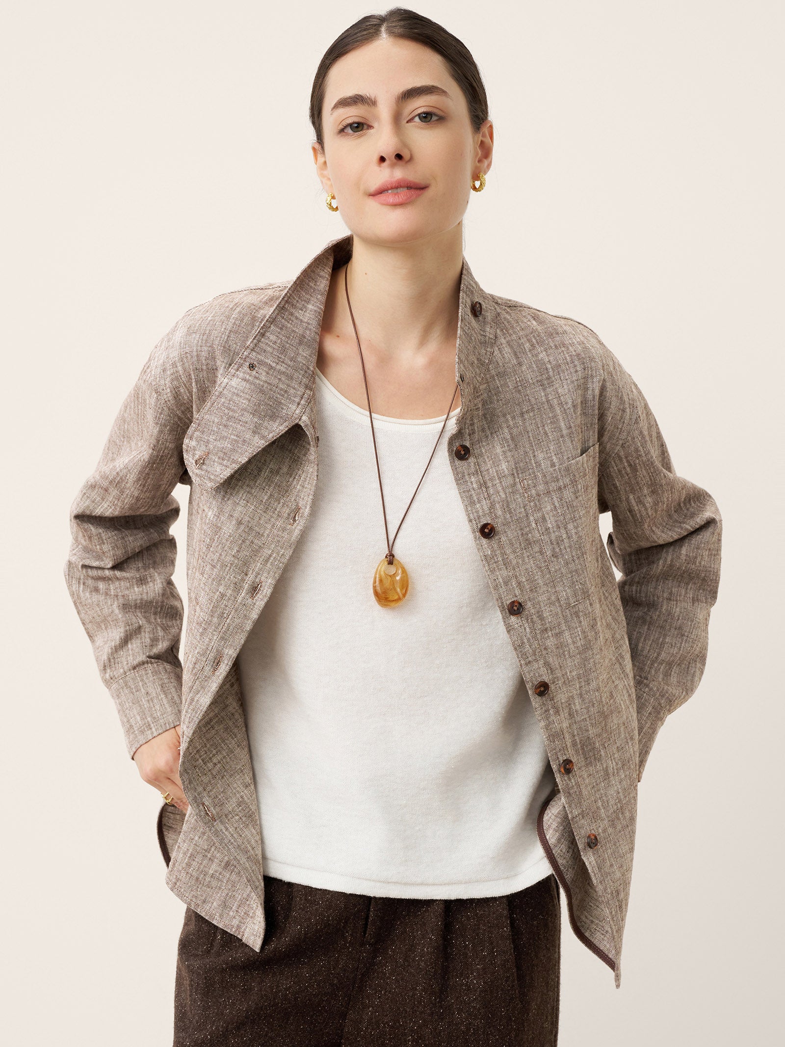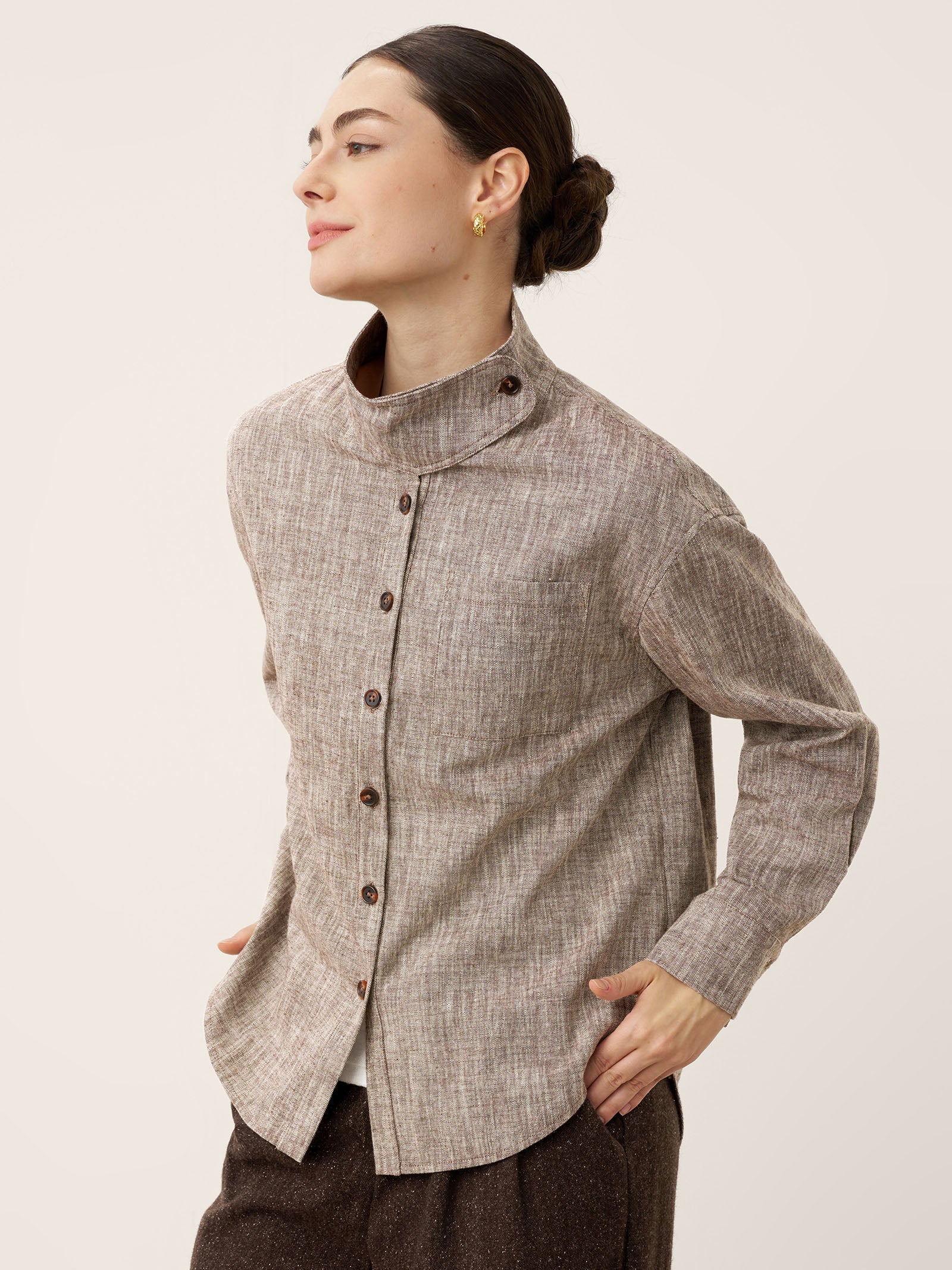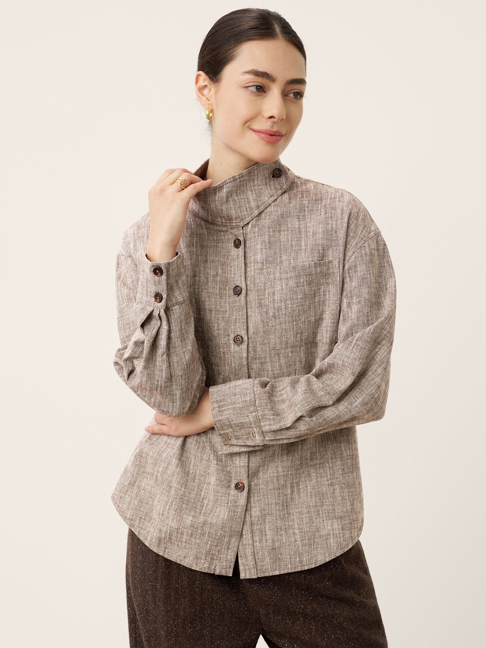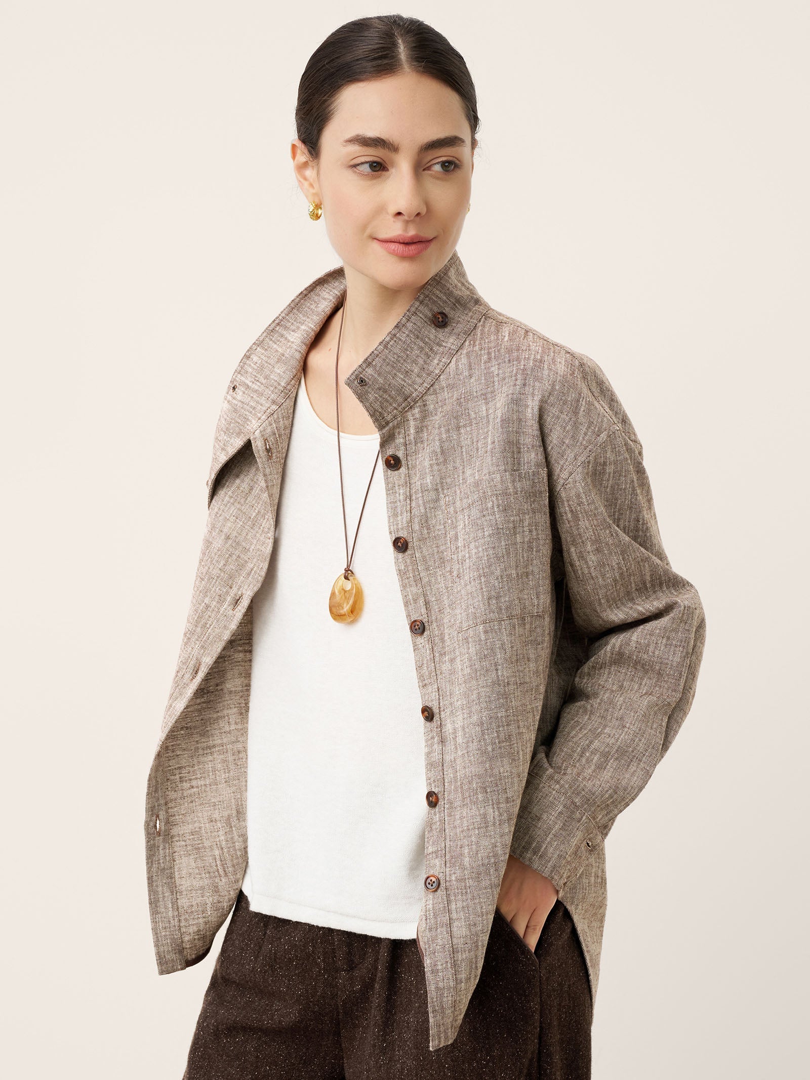 Veste-chemise convertible à col montant en lin et coton GISELLE