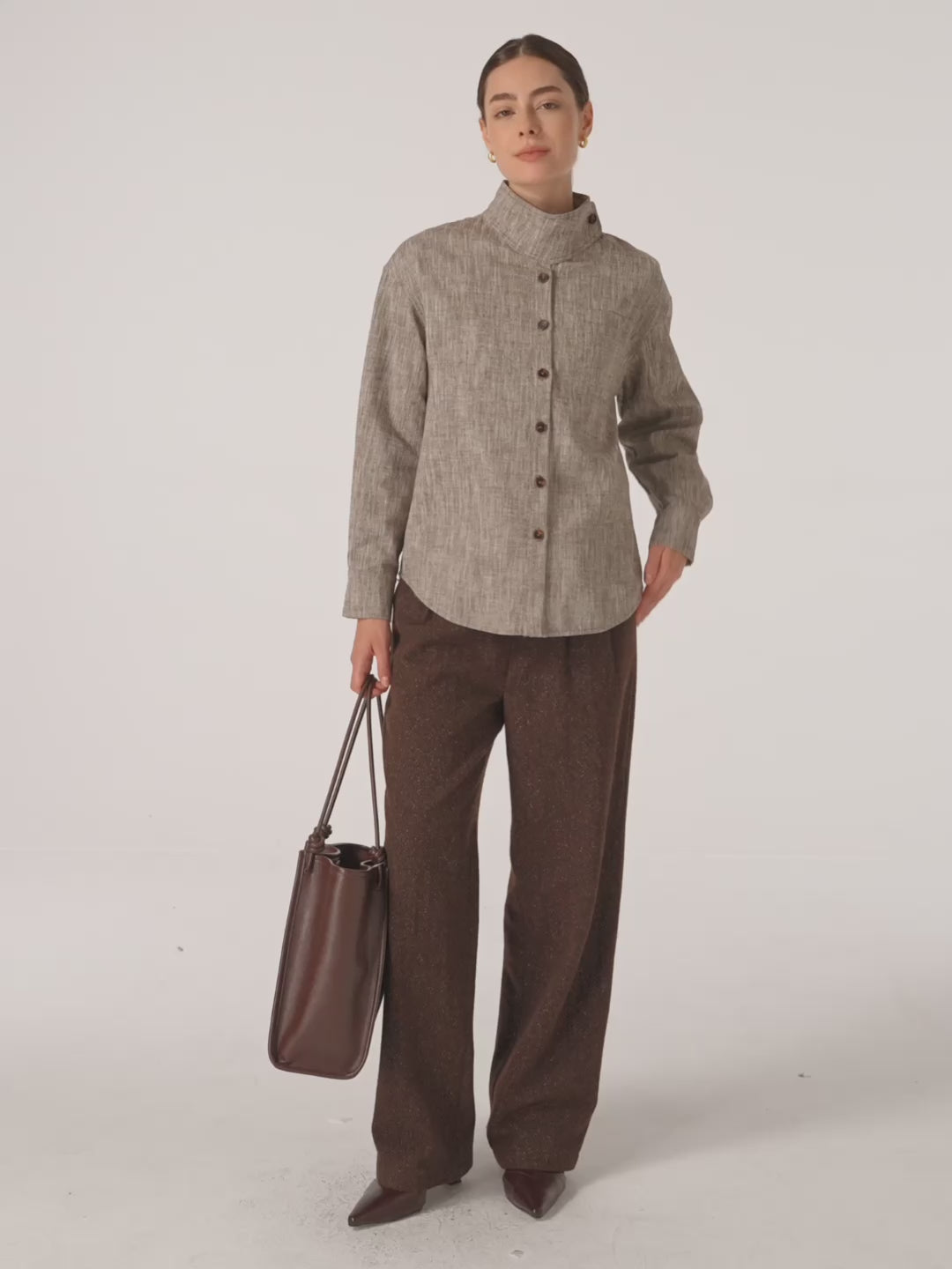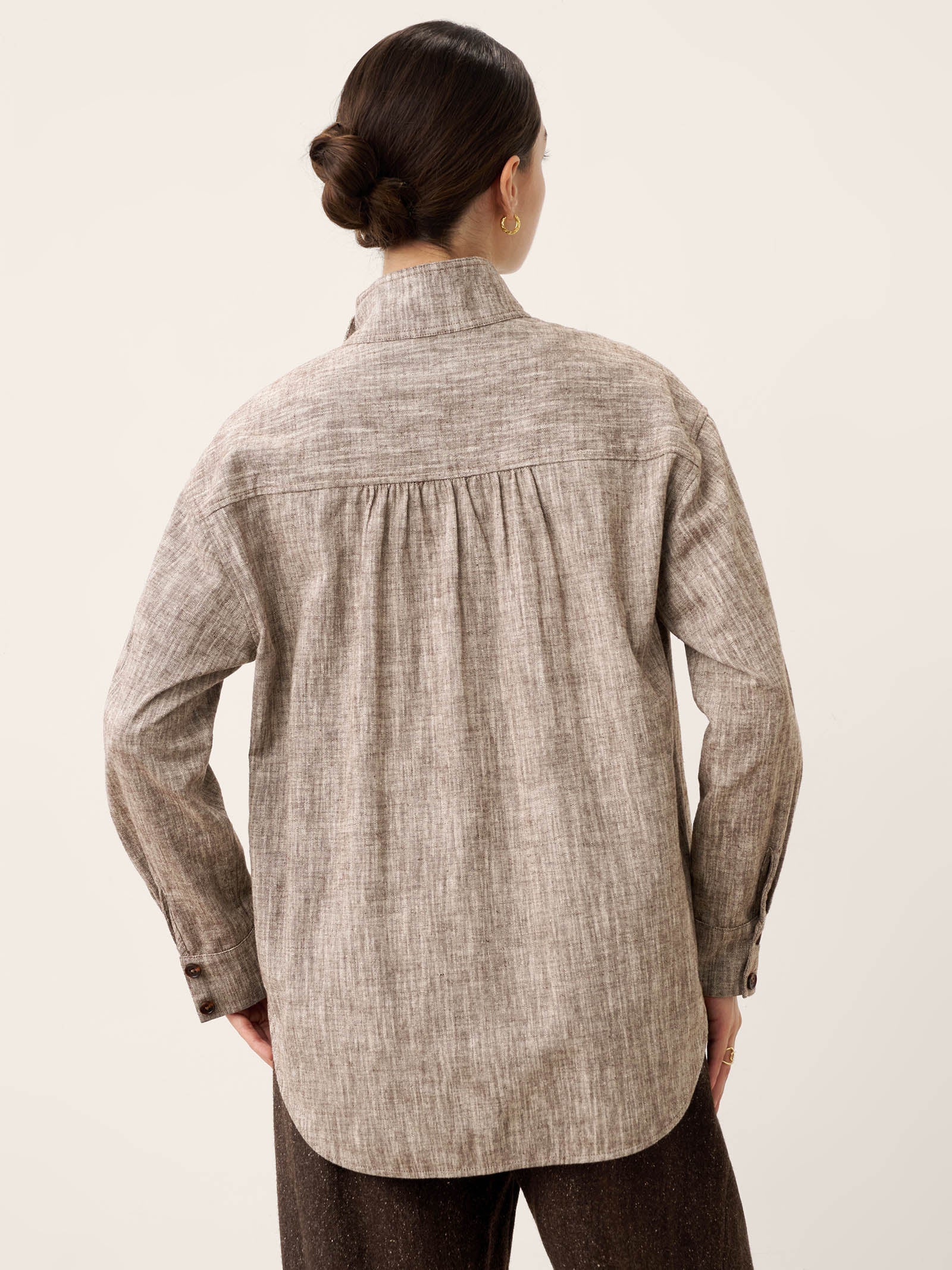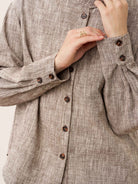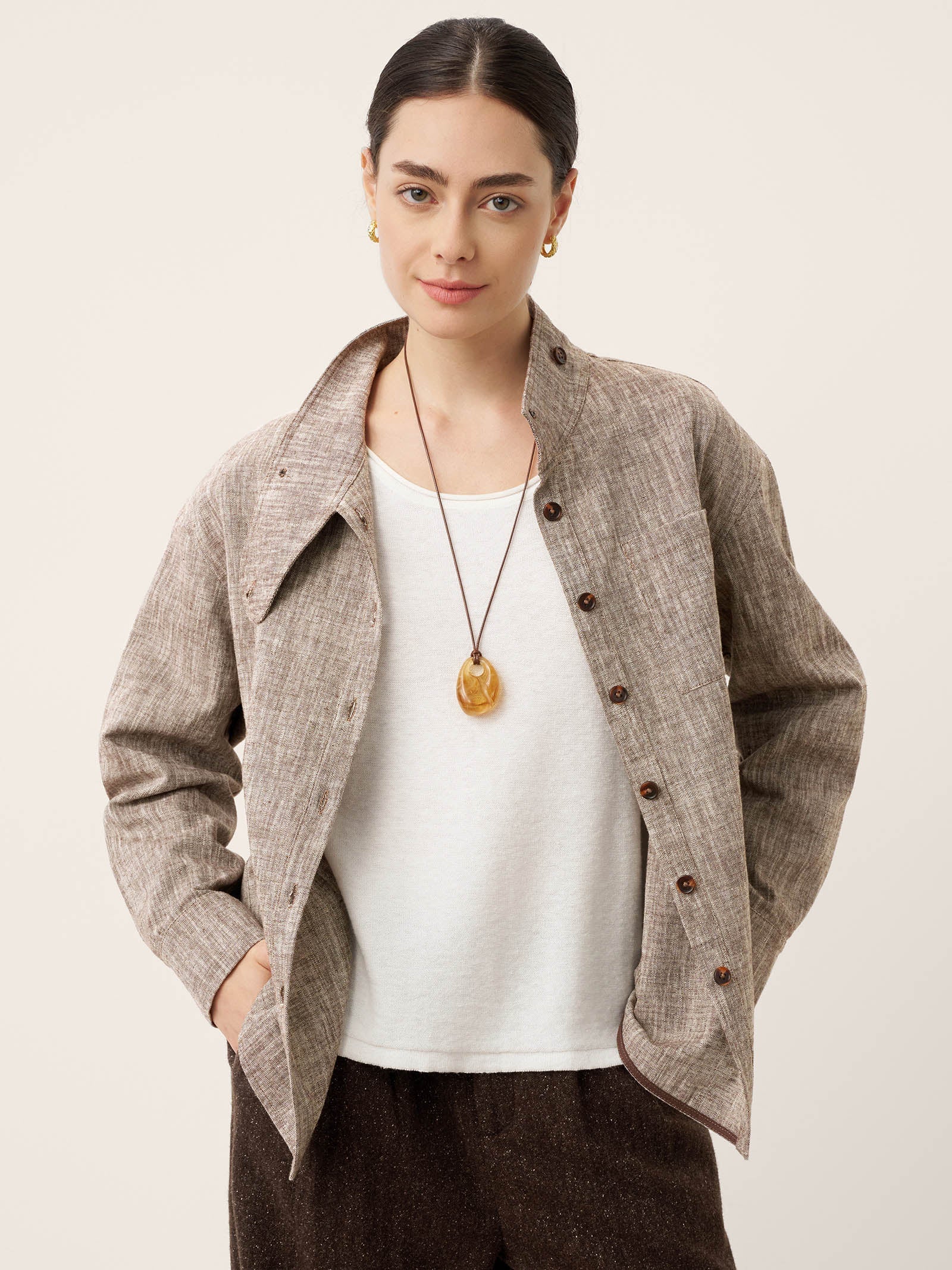 Veste-chemise convertible à col montant en lin et coton GISELLE