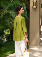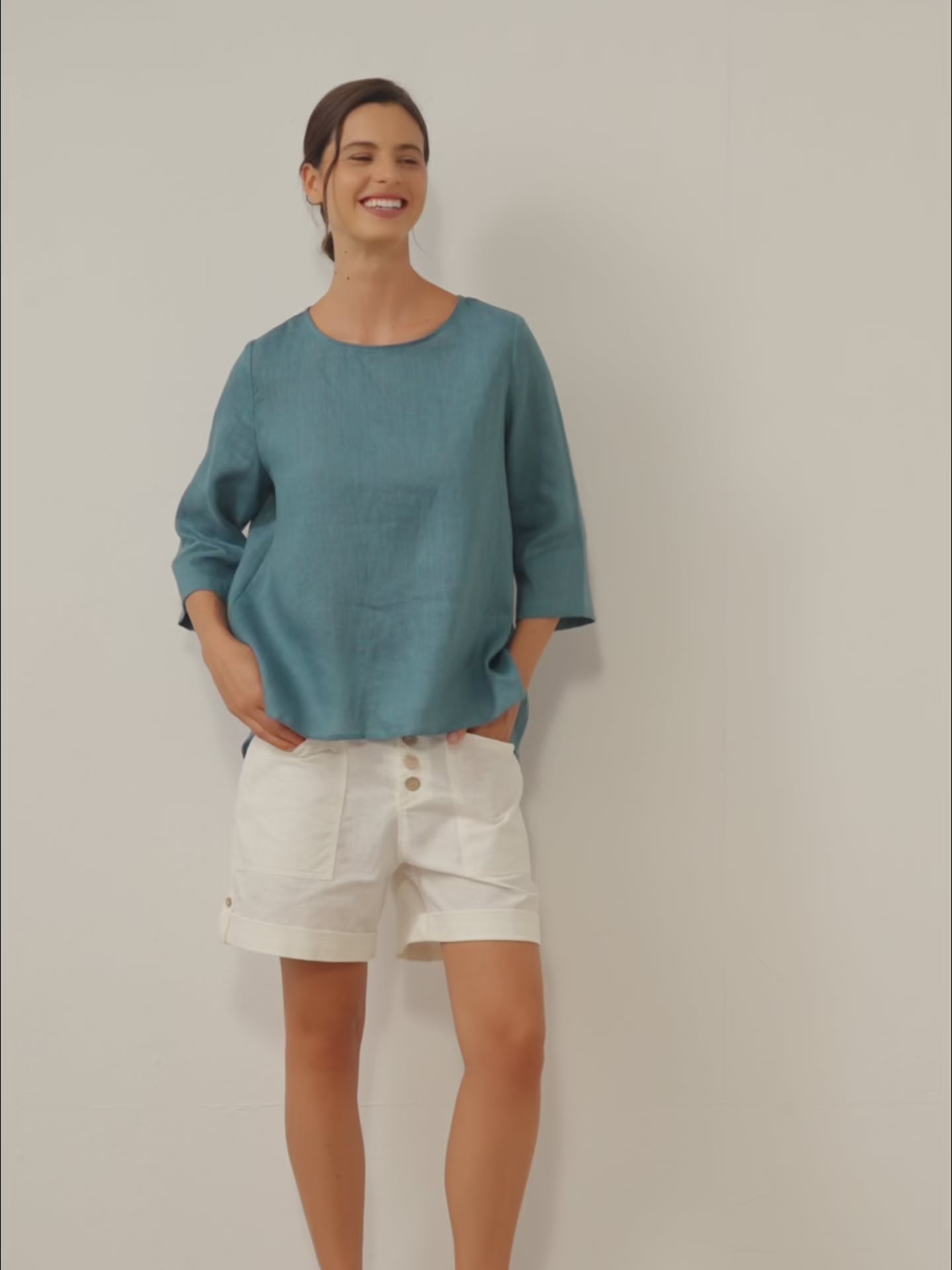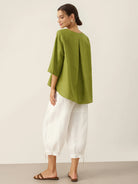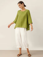 Haut en lin 100% à col rond et ourlet asymétrique BRIANNA