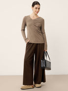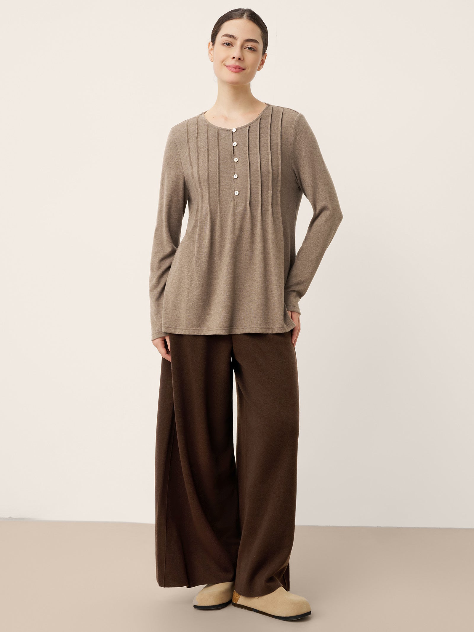 Un mélange soigneusement équilibré de fibres haut de gamme — cachemire, TENCEL™ et modal — crée un tissu aérien qui offre une sensation douce, lisse et parfaitement naturelle sur la peau.