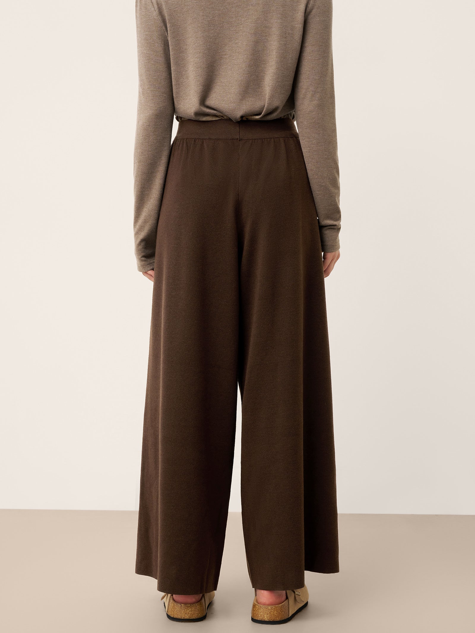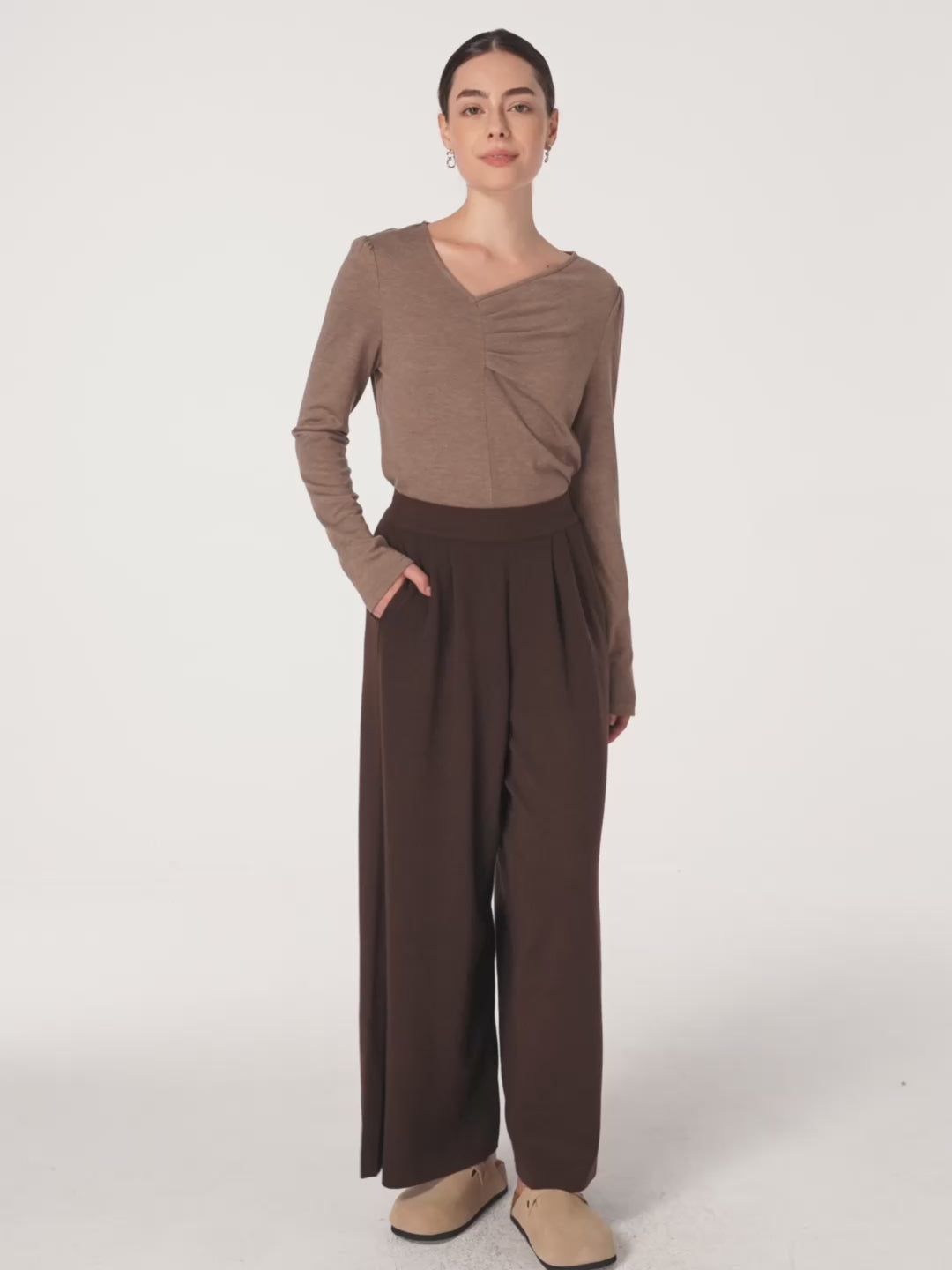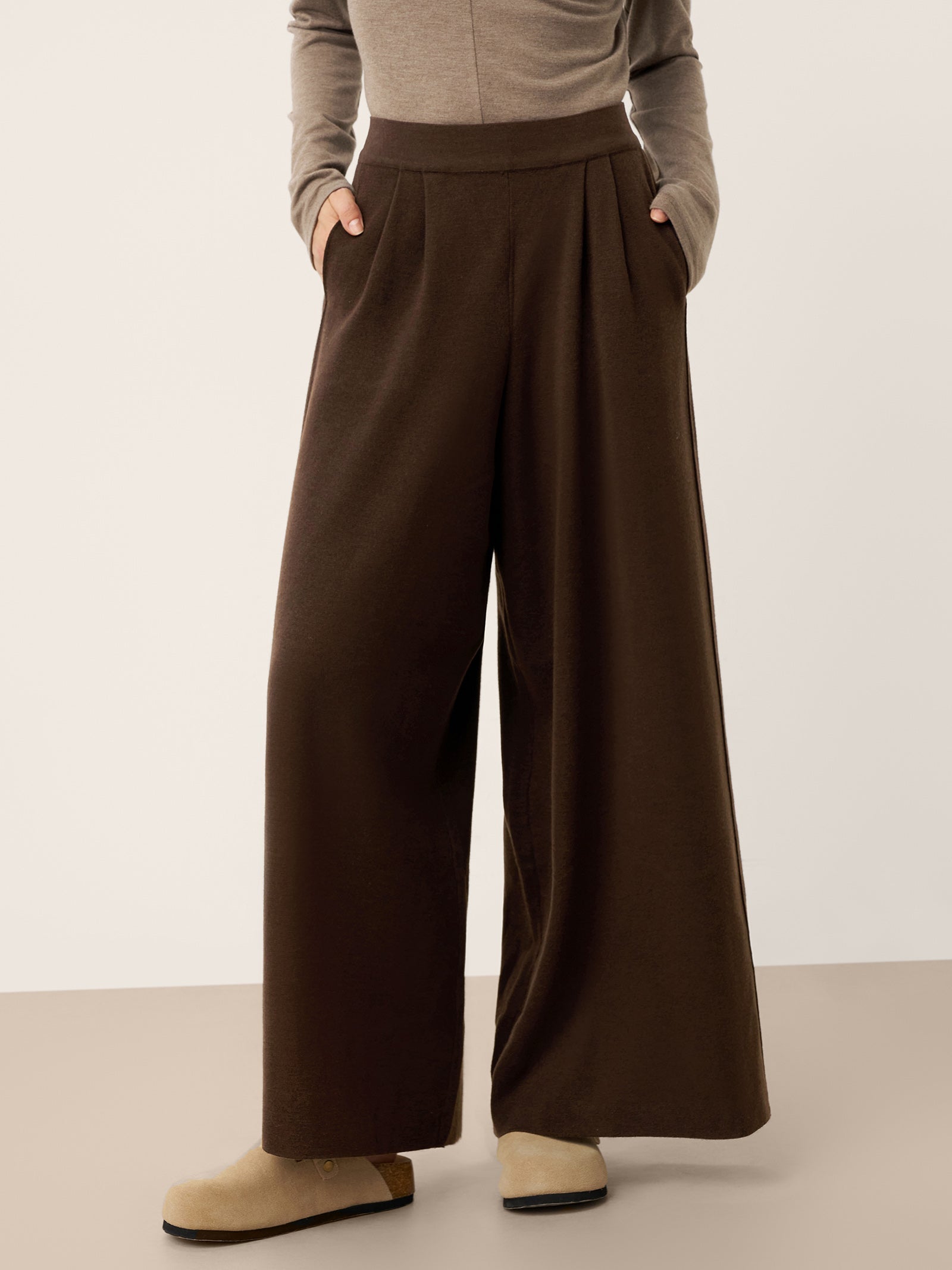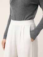 Pantalon Coupe Droite Décontractée à Taille Élastique en Laine Mérinos YVETTE