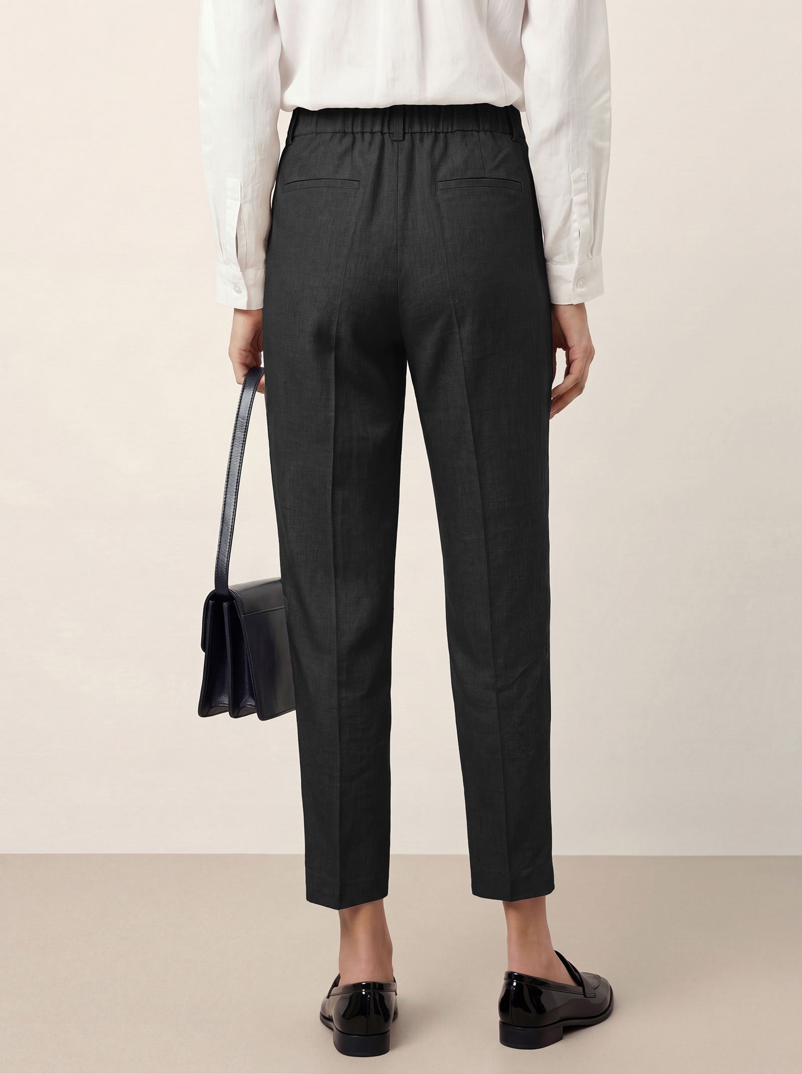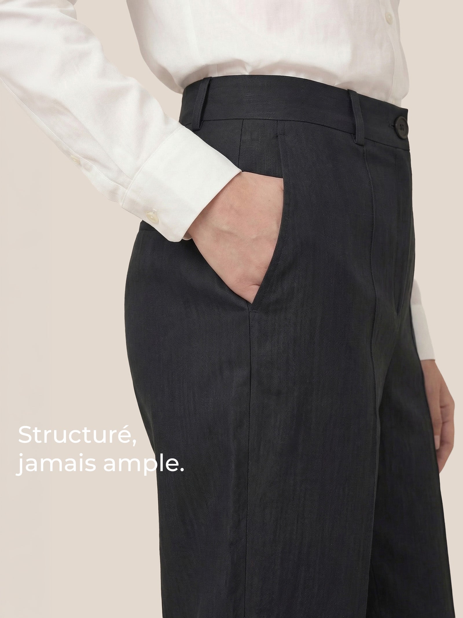 Conçu pour de longues heures assises et une grande liberté de mouvement — la taille reste souple et confortable, tandis que la silhouette demeure nette et élégante. Un pantalon qui vous accompagne du travail aux sorties du soir.