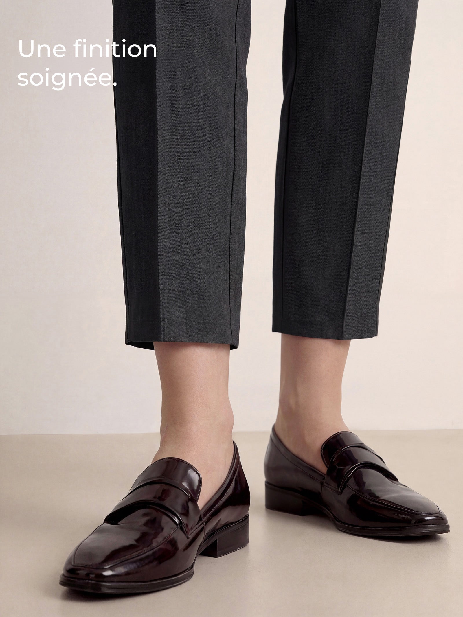 - Jambe droite, longueur crop : une ligne nette de la hanche à l'ourlet, qui effleure la cheville et convient bien aux petites silhouettes.