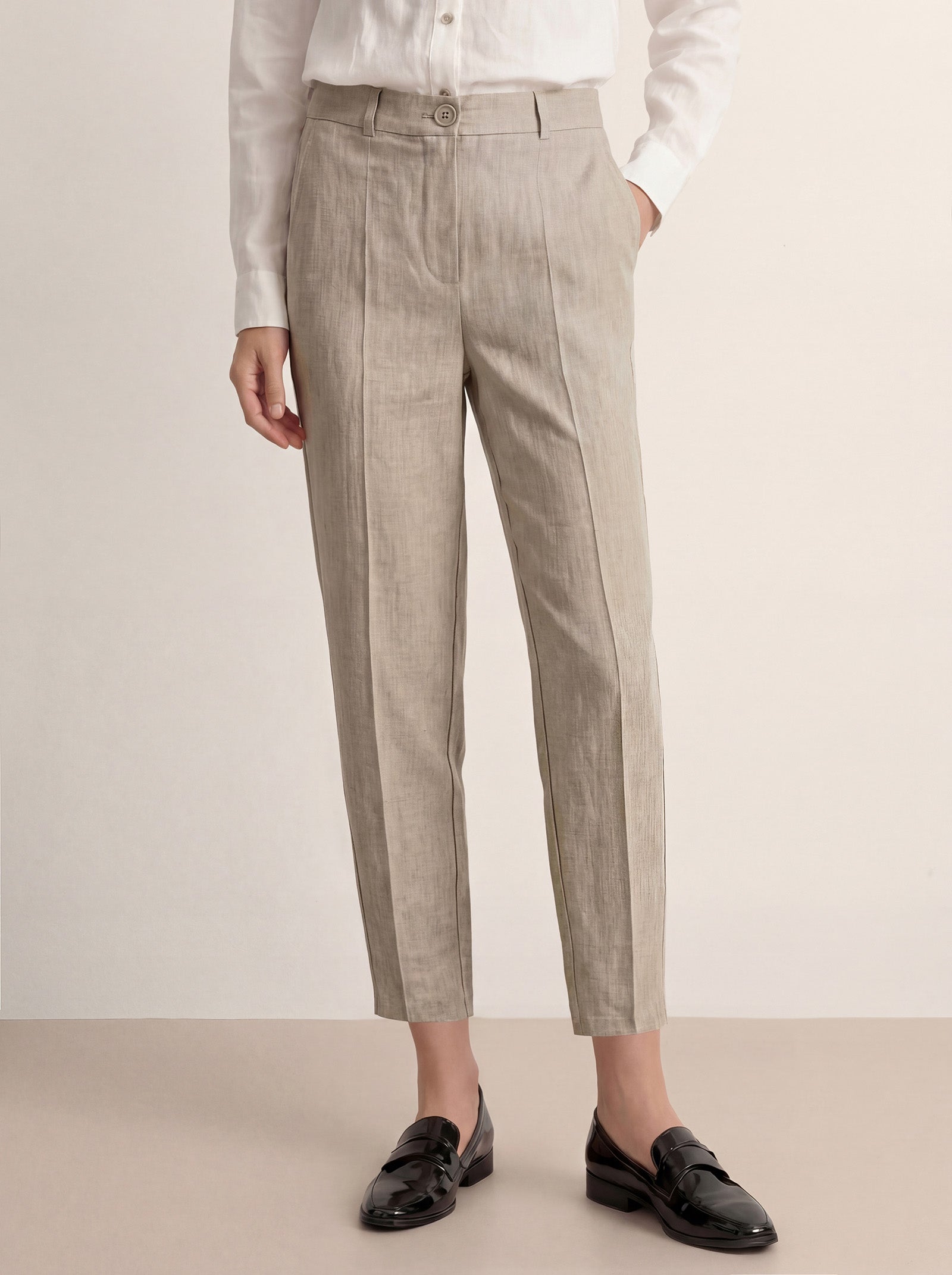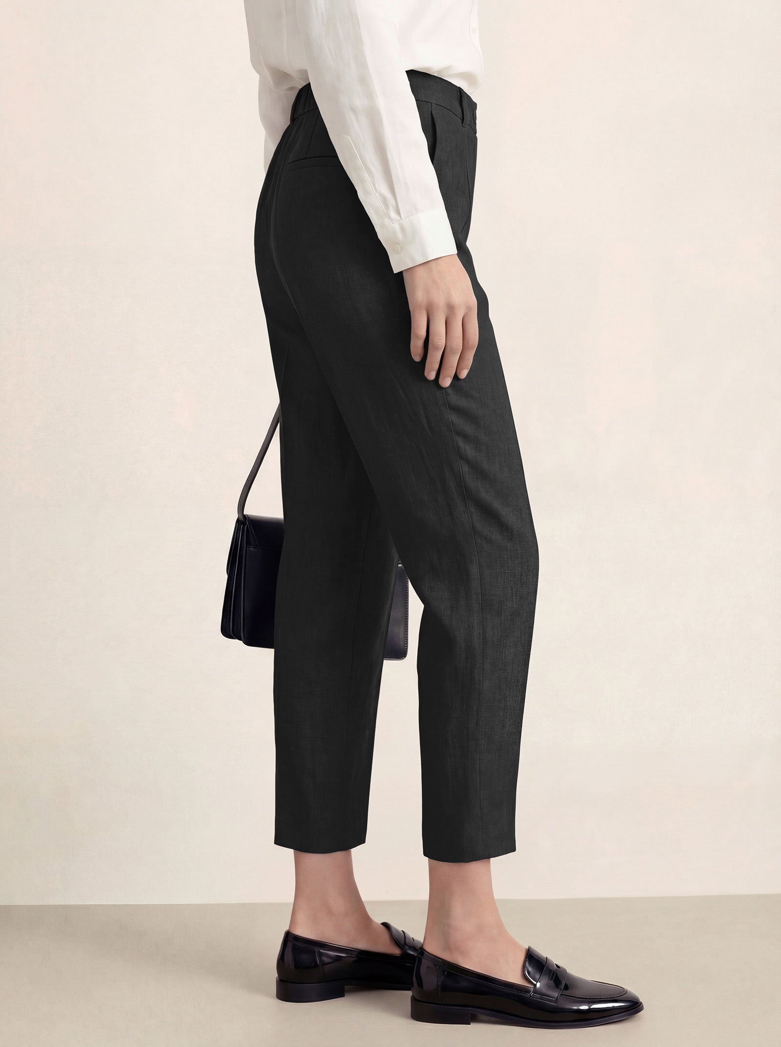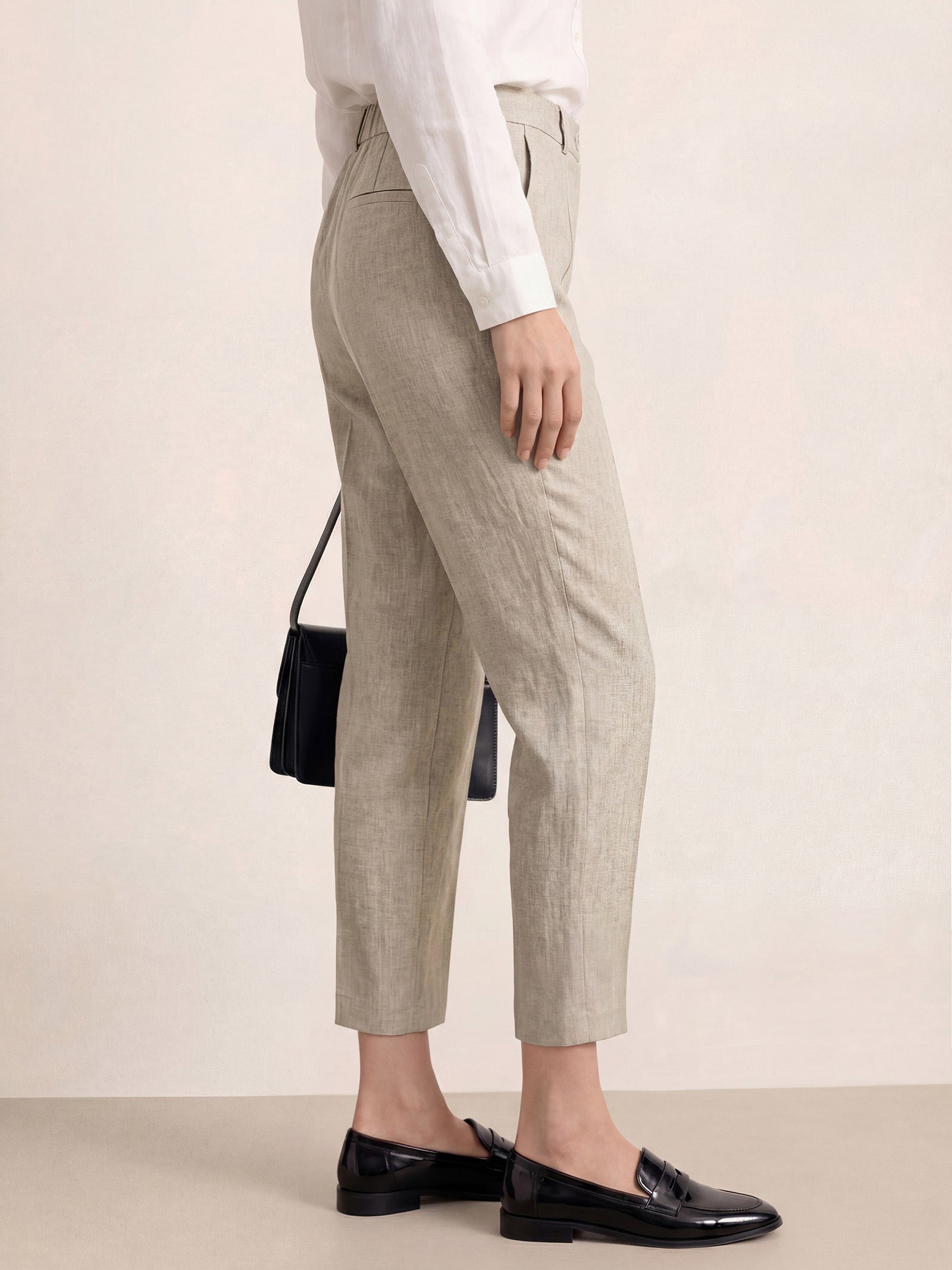 Pantalon droit crop en lin à enfiler à fausse braguette LOGAN