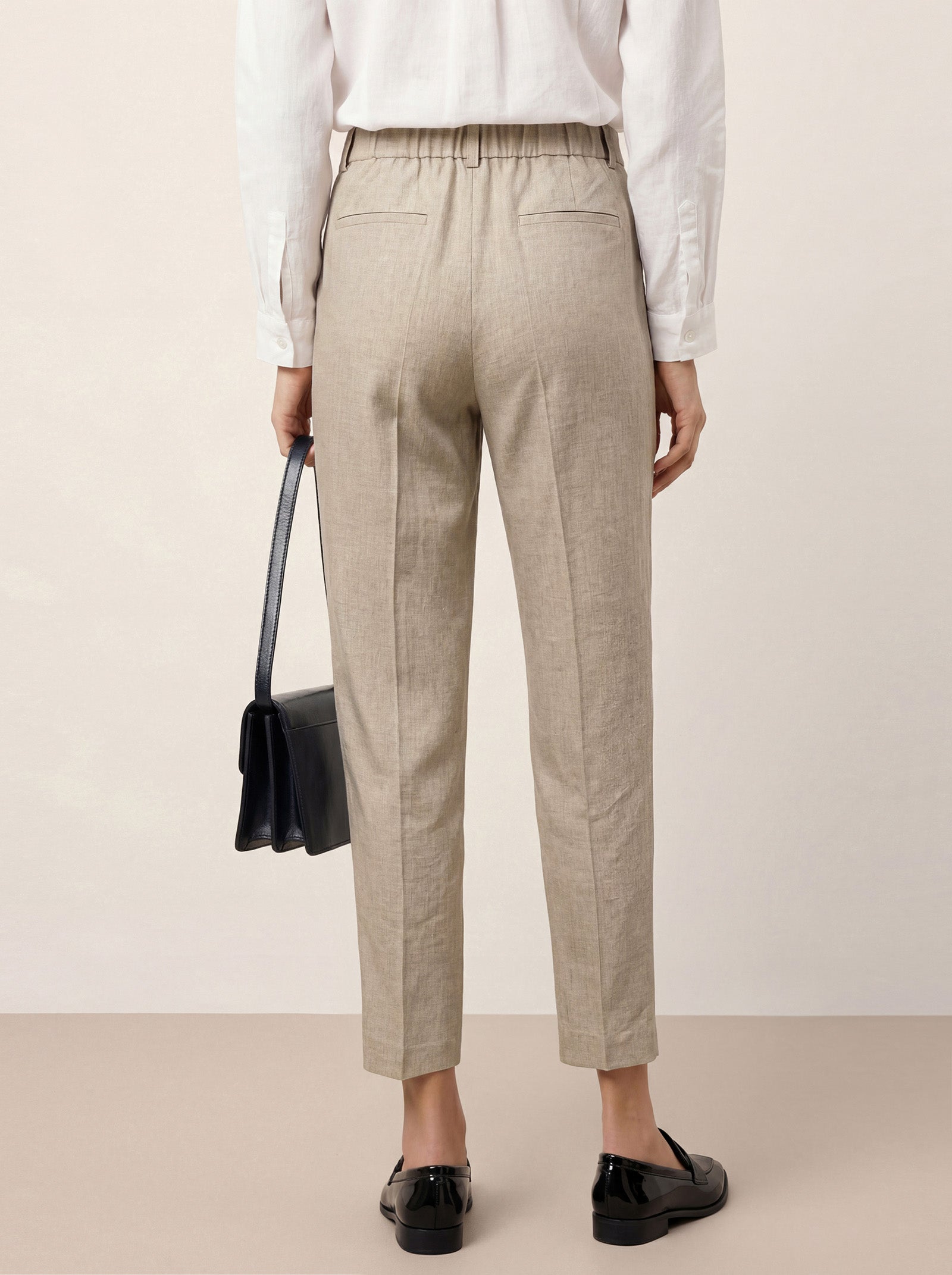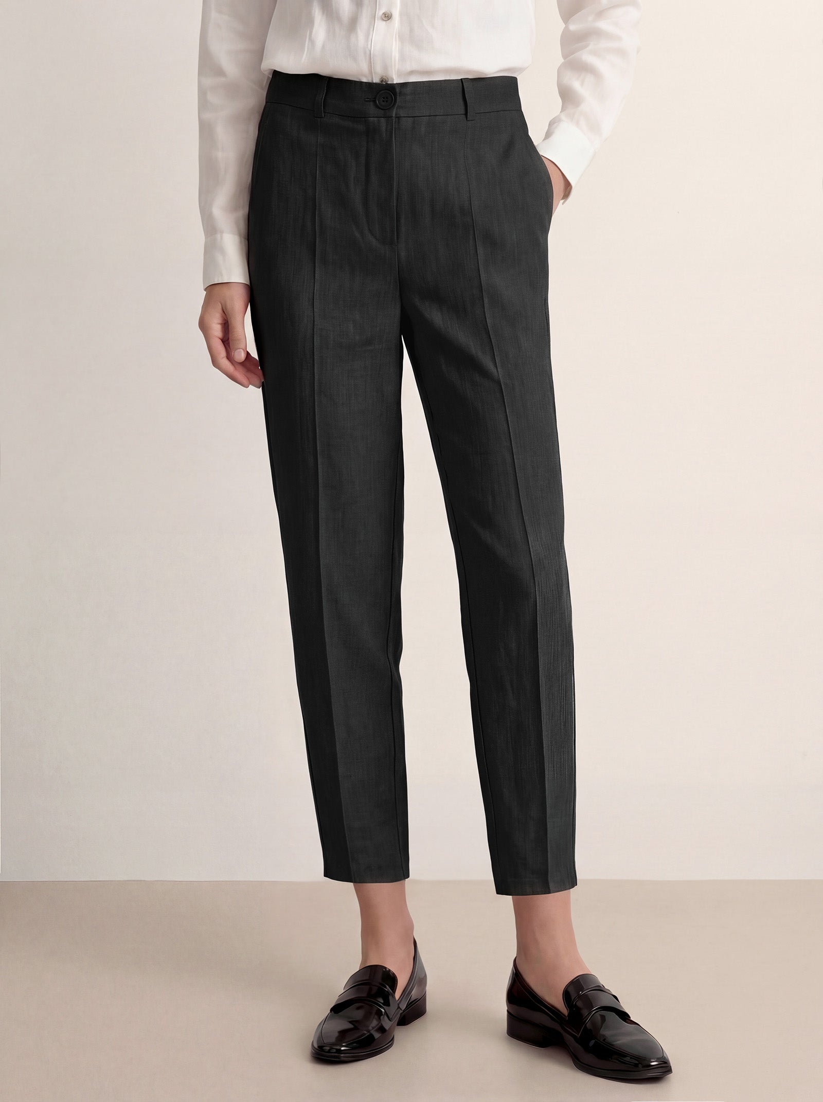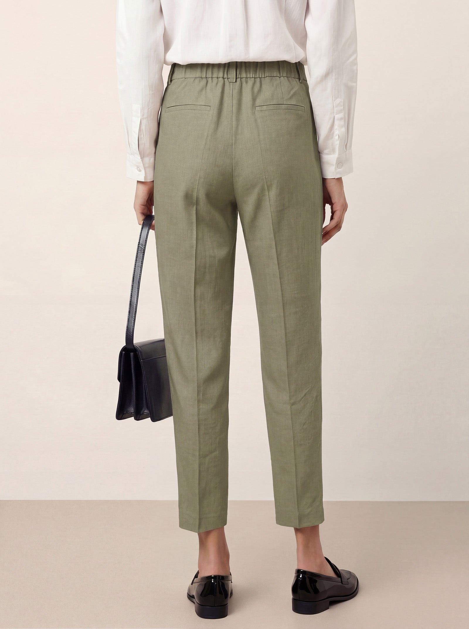 Pantalon droit crop en lin à enfiler à fausse braguette LOGAN