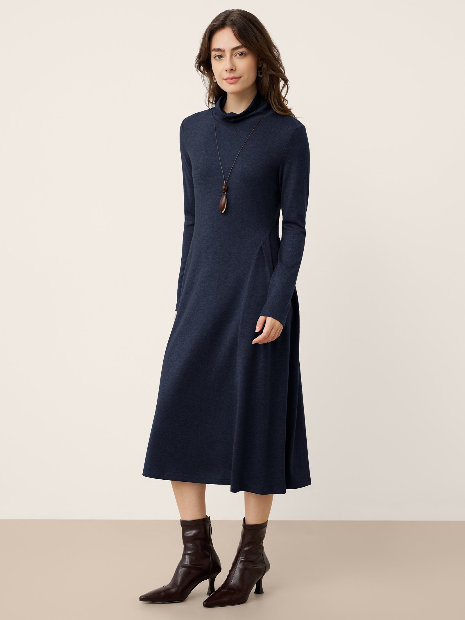 Robe longue à col roulé et plis sculptés en laine BRIAR