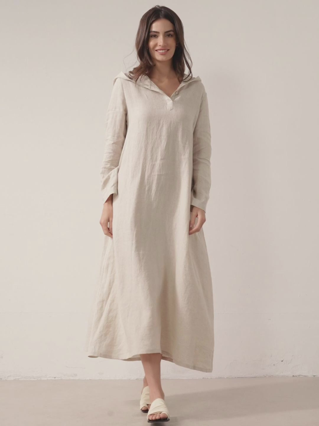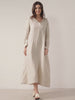 Les manches longues et la silhouette trapèze se combinent magnifiquement dans cette robe longue, présentant une coupe regular avec une couture d'épaule coupée.