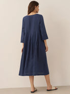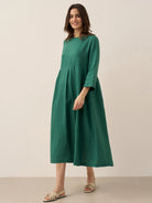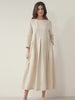 Robe longue plissée en lin à encolure bateau 100% ABIGAIL