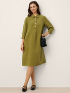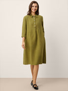 Robe chemise midi 100% lin à revers ajusté et manches 3/4 MERCEDES