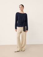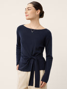 Haut à encolure bateau avec ceinture en laine mérinos NATALIA