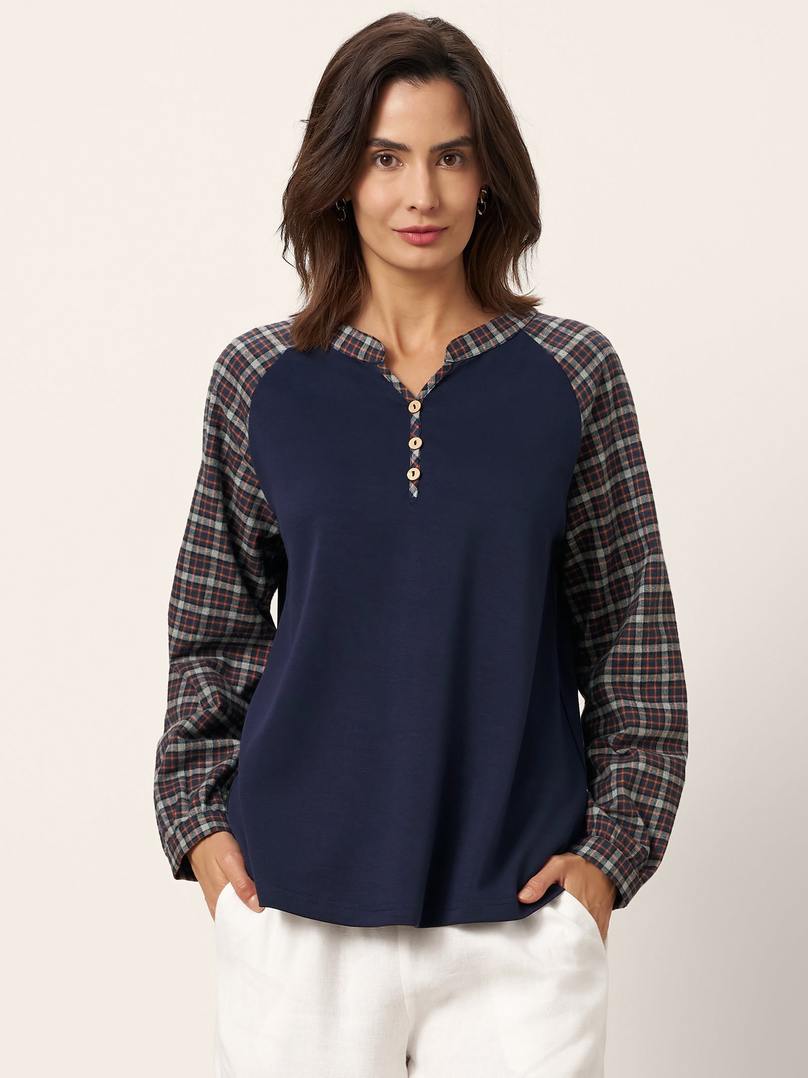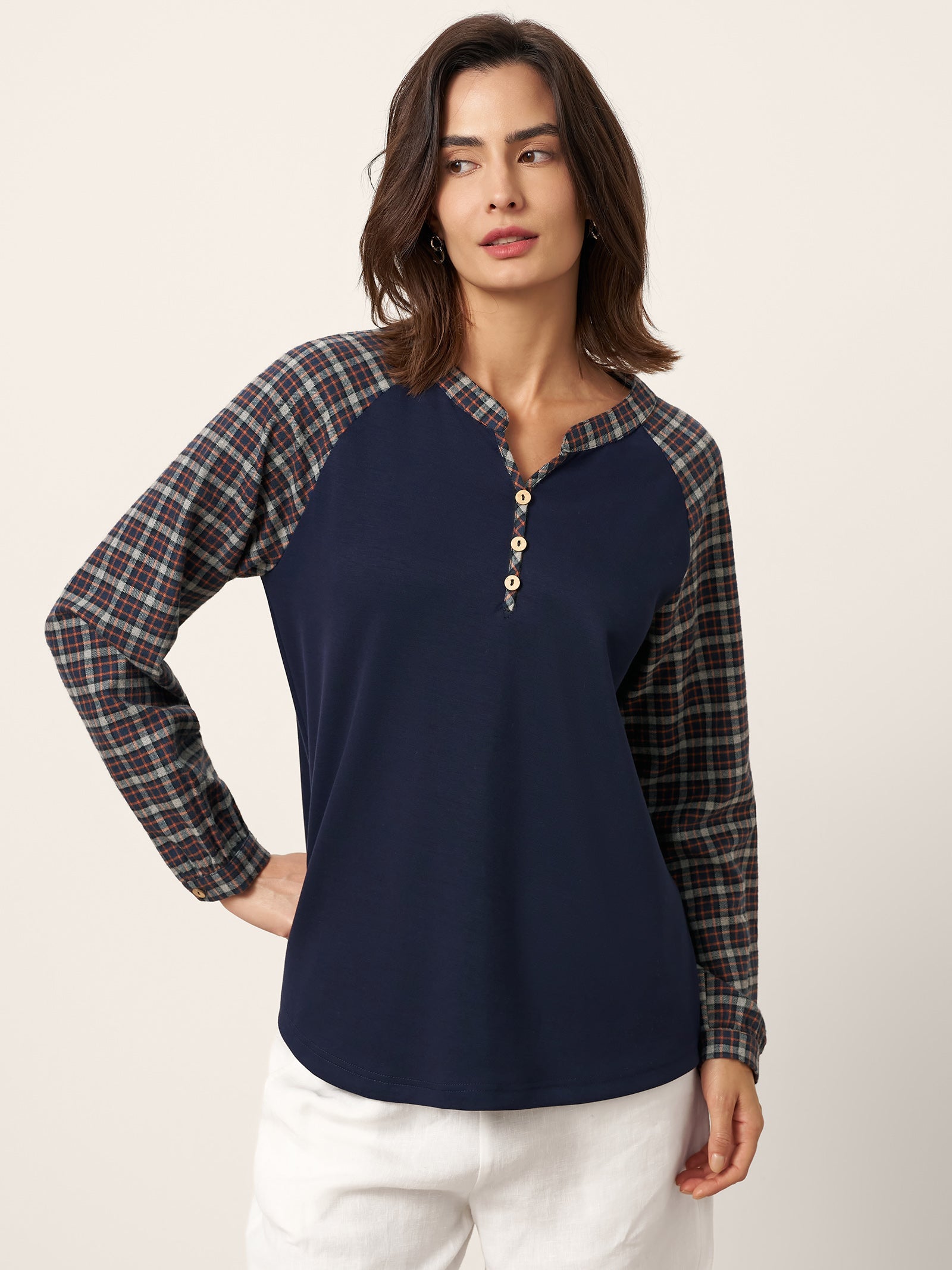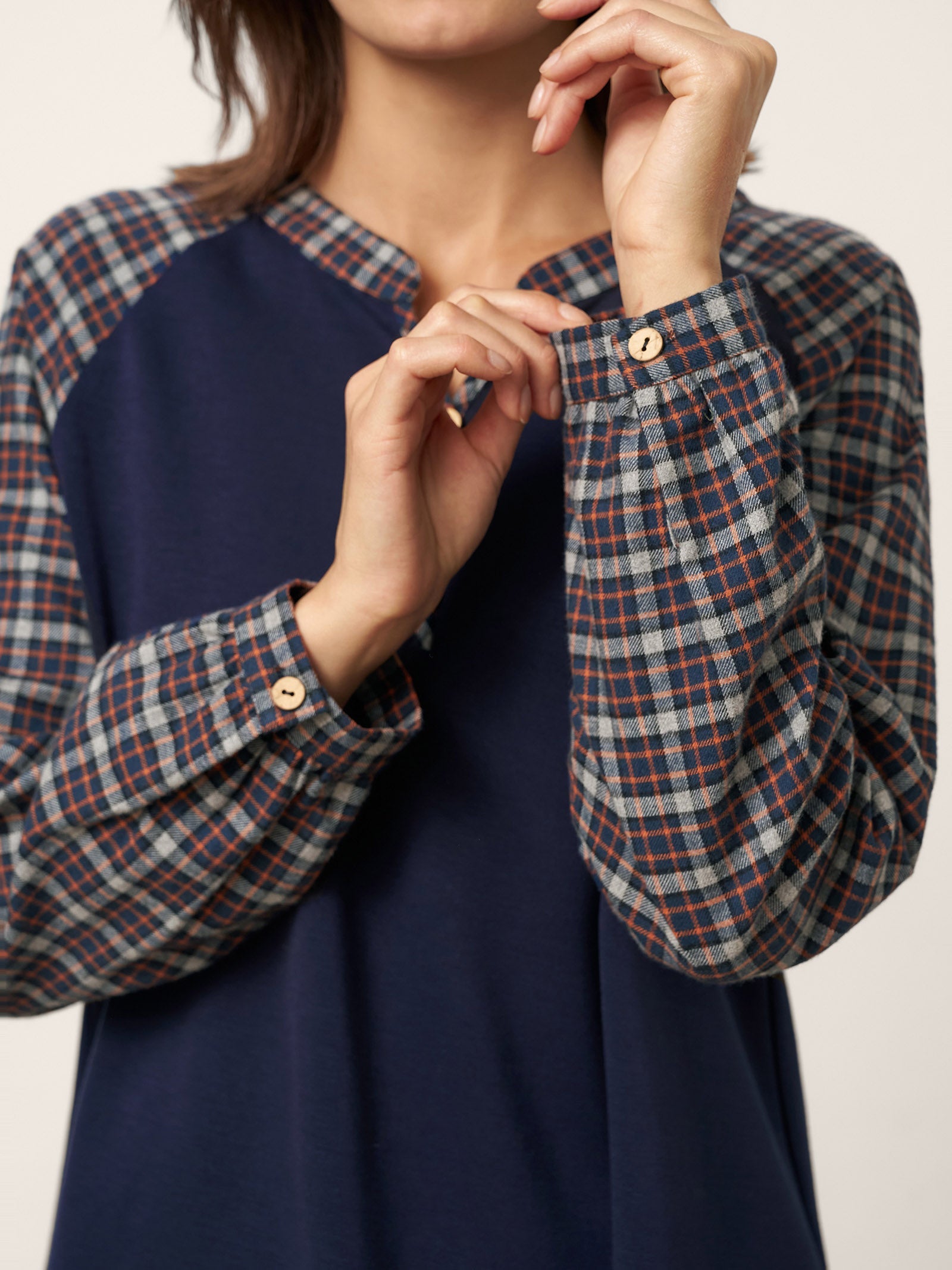 - Blocage de couleurs contrastées: Corps uni rencontre manches et col à carreaux pour une dimension accrocheuse