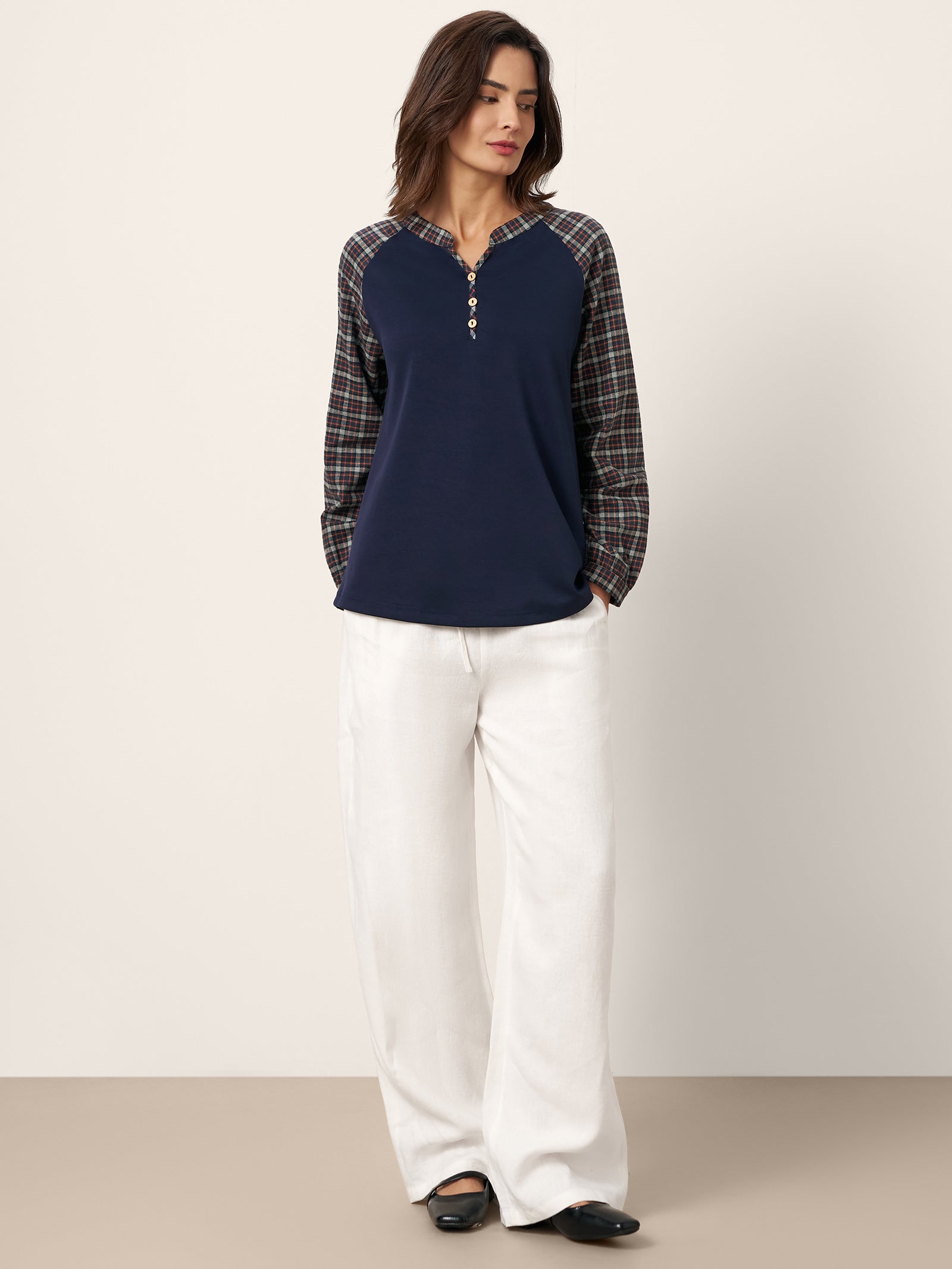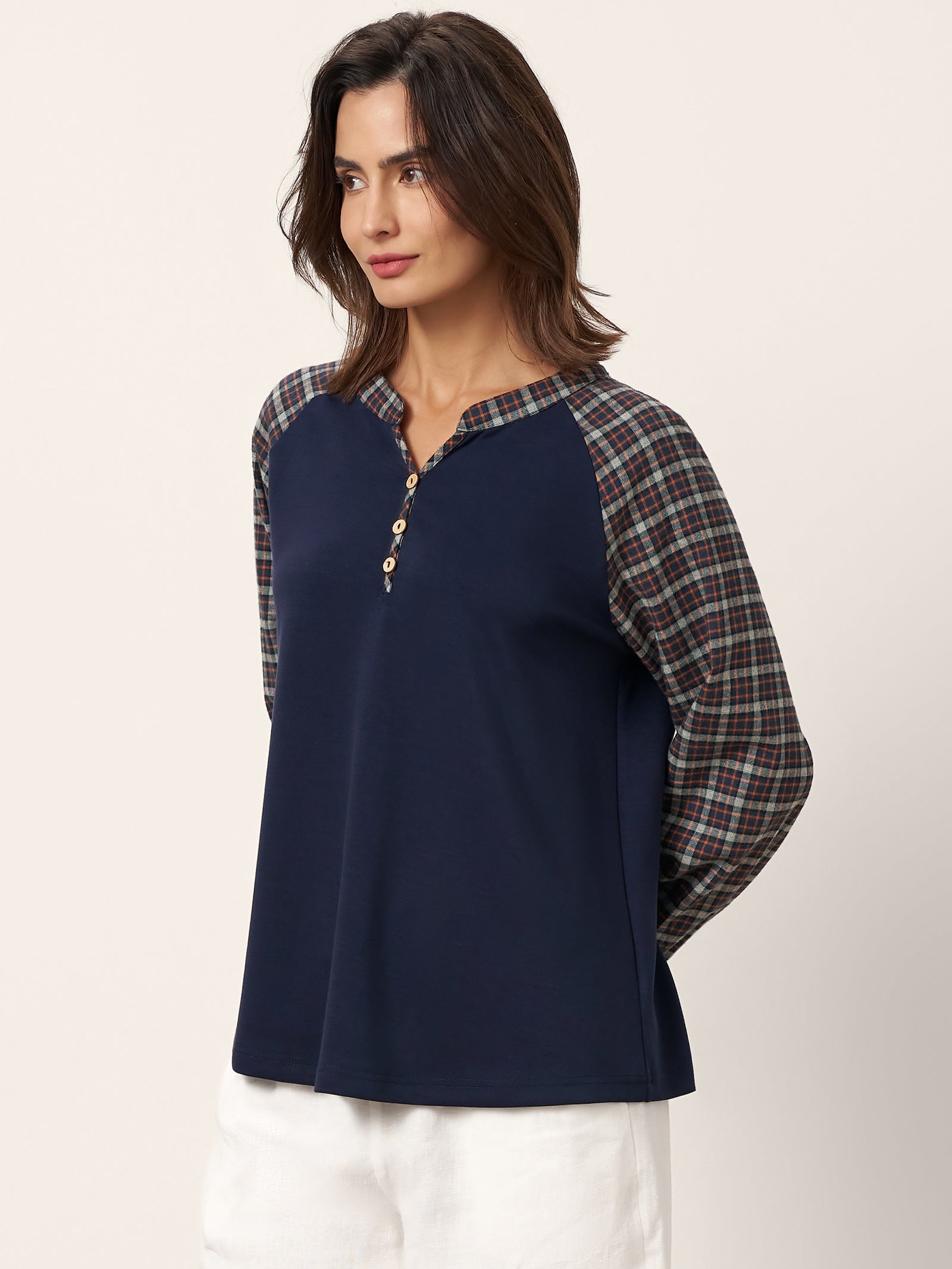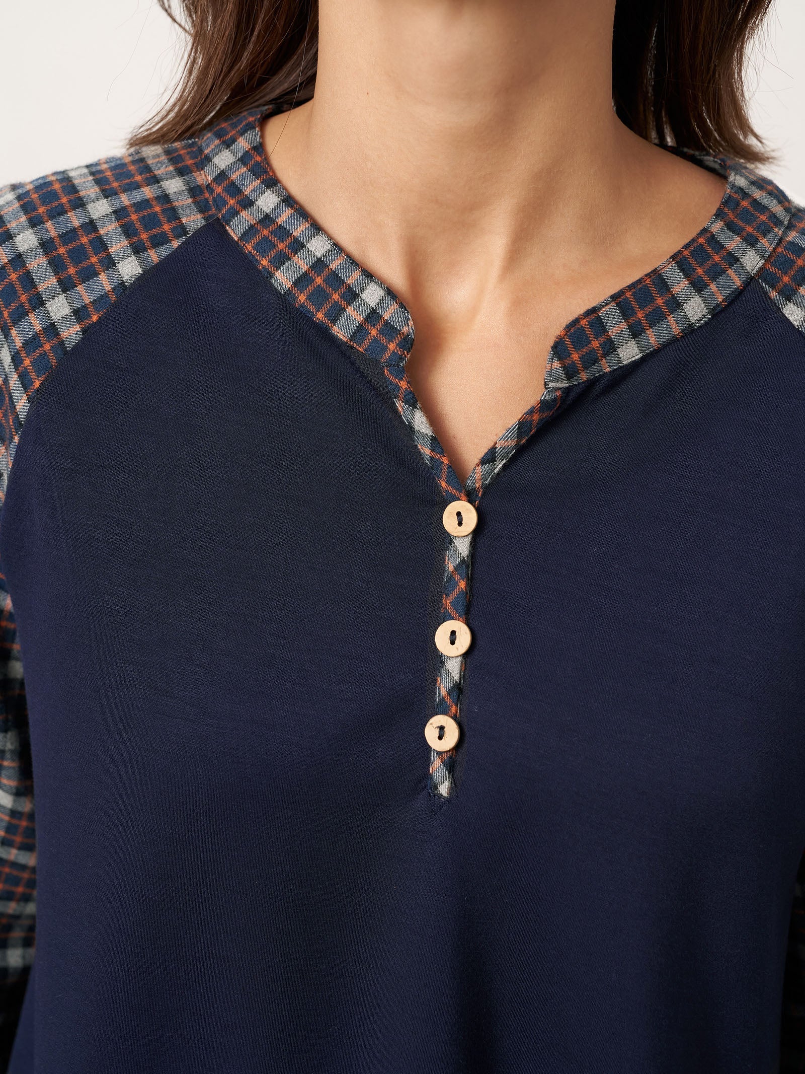 - Blocage de couleurs contrastées: Corps uni rencontre manches et col à carreaux pour une dimension accrocheuse