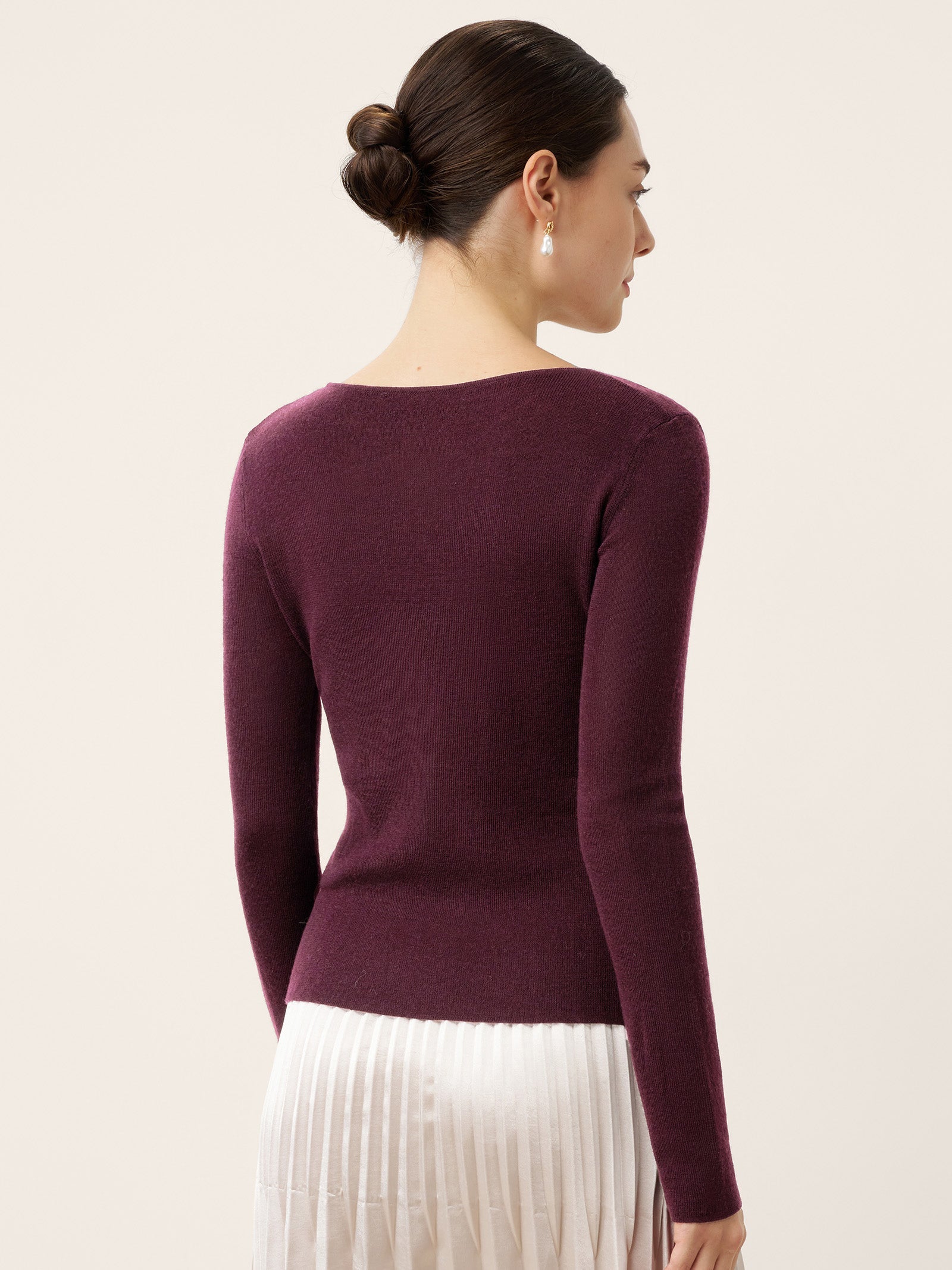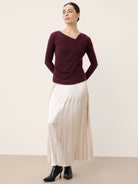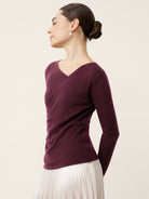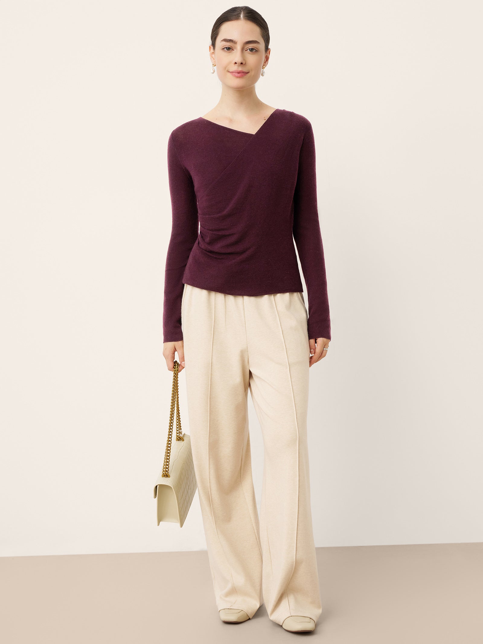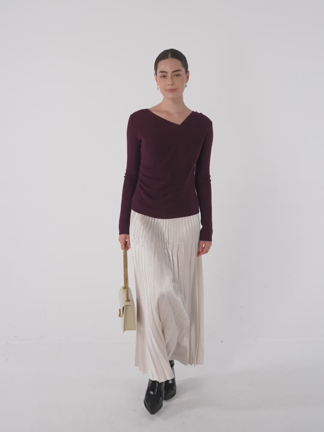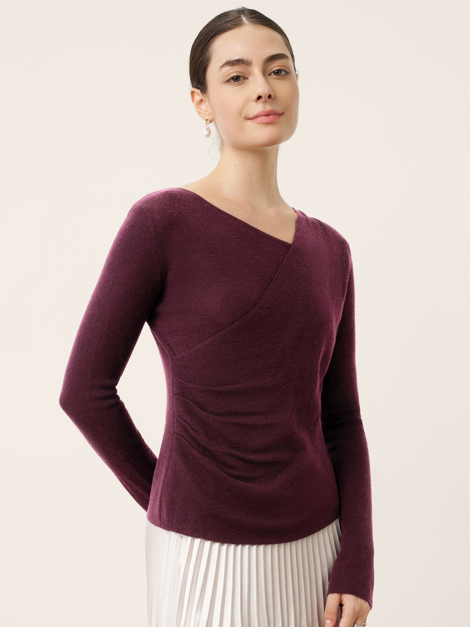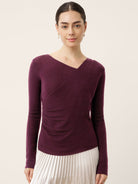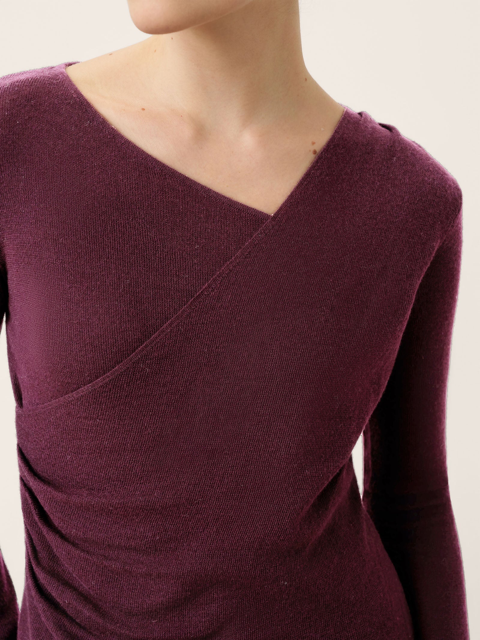 Haut croisé à col en V et fronces latérales en laine mérinos JOVANNA