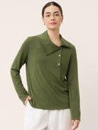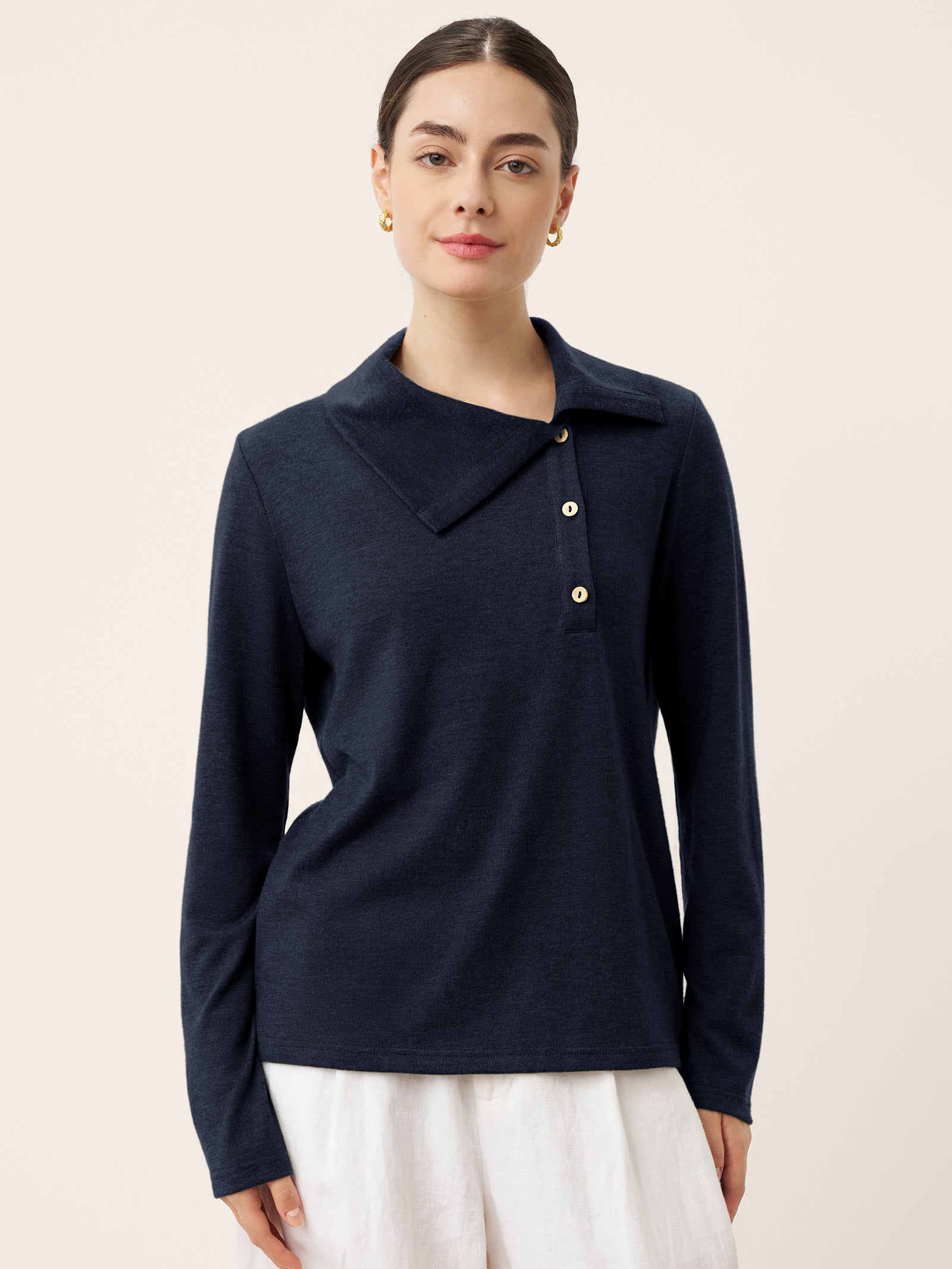 Haut en laine à revers asymétrique orné de boutons décoratifs en forme de fruit YSABEL