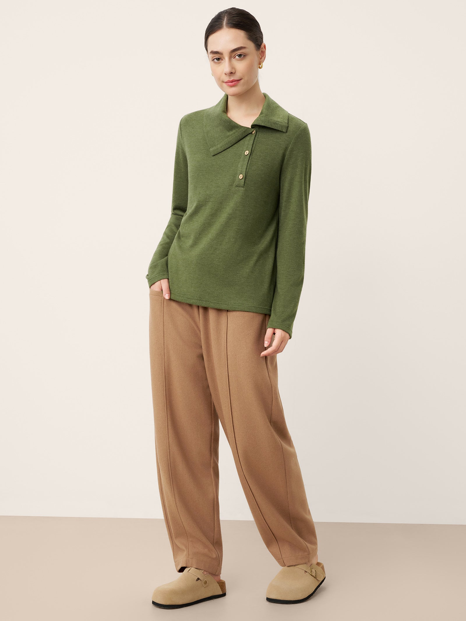 Un mélange soigneusement équilibré de fibres haut de gamme — cachemire, TENCEL™ et modal — crée un tissu aérien qui offre une sensation douce, lisse et parfaitement naturelle sur la peau.